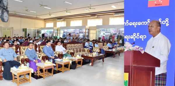 တိုင်းရင်းသားလူမျိုးများရေးရာဝန်ကြီးဌာန၊ တိုင်းရင်းသားအခွင့်အရေးများကာကွယ် စောင့်ရှောက်ရေးဦးစီးဌာနနှင့် သမဝါယမနှင့်ကျေးလက်ဖွံ့ဖြိုးရေးဝန်ကြီးဌာန၊ အသေးစားစက်မှု လက်မှုလုပ်ငန်းဦးစီးဌာနတို့ပူးပေါင်း၍ ကျင်းပပြုလုပ်သည့် “လူသုံးကုန်ပစ္စည်းများထုတ်လုပ်မှု နည်းပညာသင်တန်း” ဆင်းပွဲအခမ်းအနားကို မတ်လ ၂၁ ရက်နေ့ မွန်းလွဲပိုင်းတွင် တိုင်းရင်းသား လူမျိုးများရေးရာဝန်ကြီးဌာန၊ အစည်းအဝေးခန်းမ၌ကျင်းပရာ တိုင်းရင်းသားလူမျိုးများရေးရာ ဝန်ကြီးဌာန ပြည်ထောင်စုဝန်ကြီး Jeng Phang နော်တောင်၊ အမြဲတမ်းအတွင်းဝန်၊ ညွှန်ကြားရေးမှူးချုပ်များ၊ ဒုတိယညွှန်ကြားရေးမှူးချုပ်များ၊ အရာထမ်းများ၊ အမှုထမ်းများ၊ သင်တန်းကြီးကြပ်သူ၊ သင်တန်းနည်းပြဆရာမများနှင့် သင်တန်းသား၊ သင်တန်းသူများ တက်ရောက်ကြပါသည်။ ဦးစွာ ပြည်ထောင်စုဝန်ကြီးက အဖွင့်အမှာစကားပြောကြားရာတွင် ဤသင်တန်းကို တိုင်းရင်းသားလူမျိုးများရေးရာဝန်ကြီးဌာနရှိ ဝန်ထမ်းများနှင့် ဝန်ထမ်းမိသားစုများ လူသုံးကုန်ပစ္စည်းများ ထုတ်လုပ်သည့်နည်းပညာများကို သင်ယူတတ်မြောက်စေရန်၊ နည်းပညာများကို နားလည်တတ်မြောက်ပြီး ကိုယ်ပိုင် အသေးစား၊ အငယ်စား၊ အလတ်စား လုပ်ငန်းများကို ထူထောင်နိုင်ကာ မိသားစုစားဝတ်နေရေးအတွက် တစ်ဖက်တစ်လမ်းမှ ဝင်ငွေရရှိစေရန်နှင့် ဝန်ထမ်းမိသားစုများ အလုပ်အကိုင်အခွင့်အလမ်းများ ရရှိစေရန်ရည်ရွယ်၍ ဖွင့်လှစ်ပေးခဲ့ရာ ယနေ့တွင် သင်တန်းပြီးမြောက် အောင်မြင်သွားပြီဖြစ်ပါကြောင်း၊ သင်တန်းနည်းပြများက စေတနာအပြည့်အဝဖြင့် သင်ကြားပေးကြသလို သင်တန်းသား၊ သင်တန်းသူများကလည်း စိတ်ပါဝင်စားစွာ လေ့လာသင်ယူကြသည်ကို တွေ့ရှိရသဖြင့် လူသုံးကုန်ပစ္စည်းများ ထုတ်လုပ်သည့်နည်းပညာများကို အပြည့်အဝ သင်ယူတတ်မြောက်သွားကြပြီဟု ယုံကြည်ပါကြောင်း၊ ဆရာသမားဂုဏ်နှင့်အညီ သင်ကြားပေးကြပါသော သင်တန်းနည်းပြဆရာမများအား ကျေးဇူးတင်ရှိပါကြောင်းကို ပြောကြားလိုပါကြောင်း၊ ဤသင်တန်းမှ သင်ကြားပေးလိုက်သည့် အခြေခံနည်းပညာများကို လက်ကိုင်ထားပြီး မိမိဘာသာ ဆန်းသစ်တီထွင်ကာ ပစ္စည်းအရည်အသွေးကို အကောင်းဆုံးနှင့် နည်းစနစ်တကျထုပ်ပိုးပြီး ဈေးကွက်ထိုးဖောက်နိုင်မည်ဆိုပါက အရင်းအနှီး အနည်းဆုံးနှင့် အချိန်တိုတိုအတွင်း စီးပွားဖြစ်နိုင်မည့် အလုပ်အကိုင်အခွင့်အလမ်းတစ်ရပ်ကို သင်တန်းသား၊ သင်တန်းသူများအား ပေးအပ်ပြီးဖြစ်ပါကြောင်း၊ နိုင်ငံတော်အနေနှင့်လည်း ပြည်သူများ၏ လူမှု စီးပွားဘဝ ဖွံ့ဖြိုးတိုးတက်စေရန်အတွက် စီးပွားရေးဦးတည်ချက် (၄) ရပ်တွင် “သွင်းကုန် အစားထိုးရန်နှင့် ပို့ကုန်မြှင့်တင်နိုင်ရေး ဒေသထွက်ကုန်ကြမ်းများကို အခြေခံသည့် အသေးစား၊ အငယ်စ