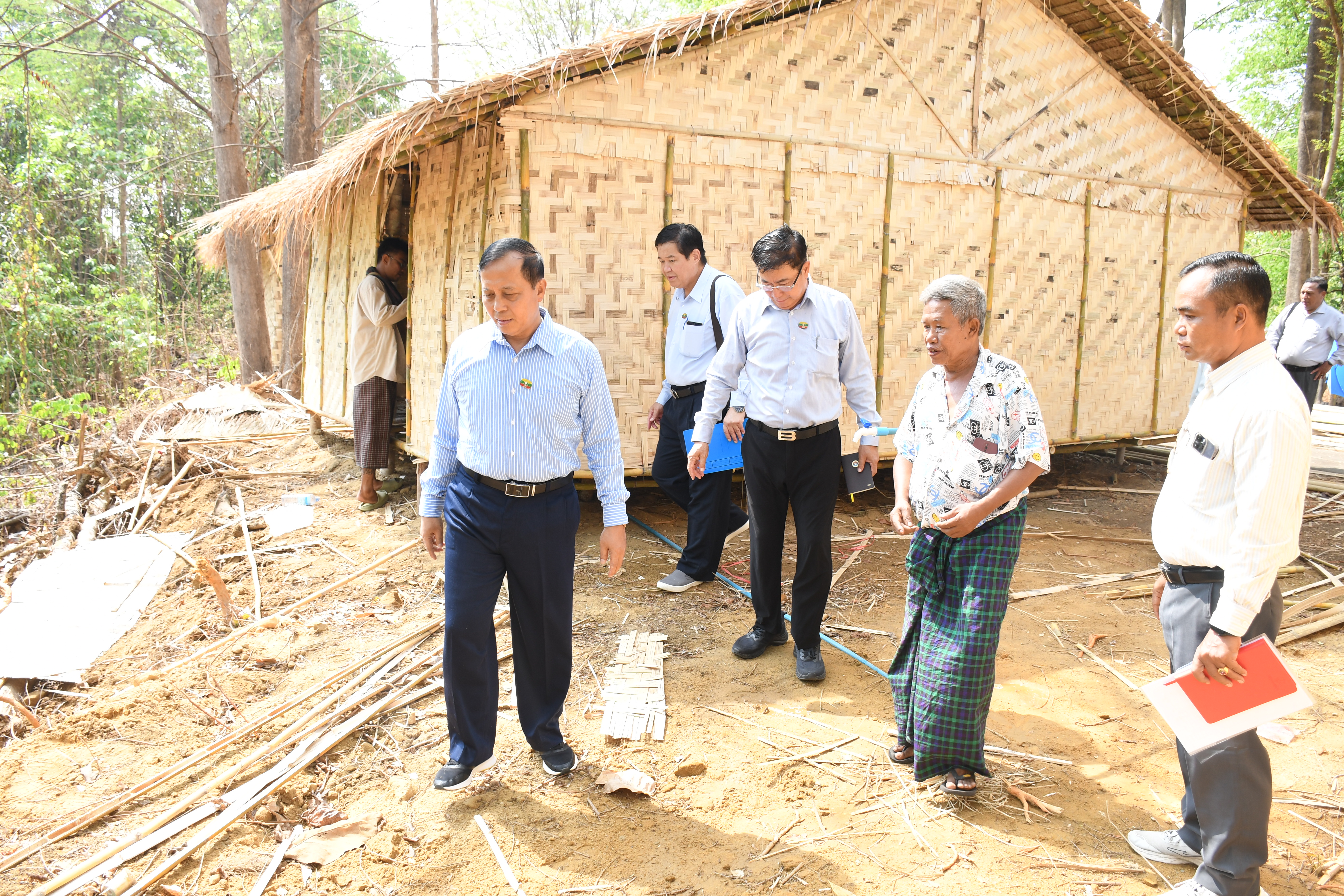 ဆက်လက်ဖတ်ရှုပါရန်တိုင်းရင်းသားလူမျိုးများရေးရာဝန်ကြီးဌာန၊ ပြည်ထောင်စုဝန်ကြီး ခွန်သန့်ဇော်ထူးနှင့် ဒုတိယဝန်ကြီး ဦးဇော်အေးမောင်တို့သည် အမြဲတမ်းအတွင်းဝန်၊ ညွှန်ကြားရေးမှူးချုပ်များ၊ ဒုတိယညွှန်ကြားရေးမှူးချုပ်များနှင့် တာဝန်ရှိသူများသည် ဧပြီလ (၉) ရက်နေ့ နံနက်ပိုင်းတွင် တိုင်းရင်းသားလူမျိုးများရေးရာဝန်ကြီးဌာန၊ ရုံးမြေဧရိယာအတွင်း၌ ငလျင်ဘေးကြောင့် ပြည်ထောင်စုဝန်ကြီးရုံးနှင့် ဦးစီးဌာနများမှ ဝန်ထမ်းများနှင့် ဝန်ထမ်းမိသားစုများအား နေထိုင်ရန်အတွက် ယာယီတဲများ စတင်ဆောက်လုပ်နေမှုများအား ကြည့်ရှုစစ်ဆေးခဲ့ပါသည်။ ပြည်ထောင်စုဝန်ကြီးနှင့် ဒုတိယဝန်ကြီးတို့သည် ယာယီတဲဆောက်လုပ်ရန်အတွက် မြေနေရာအား ပန္နက်ရိုက်သွင်းပေးခဲ့ပြီး ယာယီနေအိမ်ဆောက်လုပ်နေမှုအား ကြည့်ရှုစစ်ဆေးခဲ့ ပါသည်။ ယင်းနောက် ပြည်ထောင်စုဝန်ကြီး၊ ဒုတိယဝန်ကြီးနှင့် အဖွဲ့တို့သည် သုံးရေသွယ် တန်းခြင်း၊ ရေစင်ပြုပြင်ခြင်းဆောင်ရွက်နေမှုအား ကြည့်ရှုစစ်ဆေးခဲ့ပြီး ဝန်ထမ်းမိသားစုများ သန့်ရှင်းသည့်သုံးရေရရှိစေရေးဆောင်ရွက်ရန် တာဝန်ရှိသူများအား မှာကြားခဲ့ကြောင်း သိရှိရ ပါသည်။