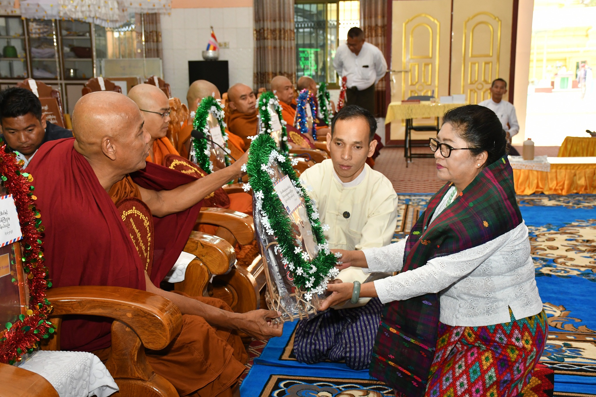 ဆက်လက်ဖတ်ရှုပါရန်နိုင်ငံတော်စီမံအုပ်ချုပ်ရေးကောင်စီအဖွဲ့ဝင် ဒေါ်ဒွဲဘူသည် တိုင်းရင်းသားလူမျိုးများရေးရာ ဝန်ကြီးဌာန၊ ပြည်ထောင်စုဝန်ကြီး Jeng Phang နော်တောင်၊ ပြည်နယ်ဝန်ကြီးချုပ်၊ ပြည်နယ် အစိုးရအဖွဲ့ဝင်များ၊ ဌာနဆိုင်ရာတာဝန်ရှိသူများနှင့်အတူ မတ် ၄ ရက် နံနက် ၈ နာရီခွဲက ကချင်ပြည်နယ်၊ မြစ်ကြီးနားမြို့ အောင် နန်းရပ်ကွက်ရှိကတ်သလစ်အသင်းတော်ရုံး၌ခရစ်ယာန်ဂိုဏ်းဂဏပေါင်းစုံမှဘာသာရေးခေါင်းဆောင်များ နှင့် တွေ့ဆုံခဲ့ပါသည်။ ထို့သို့ တွေ့ဆုံရာတွင် နိုင်ငံတော်စီမံအုပ်ချုပ်ရေးကောင်စီအဖွဲ့ဝင် ဒေါ်ဒွဲဘူ တိုင်းပြည် တည် ငြိမ်အေးချမ်းရေးနှင့် ပြည်နယ်ဖွံ့ဖြိုးတိုးတက်ရေးအတွက် ဘာသာရေးခေါင်းဆောင်များအားလုံးက ကောင်းချီးတောင်းခံ ဆုတောင်းဆက်ကပ်ပေးကြရန် လိုကြောင်း၊သို့မှသာတိုင်းပြည်အေးချမ်းသာယာ ဖွံ့ဖြိုး တိုးတက်လာမည်ဖြစ်ပါကြောင်း ပြောကြားပြီး ခရစ်ယာန်ဂိုဏ်းဂဏပေါင်းစုံမှ ဘာသာရေး ခေါင်းဆောင် များနှင့် အပြန်အလှန်မိတ်ဆက်ခဲ့ကြပါသည်။ ဆက်လက်၍ နိုင်ငံတော်စီမံအုပ်ချုပ်ရေးကောင်စီအဖွဲ့ဝင် ဒေါ်ဒွဲဘူ၊ ပြည်ထောင်စုဝန်ကြီးနှင့် ပြည်နယ်ဝန်ကြီးချုပ်တို့က ဘာသာရေးအသင်းအဖွဲ့အသီးသီးအတွက် လက်ဆောင်ခြင်းနှင့် အလှူငွေများကို ပေးအပ်လှူဒါန်းခဲ့ကြပါသည်။ ထို့နောက် မြစ်ကြီးနားမြို့ အံတော်ရှင် တောင်တန်းသာသနာပြုကျောင်းတိုက်၌ မြစ်ကြီးနားမြို့ နယ်သံဃနာယဥက္ကဋ္ဌဆရာတော်နှင့် ပင့်သံဃာ များအား ဖူးမျှော်ကြည်ညိုခဲ့ကြပြီး သာသနာရေး ဆိုင်ရာများ လျှောက်ထားတင်ပြကြကာ ဆရာတော်၊ သံဃာတော်များထံ ဆန်အိတ် (၅၀)အိတ်၊ ဆီ (၂၀)ပုံးနှင့် လှူဖွယ်ပစ္စည်းများ၊ ဝတ္ထုငွေများကို ဆက်ကပ် လှူဒါန်းခဲ့ကြပြီး အံတော်ရှင်ဘုရားအား လက်ယာရစ်ပတ် ဖူးမျှော်ကြည်ညိုခဲ့ကြပါသည်။ ထိုမှတစ်ဆင့် နိုင်ငံတော်စီမံအုပ်ချုပ်ရေးကောင်စီအဖွဲ့ဝင် ဒေါ်ဒွဲဘူ၊ ပြည်ထောင်စုဝန်ကြီး၊ ပြည်နယ်ဝန်ကြီးချုပ်တို့သည် မြစ်ကြီးနားမြို့၊ စီတာပူရပ်ကွက်ရှိ မနောကွင်းအတွင်း မနောအိမ်တော် ၌ ပြည်နယ်အတွင်းရှိ တိုင်းရင်းသား စာပေနှင့် ယဉ်ကျေးမှုအသင်းအဖွဲ့ (၁၄)ခုတို့မှ တာဝန်ရှိသူများ နှင့်တွေ့ဆုံခဲ့ပါသည်။ တွေ့ဆုံရာတွင် နိုင်ငံ တော်စီမံအုပ်ချုပ်ရေးကောင်စီအဖွဲ့ဝင်က နိုင်ငံတော်စီမံအုပ်ချုပ်ရေး ကောင်စီအနေဖြင့် မိမိတို့တိုင်းပြည် တည်ငြိမ်အေးချမ်းရေးနှင့် ဖွံ့ဖြိုးတိုးတက်ရေးအတွက် တိုင်းရင်းသားများအရေးကို အလေးထား ဆောင် ရွက် လျက်ရှိပါကြောင်း၊ ထိုသို့အလေးထားဆောင်ရွက် လျက်ရှိရာတွင် တိုင်းရင်းသားများအားလုံးကလည်း ပူးပေါင်းဆောင်ရွက်ကြရန် လိုအပ်ပါကြောင်း၊ ယနေ့ တိုင်းရင်းသားများအနေဖြင့် မိမိတို့ စာပေနှင့် ရိုးရာယဉ်ကျေးမှု စ