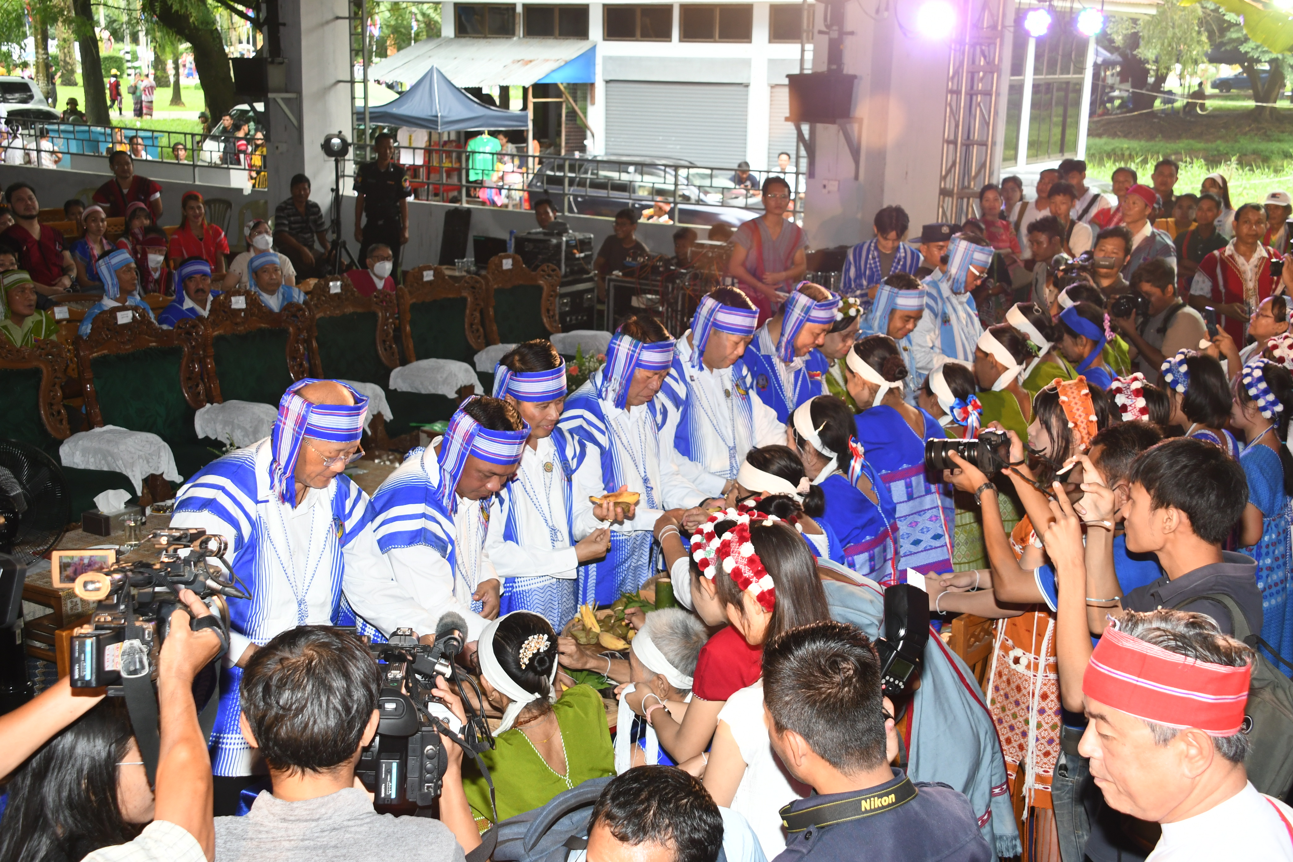 ဆက်လက်ဖတ်ရှုပါရန် တိုင်းဒေသကြီးအဆင့် ကရင်ရိုးရာဝါခေါင်လ ချည်ဖြူဖွဲ့မင်္ဂလာအခမ်းအနားကို ၂၀၂၃ ခုနှစ်၊ ဩဂုတ်လ (၂၆) ရက်နေ့ နံနက်ပိုင်းတွင် ရန်ကုန်တိုင်းဒေသကြီး၊ ပြည်ထောင်စု တိုင်းရင်းသားကျေးရွာ (ရန်ကုန်)ရှိ ပြည်ထောင်စုခန်းမအတွင်း၌ ကျင်းပပြုလုပ်ရာ နိုင်ငံတော်စီမံအုပ်ချုပ်ရေးကောင်စီ ဗဟိုအကြံပေးအဖွဲ့ခေါင်းဆောင် ဦးစောထွန်းအောင်မြင့်၊ တိုင်းရင်းသားလူမျိုးများရေးရာဝန်ကြီးဌာန၊ ပြည်ထောင်စုဝန်ကြီး Jeng Phang နော်တောင်၊ နိုင်ငံတော်စီမံအုပ်ချုပ်ရေးကောင်စီ ဗဟိုအကြံပေးအဖွဲ့ဝင် ဦးစောဒယ်နီရယ်၊ ရန်ကုန်တိုင်း စစ်ဌာနချုပ် တိုင်းမှူး ဗိုလ်ချုပ် ဇော်ဟိန်း၊ ရန်ကုန်တိုင်းဒေသကြီး အစိုးရအဖွဲ့ဝင် ဝန်ကြီးများ၊ ဒေသခံဌာနေ ကရင်တိုင်းရင်းသားများ၊ အခြားတိုင်းရင်းသားညီအစ်ကိုမောင်နှမများ၊ သံဃာတော် ဆရာတော်များနှင့် အထူးဖိတ်ကြားထားသောဧည့်သည်တော်များ တက်ရောက် ကြပါသည်။ ပထမဦးစွာ အခမ်းအနားကို နိုင်ငံတော်စီမံအုပ်ချုပ်ရေးကောင်စီ ဗဟိုအကြံပေး အဖွဲ့ခေါင်းဆောင် ဦးစောထွန်းအောင်မြင့်၊ တိုင်းရင်းသားလူမျိုးများရေးရာဝန်ကြီးဌာန၊ ပြည်ထောင်စုဝန်ကြီး Jeng Phang နော်တောင်၊ နိုင်ငံတော်စီမံအုပ်ချုပ်ရေးကောင်စီ ဗဟိုအကြံပေးအဖွဲ့ဝင် ဦးစောဒယ်နီရယ်၊ ရန်ကုန်တိုင်း စစ်ဌာနချုပ် တိုင်းမှူး ဗိုလ်ချုပ်ဇော်ဟိန်း၊ ရန်ကုန်တိုင်းဒေသကြီး အစိုးရအဖွဲ့ဝင် လုံခြုံရေးနှင့်နယ်စပ်ရေးရာဝန်ကြီး ဗိုလ်မှူးကြီး ဝင်းတင့်နှင့် တိုင်းရင်းသားရေးရာဝန်ကြီး ဦးစောဂျက်ကော့ထူးတို့က ဖားစည် (၉) ချက်တီးပြီး ကရင်လူငယ် (၉) ဦးတို့က ကျွဲချိုမှုတ်၍ အခမ်းအနားကို ဖွင့်လှစ်ခဲ့ပါသည်။ ဆက်လက်ပြီး ပထမဦးစွာ နိုင်ငံတော်စီမံအုပ်ချုပ်ရေးကောင်စီ ဗဟိုအကြံပေး အဖွဲ့ခေါင်းဆောင် ဦးစောထွန်းအောင်မြင့်က နှုတ်ခွန်းဆက်စကားပြောကြားပြီးနောက် ပြည်ထောင်စုဝန်ကြီး Jeng Phang နော်တောင်က နှုတ်ခွန်းဆက်စကားပြောကြားရာတွင် မြန်မာသက္ကရာဇ် ဝါခေါင်လဆန်း (၁) ရက်နေ့မှစတင်ပြီး ဝါခေါင်လပြည့်နေ့အထိ ကျင်းပလေ့ ရှိကြသည့် ကရင်ရိုးရာဝါခေါင်လချည်ဖြူဖွဲ့မင်္ဂလာအခမ်းအနားသည် ကရင်တိုင်းရင်းသား ဘိုးဘွားမိဘများ၏ အစဉ်အလာမပျက် လက်ဆင့်ကမ်းခဲ့ကြသည့် မင်္ဂလာတရားများနှင့် ပြည့်စုံသည့် ရိုးရာအမွေအနှစ်တစ်ခုပင်ဖြစ်ပါကြောင်း၊ မိသားစုများအားလုံး စည်းစည်း လုံးလုံးဖြင့် ပြန်လည်တွေ့ဆုံပြီး လက်ရည်တပြင်တည်းဖြစ်ခြင်း၊ နွေးနွေးထွေးထွေးဖြင့် ချစ်ကြည်ရင်းနှီးစည်းလုံးမှုများတိုးပွားစေခြင်းနှင့် ရိုးရာယဉ်ကျေးမှုထုံးတမ်းအစဉ်အလာ များကို ထိန်းသိမ်းဖော်ထုတ်ခြင်းတို့ဖြင့် ထူးမြတ်သည့်မင်္ဂလာအခမ်းအနားဖြစ်ပါကြောင်း၊ “ချည်ဖြူဖွဲ့မင်္ဂလာကျင်းပခြင်းဖြင့်” မ