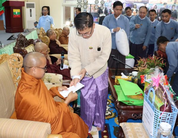 တိုင်းရင်းသားလူမျိုးများရေးရာဝန်ကြီးဌာန မိသားစုများ၏ နဝမအကြိမ်မြောက် ဝါဆို သင်္ကန်းဆက်ကပ်လှူဒါန်းပွဲ အခမ်းအနားကို ယနေ့နံနက်ပိုင်းတွင် တိုင်းရင်းသားလူမျိုးများ ရေးရာဝန်ကြီးဌာန၌ ကျင်းပပြုလုပ်ရာ ဒုတိယဝန်ကြီး ဦးဇော်အေးမောင်၊ ညွှန်ကြားရေးမှူးချုပ်၊ ဒုတိယညွှန်ကြားရေးမှူးချုပ်နှင့် အရာထမ်း၊ အမှုထမ်းများ တက်ရောက်ကြည်ညိုကြပါ သည်။ အခမ်းအနားကို နမောတဿ(၃)ကြိမ်ရွတ်ဆို၍ ဖွင့်လှစ်ခဲ့ပြီး ဆရာဒကာကျောင်း ဖြစ်သည့် ဥတ္တရသီရိမြို့နယ်၊ မသိမ်ကျေးရွာ၊ မသိမ်ကျောင်းသစ်ကျောင်း ဆရာတော် ဦးသောဘဏထံမှ ဒုတိယဝန်ကြီးနှင့် ဧည့်ပရိတ်သတ်များက ငါးပါးသီလခံယူ ဆောက်တည်ကြပြီး ဆရာတော်များမှ ပရိတ်တရားတော်များ ရွတ်ပွားသရဇ္စျာယ် ချီးမြှင့် တော်မူကြပါသည်။ ဆက်လက်၍ ဒုတိယဝန်ကြီးနှင့် တာဝန်ရှိသူများက ဆရာတော်၊ သံဃာတော်များထံ ဝါဆိုသင်္ကန်းနှင့် လှူဖွယ်ပစ္စည်းများကို ဆက်ကပ်လှူဒါန်းကြပါသည်။ ထို့နောက် ဆရာတော်ထံမှ အနုမောဒနာတရားများ နာယူကြပြီး လှူဒါန်းမှုအစုစု တို့အတွက် ရေစက်သွန်းချ အမျှပေးဝေ၍ သာဓုအနုမောဒနာခေါ်ဆိုကာ အခမ်းအနားကို ရုပ်သိမ်းပါသည်။ အခမ်းအနားအပြီးတွင် ဒုတိယဝန်ကြီးနှင့် တာဝန်ရှိသူများက ဆရာတော်၊ သံဃာတော် (၅)ပါးအား နေ့ဆွမ်းဆက်ကပ် လှူဒါန်းပြီးနောက် ဒုတိယဝန်ကြီး၊ တာဝန်ရှိသူများနှင့် အရာထမ်း၊ အမှုထမ်းများအားလုံး နေ့လယ်စာကို လက်ရည်တပြင်တည်း အတူတကွ သုံးဆောင်ခဲ့ကြကြောင်း သတင်းရရှိပါသည်။