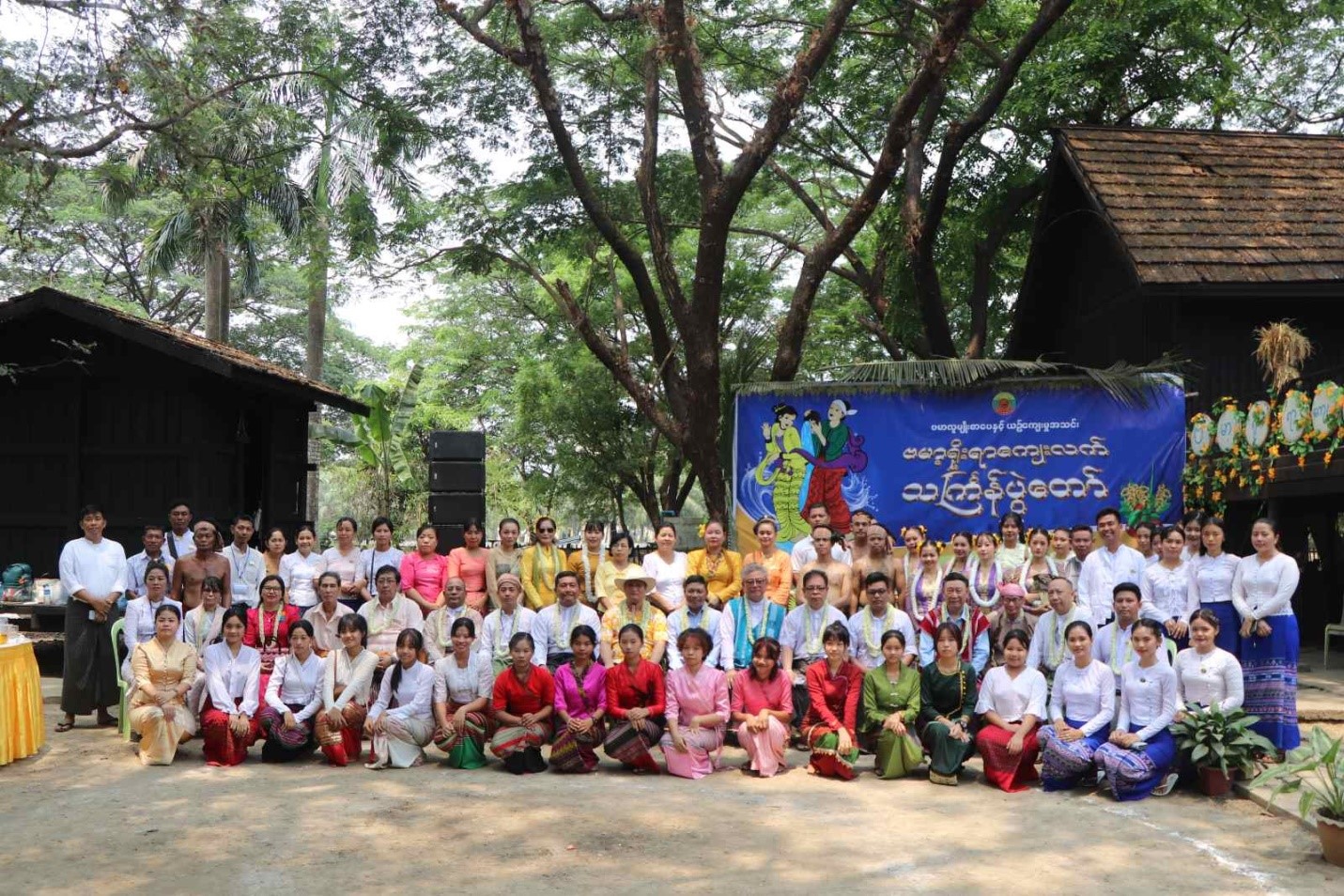 ဆက်လက်ဖတ်ရှုပါရန်ရန်ကုန်တိုင်းဒေသကြီး၊ တိုင်းရင်းသားစာပေနှင့်ယဉ်ကျေးမှုဦးစီးဌာန၊ ညွှန်ကြားရေးမှူးရုံးနှင့် ဗမာလူမျိုးတိုင်းရင်းသားစာပေနှင့်ယဉ်ကျေးမှုအသင်းတို့ပူးပေါင်း၍ မြန်မာသက္ကရာဇ် ၁၃၈၅-၁၃၈၆ မြန်မာ့ရိုးရာအတာသင်္ကြန်ပွဲတော်အား ကြိုဆိုဂုဏ်ပြုသောအားဖြင့် ဗမာ့ရိုးရာကျေးလက်သင်္ကြန်ပွဲတော်အခမ်းအနားကို ပြည်ထောင်စုတိုင်းရင်းသားကျေးရွာ ဗမာတိုင်းရင်းသားရိုးရာနေအိမ်၌ ကျင်းပပြုလုပ်ခဲ့ပါသည်။ အဆိုပါအခမ်းအနားသို့ ရန်ကုန်တိုင်းဒေသကြီးအစိုးရအဖွဲ့ တိုင်းရင်းသားရေးရာဝန်ကြီး ဦးစောဂျက်ကော့ထူး၊ တိုင်းရင်းသားလူမျိုးများရေးရာဝန်ကြီးဌာနကွပ်ကဲမှုအောက်ရှိ အရာထမ်း၊ အမှုထမ်းများ၊ အမျိုးသားယဉ်ကျေးမှုနှင့်အနုပညာတက္ကသိုလ်မှ တာဝန်ရှိသူများ၊ ဗမာလူမျိုးတိုင်းရင်းသားစာပေနှင့်ယဉ်ကျေးမှုအသင်းမှ တာဝန်ရှိသူများ၊ တိုင်းရင်းသား စာပေနှင့်ယဉ်ကျေးမှု အသင်းအဖွဲ့များမှ ကိုယ်စားလှယ်များနှင့် ဖိတ်ကြားထားသည့် ဧည့်သည်တော်များ တက်ရောက်ခဲ့ကြပါသည်။ ရှေးဦးစွာ အခမ်းအနားကို မြူမှောင်ဝေကင်းသီချင်းဖြင့် စတင်ဖွင့်လှစ်ခဲ့ပါသည်။ ထို့နောက် ရန်ကုန်တိုင်းဒေသကြီးအစိုးရအဖွဲ့ တိုင်းရင်းသားရေးရာဝန်ကြီး ဦးစောဂျက်ကော့ထူးက နှစ်သစ်ကူး အကြိုနှုတ်ခွန်းဆက်စကားပြောကြားခဲ့ပါသည်။ ထို့နောက် အမျိုးသားယဉ်ကျေးမှုနှင့်အနုပညာ တက္ကသိုလ် ယဉ်ကျေးမှုအဖွဲ့မှ အတာင်္ကြန် တေးသီချင်းများဖြင့် ဖေျာ်ဖြေခဲ့ပြီး၊ ဗမာသိုင်း အကျော်အမော်များမှ ဗန်တို၊ ဗန်ရှည် သိုင်းပညာ၊ ဝါးရင်းတုတ်သိုင်းပညာ၊ ဓားသိုင်းပညာရပ်များအား သရုပ်ပြတင်ဆက်ခဲ့ပြီး ရိုးရာခြင်းလုံးပညာရှင်များမှ ဗမာ့ရိုးရာခြင်းလုံးအားကစားနည်းအား အလှပြတင်ဆက်ခဲ့ကြပါသည်။ ထို့နောက် တိုင်းရင်းသားရေးရာဝန်ကြီးက ဗမာလူမျိုးစာပေနှင့် ယဉ်ကျေးမှုအသင်းနှင့် ကပြဖျော်ဖြေသရုပ်ပြခဲ့ကြသည့် ယဉ်ကျေးမှုအဖွဲ့များအား ချီးမြှင့်ထောက်ပံ့ ငွေများပေးအပ်ခဲ့ပါသည်။ ထို့နောက်တိုင်းရင်းသားရေးရာဝန်ကြီး ဦးဆောင်သော တိုင်းရင်းသား မိသားစုများက မန်းတောင်ရိပ်ခို တေးသီချင်းအား စုပေါင်းသီဆို၍ အခမ်းအနားအား ရုပ်သိမ်းခဲ့ပါသည်။