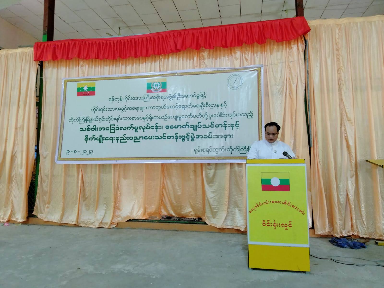 တိုင်းရင်းသားအခွင့်အရေးများကာကွယ်စောင့်ရှောက်ရေးဦးစီးဌာန၊ ရှမ်းပြည်နယ်ညွှန်ကြားရေးမှူး ရုံးမှဦးစီး၍ “တိုင်းရင်းသားအခွင့်အရေးဆိုင်ရာအသိပညာပေးဟောပြောခြင်းနှင့် ရပ်ရွာအခြေပြုအသက် မွေးဝမ်းကျောင်းပညာလိုအပ်ချက်တို့ကိုဆန်းစစ်စီမံခြင်း” အစီအစဉ်ကို ၁၉-၈-၂၀၂၃ ရက်နေ့တွင် ရှမ်းပြည်နယ်(တောင်ပိုင်း)၊ တောင်ကြီးခရိုင်၊ ရပ်စောက်မြို့နယ်၊ ယမ်းတွင်းငါးကြောင်ကျေးရွာအုပ်စု၊ ဆီဆုံ ကျေးရွာဘုန်းကြီးကျောင်းဓမ္မာရုံ၌ ကျင်းပပြုလုပ်ခဲ့ပါသည်။ အခမ်းအနားတွင် ရှမ်းပြည်နယ်အစိုးရအဖွဲ့ဝင်၊ တိုင်းရင်းသားရေးရာဝန်ကြီး ဦးအောင်ကြည်ဝင်းက အဖွင့်အမှာစကားပြောကြားခဲ့ပြီး တိုင်းရင်းသားအခွင့်အရေးများကာကွယ်စောင့်ရှောက်ရေးဦးစီးဌာန၊ ရှမ်းပြည်နယ်ညွှန်ကြားရေးမှူးရုံးမှ ဒုတိယညွှန်ကြားရေးမှူး ဦးချစ်ဇော်လင်းက တိုင်းရင်းသားလူမျိုးများ၏ အခွင့်အရေးကာကွယ်စောင့်ရှောက်သည့် ဥပဒေ၊ နည်းဥပဒေများပါ အချက်အလက်များနှင့် တိုင်းရင်းသား အခွင့်အရေးဆိုင်ရာမဟာဗျူဟာတို့ကိုလည်းကောင်း၊ ရပ်စောက်မြို့နယ်အထွေထွေအုပ်ချုပ်ရေးဦးစီးဌာနမှ မြို့နယ်အုပ်ချုပ်ရေးမှူးက အထွေထွေအုပ်ချုပ်ရေးဦးစီးဌာန၏ လုပ်ငန်းဆောင်ရွက်နေမှုများကိုလည်း ကောင်း၊ တိုင်းရင်းသားစာပေနှင့်ယဉ်ကျေးမှုဦးစီးဌာနမှ ဦးစီးအရာရှိ ဦးစိုင်းဖုန်းကျော်က တိုင်းရင်းသားဘာ သာသင်ဆရာ/ ဆရာမ Teaching Assistant (TA)နှင့် Language Teacher (LT) များခန့်အပ်ထားမှု ကိစ္စများ၊ တိုင်းရင်းသားစာပေနှင့်ယဉ်ကျေးမှုဦးစီးဌာန၏ လုပ်ငန်းဆောင်ရွက်နေမှုများအကြောင်းကိုလည်း ကောင်း၊ အမှတ်(၂၅) မူးယစ်ဆေးဝါးတားဆီးနှိမ်နင်းရေးရဲတပ်ဖွဲ့မှ ဒုရဲအုပ် အောင်သန်းဆွေက မူးယစ်ဆေးဝါးနှင့်စိတ်ကိုပြောင်းလဲစေတတ်သောဆေးဝါးများဆိုင်ရာ အန္တရာယ်တို့ကိုလည်းကောင်း၊ ညောင်ရွှေမြို့နယ် လူမှုဝန်ထမ်းဦးစီးဌာနမှ ဦးစီးအရာရှိ ဒေါ်ခင်မာလာဝင်းက အမျိုးသမီးအခွင့်အရေး၊ မသန်စွမ်းအခွင့်အရေး၊ ကလေးသူငယ်အခွင့်အရေး၊ အဆိုးရွားဆုံးပုံစံဖြင့်ခိုင်းစေခံရသော ကလေးအလုပ်သမားများ ဖယ်ရှားရေး ကိစ္စရပ်များနှင့် လူမှုရေးပင်စင်တို့နှင့်စပ်လျဉ်းသည့် ကိစ္စရပ်များအကြောင်းကိုလည်းကောင်း၊ လူကုန်ကူးမှု တားဆီးနှိမ်နင်းရေးရဲတပ်ဖွဲ့တပ်ခွဲစု (၁၅) တောင်ကြီးမှ ရဲအုပ်သန်းဇော်ထွဋ်က လူကုန်ကူးမှုတားဆီးနှိမ်နင်း ရေးဆိုင်ရာကိစ္စရပ်များအကြောင်းကိုလည်းကောင်း အသီးသီးအသိပညာပေး ရှင်းလင်းပြောကြားခဲ့ကြပါ သည်။ ထို့နောက် တိုင်းရင်းသားအခွင့်အရေးများ ကာကွယ်စောင့်ရှောက်ရေးဦးစီးဌာန၊ ရှမ်းပြည်နယ်ညွှန်ကြားရေးမှူးရုံးမှ ဝန်ထမ်းများက ရပ်ရွာအခြေပြုအသက်မွေး ဝမ်းကျောင်းပညာ လိုအပ်ချက်တို့ကို စစ်တမ်းကောက်ယူခဲ့ရာ တက်ရ