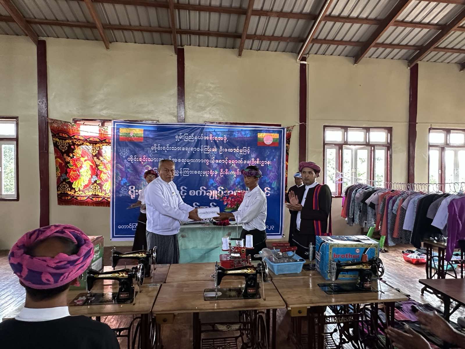 ဆက်လက်ဖတ်ရှုပါရန်တိုင်းရင်းသား အခွင့်အရေးများကာကွယ်စောင့်ရှောက်ရေးဦးစီးဌာနက ကြီးမှူးဖွင့်လှစ် သော “ရိုးရာဝတ်စုံနှင့် စက်ချုပ်အတတ်သင်သင်တန်း” သင်တန်းဆင်းပွဲအခမ်းအနားကို (၁၆-၈-၂၀၂၃) ရက်နေ့နံနက် (၁၀:၀၀) နာရီအချိန်တွင် ကျောက်တလုံးကြီးမြို့၊ မဲတိုင်ကျေးရွာဘုန်းကြီး ကျောင်း၌ ကျင်းပပြုလုပ်ခဲ့ပါသည်။ အခမ်းအနားတွင် ရှမ်းပြည်နယ်အစိုးရအဖွဲ့ဝင်၊ တိုင်းရင်းသားရေးရာဝန်ကြီး ဦးအောင်ကြည်ဝင်းက အဖွင့်အမှာစကားပြောကြားခဲ့ပြီးနောက် ရှမ်းပြည်နယ်အစိုးရအဖွဲ့မှ အပ်ချုပ်စက် (၅) လုံး၊ ဓါးစက် (၁) လုံးနှင့် စက်ချုပ်ရာတွင်အသုံးပြုသည့် ဆက်စပ်ပစ္စည်းများကို ဒေသခံတိုင်းရင်းသားများထံ ထောက်ပံ့ပေးအပ်ခဲ့ပါသည်။ဆက်လက်၍ တိုင်းရင်းသားအခွင့်အရေးများကာကွယ်စောင့်ရှောက်ရေးဦးစီးဌာန၊ ရှမ်းပြည်နယ်ညွှန်ကြားရေးမှူးရုံးမှ တာဝန်ရှိသူများက သင်တန်းသူများအား သင်တန်းဆင်း လက်မှတ်ပေးအပ်ခြင်း၊ ဂုဏ်ပြုမှတ်တမ်းလွှာနှင့် ချီးမြှင့်ငွေများပေးအပ်ခဲ့ပြီးနောက် စုပေါင်း အမှတ်တရ ဓါတ်ပုံရိုက်ကူးပြီး အခမ်းအနားကို ရုပ်သိမ်းခဲ့ပါသည်။အဆိုပါသင်တန်းအား (၁၆-၇-၂၀၂၃) ရက်နေ့မှ (၁၆-၈-၂၀၂၃) ရက်နေ့အထိ တစ်လကြာ ဖွင့်လှစ်သင်ကြားခဲ့ပြီး သင်တန်းသူ (၂၂) ဦးတက်ရောက် သင်ကြားအောင်မြင်ခဲ့ကြောင်း သိရှိ ရပါသည်။