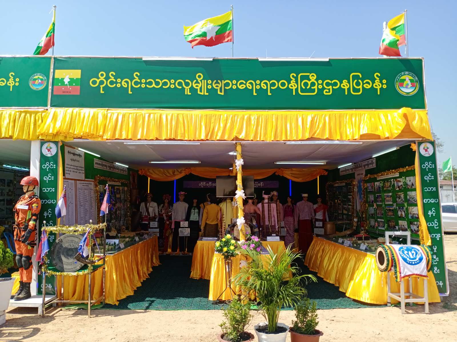 ဆက်လက်ဖတ်ရှုပါရန်(၇၇) နှစ်မြောက်ပြည်ထောင်စုနေ့အထိမ်းအမှတ် တိုင်းအဆင့်ဌာနဆိုင်ရာများအလိုက် ဂုဏ်ပြု ပြခန်းများအား အများပြည်သူများ လေ့လာကြည့်ရှုနိုင်ရန် ၂၀၂၄ ခုနှစ်၊ ဖေဖော်ဝါရီလ ၁၁ ရက်နေ့မှ ၁၄ ရက်နေ့အထိ ဧရာဝတီတိုင်းဒေသကြီး၊ ပုသိမ်မြို့၊ ကျောက်တိုင်အားကစားကွင်း၌ ခင်းကျင်းပြသခဲ့ရာ ပြခန်းပေါင်း(၁၀၀)ခန်းပါရှိပြီး ယင်းပြခန်းများအနက် တိုင်းရင်းသားလူမျိုးများရေးရာဝန်ကြီးဌာန ပြခန်းသည်လည်း တစ်ခုအပါအဝင်ခင်းကျင်း ပြသဆောင်ရွက်လျက်ရှိပါသည်။တိုင်းရင်းသားလူမျိုးများရေးရာဝန်ကြီးဌာနပြခန်းတွင် ကချင်၊ ကယား၊ ကရင်၊ ချင်း၊ ဗမာ၊ မွန်၊ ရခိုင်၊ ရှမ်း တိုင်းရင်းသားမျိုးနွယ်စုကြီး(၈)မျိုး၏ ရိုးရာဝတ်စား ဆင်ယင်ထုံးဖွဲ့မှုများ၊ ကရင်၊ ဗမာ၊ ချင်း၊ ရခိုင်တိုင်းရင်းသားတို့၏ရိုးရာအိမ်ပုံစံငယ်များ၊ တိုင်းရင်းသားများ၏ နေ့ထူးနေ့မြတ်အခမ်းအနား မှတ်တမ်းဓါတ်ပုံများနှင့် တိုင်းရင်းသားဘာသာစာပေသင်မွမ်းမံသင်တန်း ဖွင့်လှစ်သင်ကြားမှုမှတ်တမ်း ဓါတ်ပုံများ၊ ဝန်ကြီးဌာန၏ မျှော်မှန်းချက်(Vision) နှင့် ဦးစီးဌာန၏ဆောင်ပုဒ်များ၊ မြန်မာနိုင်ငံရှိ တိုင်းရင်းသားမျိုးနွယ်စု (၁၃၅) မျိုးစာရင်းများ၊ တိုင်းဒေသကြီး နှင့် ပြည်နယ်အတွင်း တိုင်းရင်းသား ဘာသာစာပေသင်ကြားခွင့်ရရှိသည့် စာပေ(၇၂)မျိုးစာရင်းများ၊ မြန်မာနိုင်ငံရှိ တိုင်းရင်းသားလူမျိုး များနေထိုင်ရာပြမြေပုံ၊ ကရင်ရိုးရာဖားစည်နှင့် အခြားရိုးရာတူရိယာအသုံးအဆောင်ပစ္စည်းများ၊ ရခိုင်ရိုးရာစည်တော်နှင့် အခြားရိုးရာတူရိယာအသုံးအဆောင်ပစ္စည်းများ၊ ချင်းတိုင်းရင်းသား ရိုးရာ တူရိယာအသုံးအဆောင်ပစ္စည်းများအား ခင်းကျင်းပြသဆောင်ရွက်ခဲ့ပါသည်။ တိုင်းရင်းသားလူမျိုးများရေးရာဝန်ကြီးဌာနပြခန်းသို့ ကရင်၊ ရခိုင်၊ ချင်း တိုင်းရင်းသားစာပေ ယဉ်ကျေးမှုအကအဖွဲ့များအပါအဝင် ဌာနဆိုင်ရာအသီးသီးမှ ဝန်ထမ်းများ၊ ကျောင်းသား၊ ကျောင်းသူ များနှင့် အများပြည်သူများ လာရောက်လေ့လာကြည့်ရှုခဲ့ကြပြီး ဉာဏ်စမ်းပဟေဠိများဖြေဆိုကာ အမှတ်တရလက်ဆောင်ပစ္စည်းများပေးအပ်ခြင်း၊ ဝန်ကြီးဌာန၏ မူဝါဒ၊ မျှော်မှန်းချက်၊ ရည်မှန်းချက် များအကြောင်းပါဝင်သည့် လက်ကမ်းစာစောင်များနှင့် တိုင်းရင်းသားမျိုးနွယ်စုများအကြောင်းပါဝင်သည့် လက်ကမ်းစာစောင်များအား ဗဟုသုတရရှိနိုင်စေရေး ဖြန့်ဝေပေးခဲ့ကြောင်း သတင်းရရှိပါသည်။