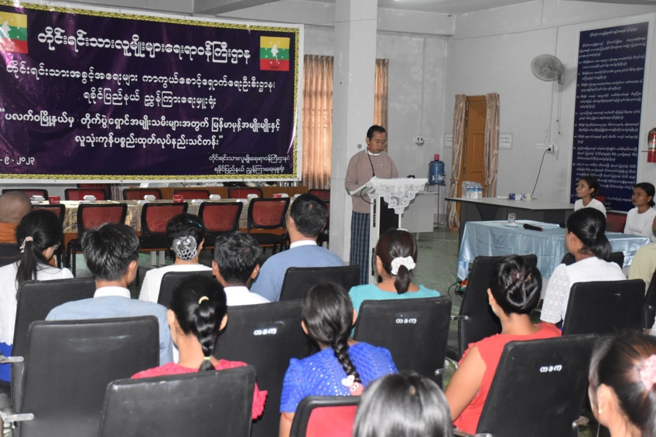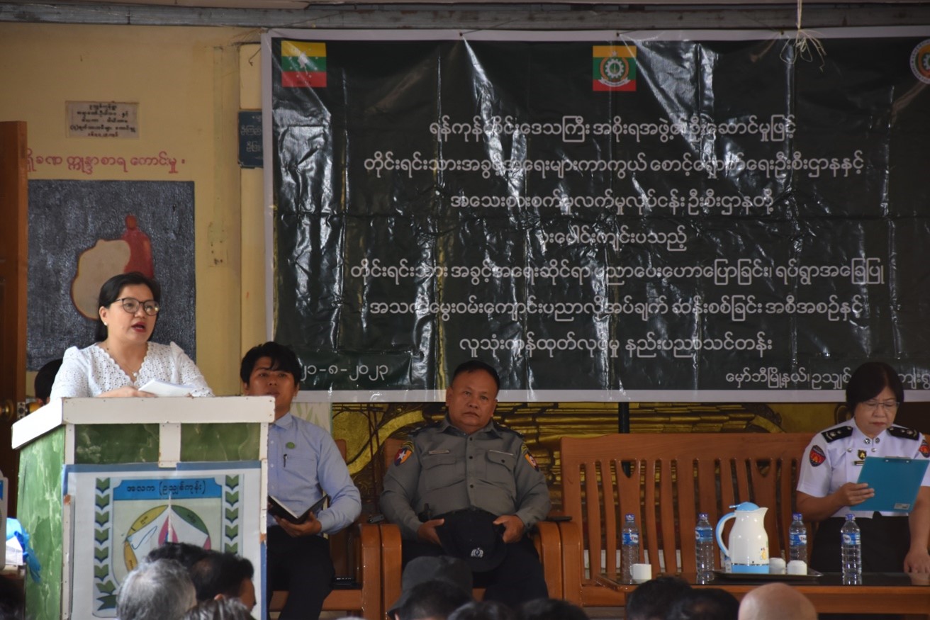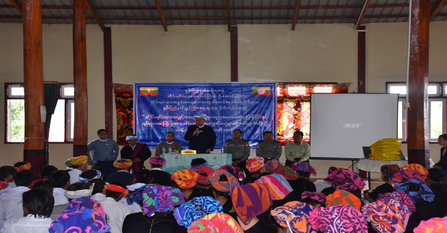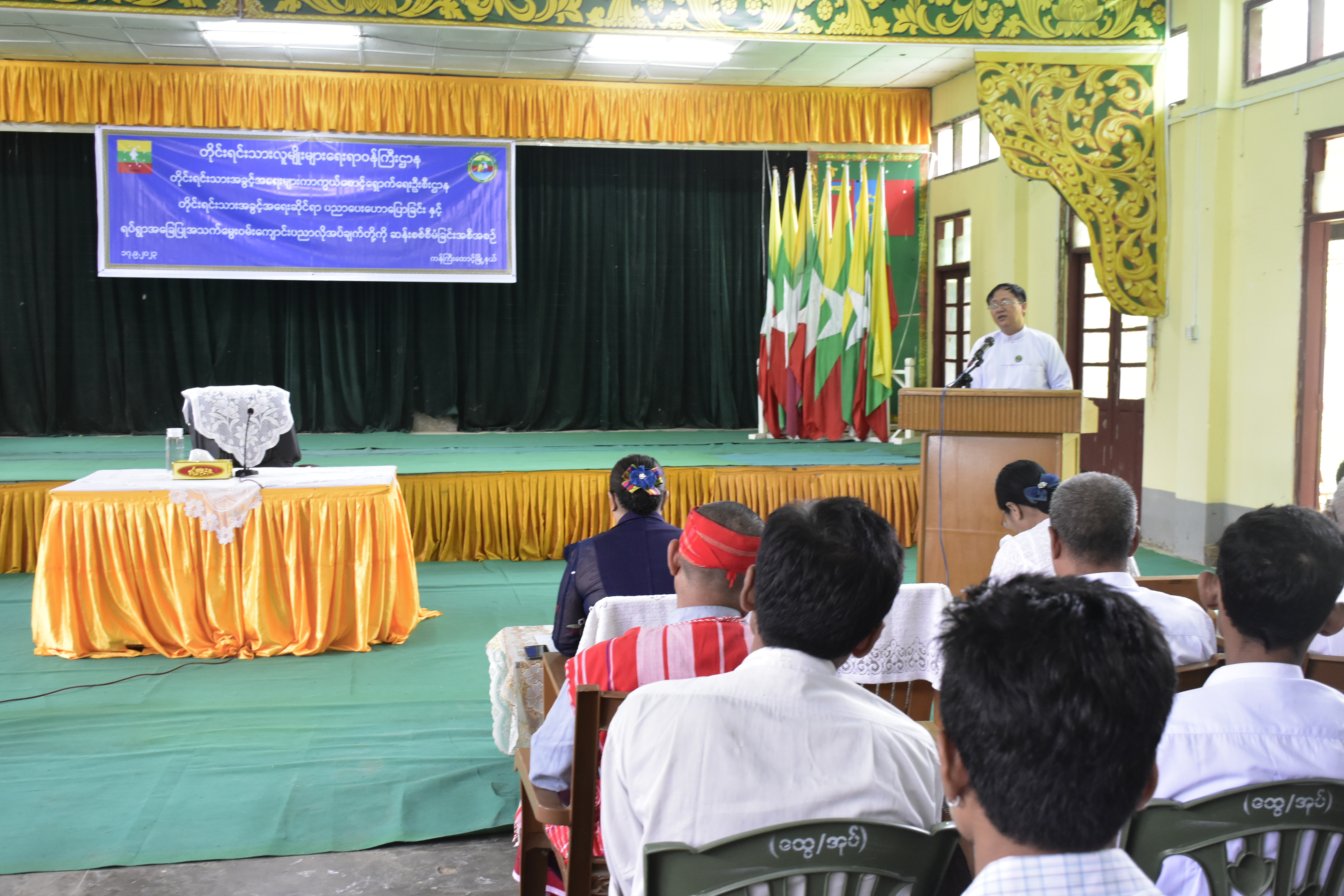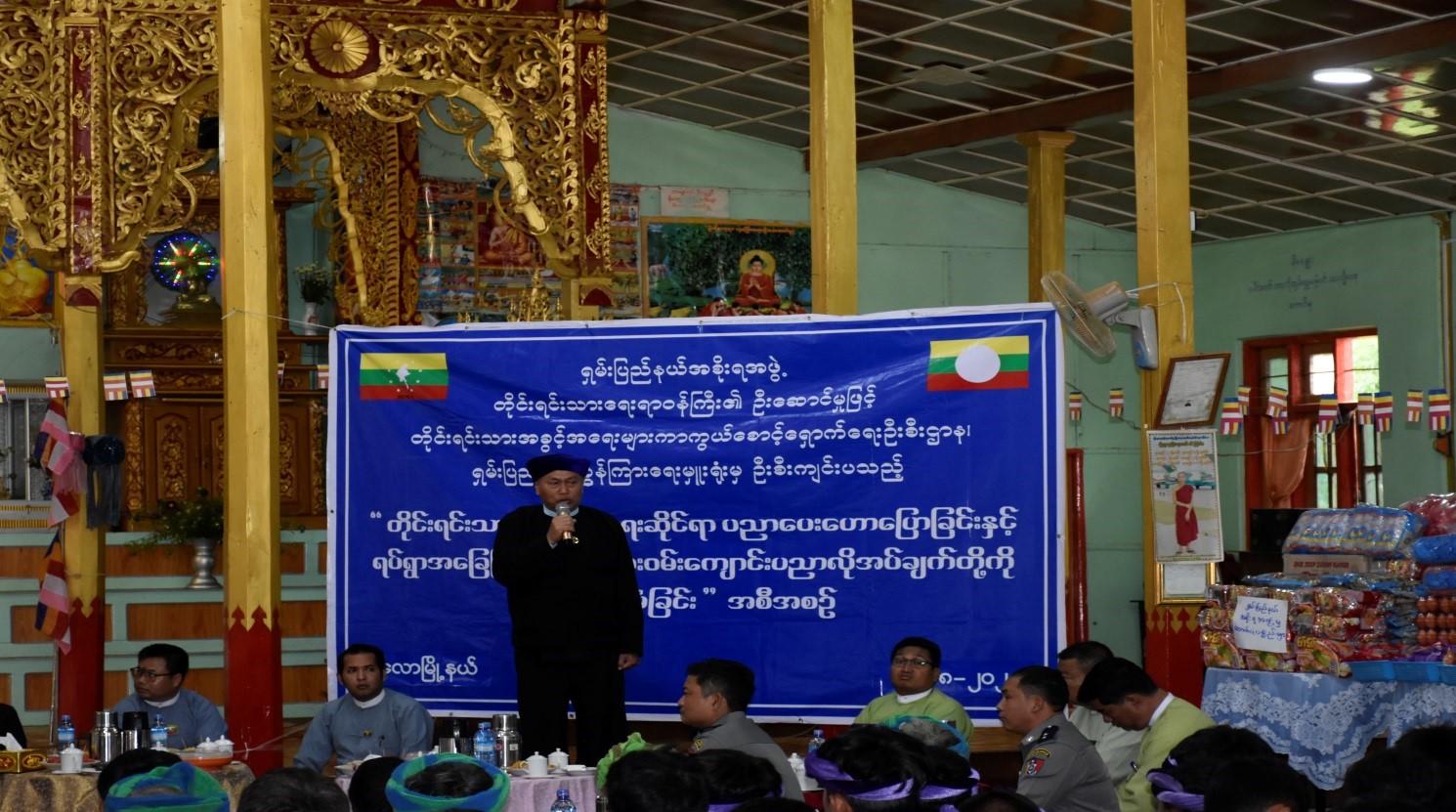 တိုင်းရင်းသားအခွင့်အရေးများကာကွယ်စောင့်ရှောက်ရေးဦးစီးဌာန၊ ရှမ်းပြည်နယ် ညွှန်ကြားရေးမှူးရုံးမှ ဦးစီး၍ တိုင်းရင်းသားအခွင့်အရေးဆိုင်ရာအသိပညာပေးဟောပြောခြင်းနှင့် ရပ်ရွာအခြေပြုအသက်မွေးဝမ်းကျောင်းပညာ လိုအပ်ချက်တို့ကို ဆန်းစစ်စီမံခြင်းအစီအစဉ်ကို ၈-၉-၂၀၂၃ ရက်နေ့တွင် ရှမ်းပြည်နယ်၊ တောင်ကြီးမြို့နယ်၊ ကျောက်တလုံးကြီးမြို့၊ ပင်တွန်ကျေးရွာအုပ်စု၊ မဲတိုင်ကျေးရွာဘုန်းကြီးကျောင်း၌ ကျင်းပပြုလုပ်ခဲ့ပါသည်။ အခမ်းအနားတွင် ရှမ်းပြည်နယ်အစိုးရအဖွဲ့ဝင်၊ တိုင်းရင်းသားရေးရာဝန်ကြီး ဦးအောင်ကြည်ဝင်းက အဖွင့်အမှာစကားပြောကြားခြင်း၊ တိုင်းရင်းသားအခွင့်အရေးများကာကွယ် စောင့်ရှောက်ရေးဦးစီးဌာန၊ ရှမ်းပြည်နယ်ညွှန်ကြားရေးမှူးရုံးမှ ဒုတိယညွှန်ကြားရေးမှူး ဦးချစ်ဇော်လင်း က တိုင်းရင်းသားလူမျိုးများ၏အခွင့်အရေးကာကွယ်စောင့်ရှောက်သည့် ဥပဒေ၊ နည်းဥပဒေများပါ အချက်အလက်များ၊ တိုင်းရင်းသားအခွင့်အရေးဆိုင်ရာမဟာဗျူဟာနှင့် အမျိုးသမီးအခွင့်အရေး၊ မသန်စွမ်းအခွင့် အရေး၊ ကလေးသူငယ်အခွင့်အရေး၊ အဆိုးရွားဆုံးပုံစံဖြင့်ခိုင်းစေခံရသော ကလေး အလုပ်သမားများ ဖယ်ရှားရေး ကိစ္စရပ်များနှင့် လူမှုရေးပင်စင်တို့နှင့်စပ်လျဉ်းသည့် ကိစ္စရပ်များ အကြောင်းတို့ကိုလည်းကောင်း၊ ကျောက်တလုံးကြီးမြို့ အထွေထွေအုပ်ချုပ်ရေးဦးစီးဌာနမှ မြို့နယ် အုပ်ချုပ်ရေးမှူးက ကြိုဆိုနှုတ်ခွန်းဆက်စကားပြောကြားခြင်းနှင့် အထွေထွေအုပ်ချုပ်ရေးဦးစီး ဌာန၏ လုပ်ငန်းဆောင်ရွက်နေမှုများကို လည်းကောင်း၊ တိုင်းရင်းသားစာပေနှင့် ယဉ်ကျေးမှုဦးစီး ဌာနမှ လက်ထောက်ညွှန်ကြားရေးမှူး ဦးမျိုးဇော်အောင်က တိုင်းရင်းသားဘာသာသင် ဆရာ/ ဆရာမ Teaching Assistant (TA)နှင့် Language Teacher (LT) များခန့်အပ်ထားမှုကိစ္စများ၊ တိုင်းရင်းသားစာပေနှင့်ယဉ်ကျေးမှုဦးစီးဌာန၏ လုပ်ငန်းဆောင်ရွက်နေမှုများအကြောင်းကိုလည်း ကောင်း၊ အမှတ်(၂၅)မူးယစ်ဆေးဝါးတားဆီးနှိမ်နင်းရေး ရဲတပ်ဖွဲ့မှ ရဲမှူးမျိုးမင်းလှိုင်က မူးယစ်ဆေးဝါးနှင့် စိတ်ကိုပြောင်းလဲစေတက်သော ဆေးဝါးများဆိုင်ရာအန္တရာယ်တို့ကိုလည်းကောင်း၊ လူကုန်ကူးမှုတာဆီးနှိမ်နင်းရေးရဲတပ်ဖွဲ့တပ်ခွဲ စု(၁၅)တောင်ကြီးမှ ရဲအုပ် သန့်ဇော်ထွန်းက လူကုန်ကူးမှုတားဆီးနှိမ်နင်းရေးဆိုင်ရာ ကိစ္စရပ်များအကြောင်းကိုလည်းကောင်း၊ ပအိုဝ်းစာပေနှင့် ယဉ်ကျေးမှုအဖွဲ့ (ဗဟို)မှ အတွင်းရေးမှူးခွန်ကျော်ခမ်းက အသိပညာပေးဟောပြောချက်များကို ဒေသခံပအိုဝ်းတိုင်းရင်းသားများအား ပအိုဝ်းတိုင်းရင်းသား ဘာသာစကားဖြင့် ပြန်လည်ရှင်းလင်း ပြောကြားခြင်းကိုလည်းကောင်း အသီးသီးအသိပညာပေး ရှင်းလင်း ပြောကြားခဲ့ကြပါသည်။ထို့နောက် တိုင်းရင်းသားအခွင့်အရေးမ