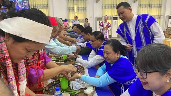 တိုင်းရင်းသားရေးရာဝန်ကြီး၊ ပဲခူးတိုင်းဒေသကြီးအစိုးရအဖွဲ့က ကြီးမှူး၍ ကျင်းပပြုလုပ်သော “ကရင်တိုင်းရင်းသားရိုးရာ ဝါခေါင်လ ချည်ဖြူဖွဲ့မင်္ဂလာအခမ်းအနား” ကို စက်တင်ဘာလ ၁ ရက် နေ့ နံနက်ပိုင်းက ပဲခူးမြို့၊ မြို့တော်ခန်းမ၌ ကျင်းပပြုလုပ်ခဲ့ပါသည်။ အခမ်းအနားသို့ ပဲခူးတိုင်းဒေသကြီးအစိုးရအဖွဲ့ ဝန်ကြီးချုပ် ဦးမျိုးဆွေဝင်းနှင့်ဇနီး၊ အစိုးရ အဖွဲ့ဝင်ဝန်ကြီးများနှင့် ဇနီးများ၊ ဌာနဆိုင်ရာများ၊ တိုင်းရင်းသားစာပေနှင့်ယဉ်ကျေးမှုကော်မတီ အဖွဲ့များ၊ တိုင်းရင်းသားဧည့်သည်တော်များ တက်ရောက်ခဲ့ကြပါသည်။ ရှေးဦးစွာ တိုင်းဒေသကြီးဝန်ကြီးချုပ် ဦးမျိုးဆွေဝင်းနှင့် တိုင်းရင်းသားရေးရာဝန်ကြီး ဦးစောလင်းအောင်တို့က ကရင်တိုင်းရင်းသားရိုးရာ ဝါခေါင်လချည်ဖြူဖွဲ့မင်္ဂလာအခမ်းအနားကို ဖားစည်(၉)ချက်တီး၍ စတင်ဖွင့်လှစ်ပေးခဲ့ပါသည်။ ဆက်လက်ပြီး ဝန်ကြီးချုပ်က ရှေးဘိုးဘွား ဘီဘင်အစဉ်အဆက်က ဆင်းသက်လာတဲ့ ယုံကြည်ယူဆချက်အရ ဝါခေါင်လဆိုတာ မိုးရေကြီးခြင်း၊ စားနပ်ရိက္ခာရှားပါးခြင်း၊ မကောင်းဆိုးဝါး အလွယ်တကူဝင်ရောက်ပူးကပ်ခြင်း စသည်တို့ကို ယုံကြည်သက်ဝင်သည့်အလျှောက် လိပ်ပြာမလွင့်အောင် လူငယ်များက ကရင်အဖိုးအဖွားထံမှာ ချည်ဖြူဖွဲ့ခံယူသည့် ပွဲတော်ဖြစ်ပါကြောင်း၊ ဒါကြောင့် ရိုးရာဓလေ့ထုံးတမ်းအစဉ်အလာ မပျောက်ပျက်စေရေးအတွက် ကရင်တိုင်းရင်းသားလူငယ်များအနေနဲ့ လက်ဆင့်ကမ်း ဆက်လက် သယ်ဆောင်ရမှာဖြစ်ပါကြောင်း၊ ကရင်တိုင်းရင်းသားများ၏ ရိုးရာဓလေ့ထုံးတမ်းများ၊ ဒြပ်ရှိဒြပ်မဲ့ ယဉ်ကျေးမှုအမွေအနှစ်များကိုလည်း ဆက်လက်ထိန်းသိမ်းစောင့်ရှောက်ကြရန်နှင့် တိုင်းပြည်ဖွံ့ဖြိုး တိုးတက်ရေးလုပ်ငန်းများ၊ ငြိမ်းချမ်းရေးလုပ်ငန်းစဉ်များတို့တွင်လည်း အခြားသော တိုင်းရင်းသား ညီအစ်ကိုမောင်နှမများနှင့် အတူတကွ ပူးပေါင်းဆောင်ရွက်ကြစေလိုပါကြောင်း ပြောကြားခဲ့ပါသည်။ ယင်းနောက် တိုင်းရင်းသားဘာသာသင်ဆရာမတစ်ဦးက ကရင်ရိုးရာချည်ဖြူဖွဲ့ခြင်း ဖြစ်ပေါ် လာပုံအား ရှင်းလင်းပြောကြားခဲ့ပြီး တက်ရောက်လာကြသော ကရင်တိုင်းရင်းသားရိုးရာယဉ်ကျေးမှု အကအဖွဲ့များက ကရင်ဒုံးယိမ်းအကများဖြင့်လည်းကောင်း၊ ရှမ်းတိုင်းရင်းသားအကအဖွဲ့များက ရှမ်းအကများဖြင့်လည်းကောင်း ကပြဖျော်ဖြေခဲ့ကြပါသည်။ ဆက်လက်၍ တိုင်းဒေသကြီး ဝန်ကြီးချုပ် ဦးမျိုးဆွေဝင်းက ချည်ဖြူဖွဲ့ပေးသည့် ကရင်အဖိုးအဖွားများနှင့် အကဖွဲ့များအတွက် ထောက်ပံ့ငွေများပေးအပ်ခဲ့ပါသည်။ ထို့နောက် ကရင်တိုင်းရင်းသားစာပေနှင့်ယဉ်ကျေးမှုကော်မတီ အဖွဲ့ဝင်တစ်ဦးက ကျေးဇူးတင်စကားပြန်လည်ပြောကြားခဲ့ပြီး စုပေါင်းမှတ်တမ်းတင်ဓါတ်ပုံ ရိုက်ကူးခဲ့ကြကာ တက်ရောက်လာကြသည့် ဧည့်သည်တော
