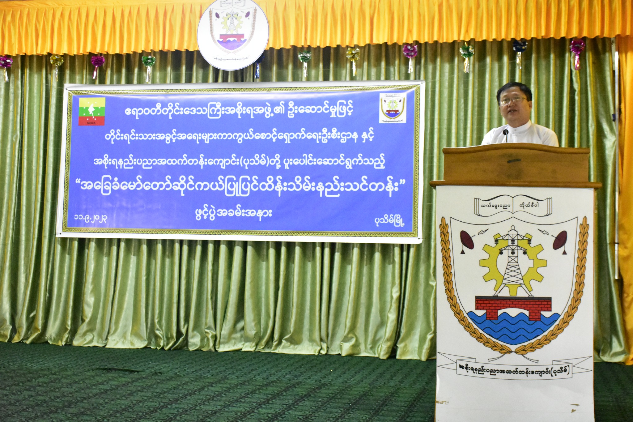 တိုင်းရင်းသားအခွင့်အရေးများကာကွယ်စောင့်ရှောက်ရေးဦးစီးဌာန၊ ရန်ကုန်တိုင်း ဒေသကြီး၊ ညွှန်ကြားရေးမှူးရုံးမှ ကြီးမှူး၍ “တိုင်းရင်းသားအခွင့်အရေးဆိုင်ရာအသိပညာပေး ဟောပြောခြင်းနှင့် ရပ်ရွာအခြေပြုအသက်မွေးဝမ်းကျောင်းပညာလိုအပ်ချက်တို့ကို ဆန်းစစ် စီမံခြင်း အစီအစဉ်”နှင့် “ဆပ်ပြာရည်၊ ခေါင်းလျှော်ရည်၊ ဆပ်ပြာခဲ၊ လက်သန့်ဆေးရည် လူသုံးကုန်ထုတ်လုပ်မှုနည်းပညာသင်တန်းဖွင့်ပွဲအခမ်းအနား”ကို (၂၁-၈-၂၀၂၃) ရက်နေ့ နံနက် (၁၀:၀၀) နာရီအချိန်တွင် ရန်ကုန်တိုင်းဒေသကြီး၊ မှော်ဘီမြို့နယ်၊ ဥသျှစ်ကုန်းကျေးရွာ၊ ဘုရား ကျောင်းခန်းမ၌ ကျင်းပပြုလုပ်ခဲ့ပါသည်။ ပထမဦးစွာ တိုင်းရင်းသားအခွင့်အရေးများကာကွယ်စောင့်ရှောက်ရေးဦးစီးဌာန ရန်ကုန် တိုင်းဒေသကြီး ညွှန်ကြားရေးမှူးရုံးမှ ဒုတိယညွှန်ကြားရေးမှူး ဒေါ်ဖြူဖြူဝင်းက တိုင်းရင်းသား လူမျိုးများရေးရာဝန်ကြီးဌာနအကြောင်းမိတ်ဆက်ခြင်း၊ တိုင်းရင်းသားလူမျိုးများ၏ အခွင့်အရေး ကာကွယ်စောင့်ရှောက်သည့် ဥပဒေ၊ နည်းဥပဒေများအကြောင်း၊ တိုင်းရင်းသားအချင်းချင်း အမုန်းစကားနှင့် အကြမ်းဖက်မှုဖြစ်စေရန် လှုံ့ဆော်မှုကို တားဆီးရေးဆိုင်ရာ သိကောင်း စရာများကိုလည်းကောင်း၊ တိုင်းရင်းသားလူမျိုးများ၏ အခွင့်အရေးကာကွယ်စောင့်ရှောက်သည့် ဥပဒေတွင်ပါရှိသည့် တိုင်းရင်းသားလူမျိုးများ၏ အခွင့်အရေးဆိုင်ရာများ၊ စစ်တမ်းများ ကောက်ယူ ရခြင်းရည်ရွယ်ချက်နှင့် တိုင်းရင်းသားဘာသာသင် TA/LT ဆရာများခန့်ထားခြင်းဆိုင်ရာ ကိစ္စများကို ရှင်းလင်းပြောကြားခဲ့ပါသည်။ဆက်လက်၍ လူဝင်မှုကြီးကြပ်ရေးနှင့် ပြည်သူ့အင်အားဝန်ကြီးဌာနမှ မြောက်ပိုင်းခရိုင်မှူး ဒေါ်ဉမ္မာညွှန့်က လူဝင်မှုကြီးကြပ်ရေးဦးစီးဌာန၏ လုပ်ငန်းဆောင်ရွက်နေမှု အခြေအနေများအား လည်းကောင်း၊ လူမှုဝန်ထမ်းဦးစီးဌာန၊ လက်ထောက်ညွှန်ကြားရေးမှူး၊ ဒေါ်ခင်စန်းမြင့်က လူမှုဝန်ထမ်းဦးစီးဌာနမှ ဖွင့်လှစ်ထားရှိသည့် သင်တန်းကျောင်းများ အခြေအနေ၊ အမျိုးသမီးအခွင့် အရေး၊ ကလေးသူငယ်အခွင့်အရေးများဆိုင်ရာ အကြောင်းအရာများကိုလည်းကောင်း ရှင်းလင်းပြော ကြားခဲ့ပါသည်။ထို့နောက် သမဝါယမဦးစီးဌာနမှ မြို့နယ်ဦးစီးမှူး ဦးကျော်သူစိုးက သမဝါယမ ဦးစီးဌာန၏ လုပ်ငန်းစဉ်များနှင့် သမဝါယမအသင်းချေးငွေအကြောင်း၊ အခြေခံစားသောက်ကုန် ရောင်းချပေးနေမှု အခြေအနေများကိုလည်းကောင်း၊ အသေးစားစက်မှုလက်မှုဦးစီးဌာနမှ ဦးစီးအရာရှိ ဒေါ်စန်းထွေး က အသေးစားစက်မှုလက်မှုဦးစီးဌာန၏ သင်တန်းဖွင့်လှစ်ပေးနေမှုအခြေအနေနှင့် သင်တန်း ဖွင့်လှစ်ရခြင်း၏ ရည်ရွယ်ချက်၊ သင်တန်းတွင် သင်ကြားပေးမည့် အကြောင်းအရာများနှင့် အမျိုးအစားတို့ကိုလည်းကောင်း ရှင်းလင်းပြောကြားခဲ့ပြ