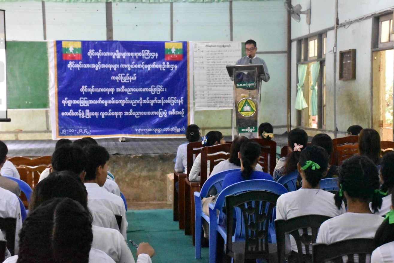 ဆက်လက်ဖတ်ရှုပါရန်တိုင်းရင်းသားလူမျိုးများရေးရာဝန်ကြီးဌာန၊ တိုင်းရင်းသားအခွင့်အရေးများကာကွယ် စောင့်ရှောက်ရေးဦးစီးဌာန၊ ကရင်ပြည်နယ် ညွှန်ကြားရေးမှူးရုံးမှ ဦးဆောင်၍ “တိုင်းရင်းသား ရေးရာ အသိပညာပေးခြင်း၊ ရပ်ရွာအခြေပြုအသက်မွေးဝမ်းကျောင်းပညာလိုအပ်ချက်တို့ကို ဆန်းစစ်စီမံခြင်းအစီအစဉ်နှင့် ဗလငါးတန်ဖွံ့ဖြိုးစေရေးလူငယ်ရေးရာအသိပညာပေးခြင်း” အခမ်းအနားကို (၂၅-၁၀-၂၀၂၄) ရက်နေ့တွင် ကရင်ပြည်နယ်၊ ဘားအံမြို့နယ်၊ လှာကာကျေးရွာ၊ အ.ထ.က (လှာကာ) ကျောင်းခန်းမ၌ ကျင်းပပြုလုပ်ခဲ့ပါသည်။ အခမ်းအနားတွင် တိုင်းရင်းသားအခွင့်အရေးများကာကွယ်စောင့်ရှောက်ရေးဦးစီးဌာန၊ ကရင်ပြည်နယ်၊ ညွှန်ကြားရေးမှူးရုံးမှ ညွှန်ကြားရေးမှူး ဦးကျော်စိုးက တိုင်းရင်းသားလူမျိုး များ၏ အခွင့်အရေးကာကွယ်စောင့်ရှောက်သည့် ဥပဒေ၊ နည်းဥပဒေများ၊ အမုန်းစကားနှင့် အကြမ်းဖက်မှု ဖြစ်စေသောလှုံ့ဆော်မှုကို တားဆီးကာကွယ်ခြင်းဆိုင်ရာ အသိပညာပေးခြင်း ကိုလည်းကောင်း၊ တိုင်းရင်းသားစာပေနှင့် ယဉ်ကျေးမှုဦးစီးဌာနမှ ညွှန်ကြားရေးမှူး ဒေါ်ရီရီဝင်းက တိုင်းရင်းသားလူမျိုးများအကြောင်းနှင့် တိုင်းရင်းသားဘာသာသင်ကြားနိုင်ရေး ဆောင်ရွက်နေမှု ကိစ္စများအားလည်းကောင်း၊ ပတ်ဝန်းကျင်ထိန်းသိမ်းရေးဦးစီးဌာနမှ လက်ထောက် ညွှန်ကြားရေးမှူး ဦးကျော်ဆန်းက ပတ်ဝန်းကျင်နှင့် အလေ့အထကောင်းများ ခေါင်းစဉ်ဖြင့် လည်းကောင်း၊ လူမှုဝန်ထမ်းဦးစီးဌာနမှ ဦးစီးအရာရှိ ဒေါ်စန်းစန်းလှိုင်က ကလေးသူငယ် အခွင့်အရေး၊ အမျိုးသမီးရေးရာကိစ္စရပ်များအားလည်းကောင်း၊ အားကစားနှင့် ကာယပညာ ဦးစီးဌာန မြို့နယ်ဦးစီးမှူး ဒေါ်နော်ဩလျဖောက အားကစားနှင့် လူငယ်ရေးရာကိစ္စရပ်များကို လည်းကောင်း ပြောကြားခဲ့ပါသည်။ ဆက်လက်၍ ရပ်ရွာအခြေပြု အသက်မွေးဝမ်းကျောင်းပညာလိုအပ်ချက် စစ်တမ်းကို ကောက်ယူခဲ့ရာ ဒေသခံတိုင်းရင်းသား (၁၀၀) ဦးတို့မှ ဖြေဆိုခဲ့ကြပါသည်။ ထို့နောက် တက်ရောက်လာကြသော ဧည့်သည်တော်များအား အမှတ်တရလက်ဆောင်များ ပေးအပ်ခဲ့ပြီး အခမ်းအနားကို ရုတ်သိမ်းခဲ့ပါသည်။