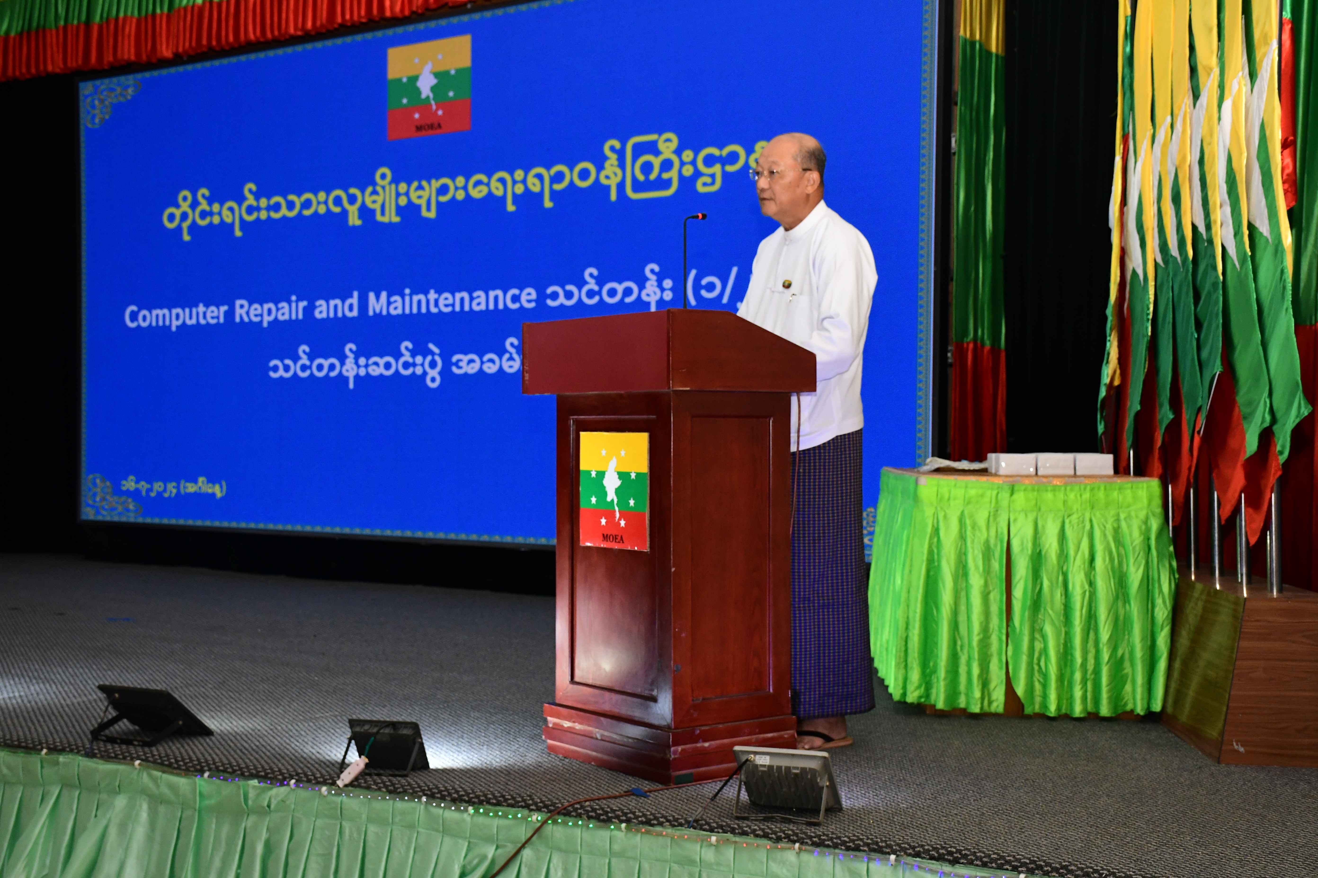 ဆက်လက်ဖတ်ရှုပါရန်တိုင်းရင်းသားလူမျိုးများရေးရာဝန်ကြီးဌာနနှင့် ရှမ်းပြည်နယ်အစိုးရအဖွဲ့တို့ ကြီးမှူးဖွင့်လှစ် သည့် ကွန်ပျူတာအဆင့်မြင့် ပြုပြင်ထိန်းသိမ်းခြင်းသင်တန်းအမှတ်စဉ်(၁/၂၀၂၄)ဖွင့်ပွဲ အခမ်းအနား ကို ၂၀၂၄ ခုနှစ်၊ ဩဂုတ်လ(၅) ရက်နေ့က အေးသာယာမြို့၊ တိုင်းရင်းသားလူမျိုးများရေးရာ ဝန်ကြီးဌာန၊ ရှမ်းပြည်နယ်တိုင်းရင်းသားရေးရာနှင့်သက်မွေးပညာသင်တန်းစင်တာ၌ ကျင်းပခဲ့ပါသည်။ ပထမဦးစွာ ရှမ်းပြည်နယ်အစိုးရအဖွဲ့ဝင်၊ တိုင်းရင်းသားရေးရာဝန်ကြီး ဦးအောင်ကြည်ဝင်း က သင်တန်းဖွင့်ပွဲ အမှာစကားပြောကြားရာတွင် ဤရှမ်းပြည်နယ် တိုင်းရင်းသားရေးရာနှင့် သက်မွေး ပညာသင်တန်းစင်တာ၌သာမက အခြားဖွင့်လှစ်သည့် သင်တန်းတိုင်း၌ တစ်ဆင့်မြင့်သည့် သင်တန်း များကို ထပ်မံသင်ယူလေ့လာကြရန် မှာကြားခဲ့ပါကြောင်း၊ သို့မှသာ Capacity Building မြင့်လာပြီး အလုပ်အကိုင်အခွင့်အလမ်းရရှိရန် ပိုမိုလွယ်ကူလာမည်ဖြစ်ပါကြောင်း၊ တိုင်းရင်းသားများ၏ လူနေမှု ဘဝဖွံ့ဖြိုးတိုးတက်စေရန် ရည်ရွယ်၍ ပြည်ထောင်စုဘဏ္ဍာရန်ပုံငွေ၊ ပြည်နယ်အစိုးရဘဏ္ဍာရန်ပုံငွေ များဖြင့် သင်တန်းများအား ဖွင့်လှစ်ပေးနေပါကြောင်း၊ သင်တန်း သား/သူများအနေဖြင့် မျိုးဆက်သစ် များအား အခွင့်အလမ်းသာလျှင်သာသလို ယခုကဲ့သို့ ဖွင့်လှစ်သည့်သင်တန်းများသို့ ညွှန်းပို့ပေးစေ လိုပါကြောင်းနှင့် သင်တန်းသား/သူအချင်းချင်း စည်းစည်းလုံးလုံးဖြင့် သင်ကြားသင်ယူကြစေလို ပါကြောင်း နှုတ်ခွန်းဆက်အမှာစကား ပြောကြားခဲ့ပါသည်။ ဆက်လက်ပြီး တိုင်းရင်းသားအခွင့်အရေးများကာကွယ်စောင့်ရှောက်ရေးဦးစီးဌာနမှ ညွှန်ကြားရေးမှူးချုပ် ဦးမင်းအေးကိုက အခြေခံကွန်ပျူတာသင်တန်းများကို ဖွင့်လှစ်ပေးခဲ့ပြီး ဖြစ်၍ မိမိအသုံးပြုသည့်ကွန်ပျူတာကို ပြုပြင်တတ်စေရန် ယခုကဲ့သို့ ကွန်ပျူတာအဆင့်မြင့်ပြုပြင်ထိန်းသိမ်း ခြင်းသင်တန်းကို ထပ်မံဖွင့်လှစ်ရခြင်းဖြစ်ပါကြောင်း၊ ဝန်ထမ်းများသာမက အခြေခံအဆင့်တက်ရောက် ခဲ့ပြီးသည့် သင်တန်းသားများ ပါဝင်ပါကြောင်း၊ နိုင်ငံတော်မှ E-government စနစ်ကို ထိရောက်စွာ အသုံးပြုနိုင်ရေး စီစဉ်ဆောင်ရွက်နေသည့်အတွက် E-government စနစ်သို့ပြောင်းလဲရာတွင် ကွန်ပျူတာ ကို အသုံးချရန်အတွက်သာ တတ်မြောက်ပြီး ပျက်စီးမှုကိုမသိရှိလျှင် လုပ်ငန်းစဉ်နှောင့်နှေးနိုင်သည့် အတွက် တစ်ဖက်တစ်လမ်းမှ အထောက်အကူဖြစ်စေရန်၊ တစ်ပိုင်တစ်နိုင်လုပ်ငန်း လုပ်ကိုင်နိုင်စေရန် နှင့် လူမှုဘဝဖွံ့ဖြိုးတိုးတက်စေရန် ရည်ရွယ်ပါကြောင်း၊ သင်တန်းသားများအနေဖြင့် လက်တွေ့ အသုံးချနိုင်အောင် သင်ယူရန်နှင့် ဆရာများအနေဖြင့်လည်း အုပ်စုများစုဖွဲ့၍ လေ့ကျင့်သင်ကြား ပေးစေလိုပါကြောင်း၊ သင်တန်းပြီးမြောက်သည့်အခါ ဌာနတ