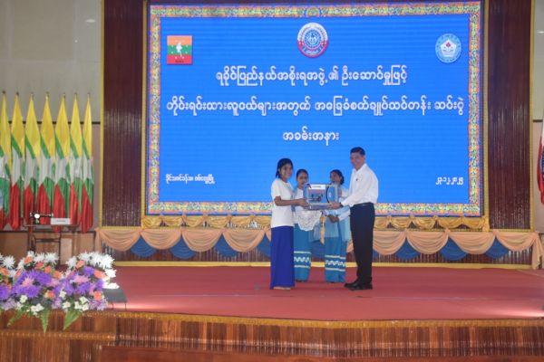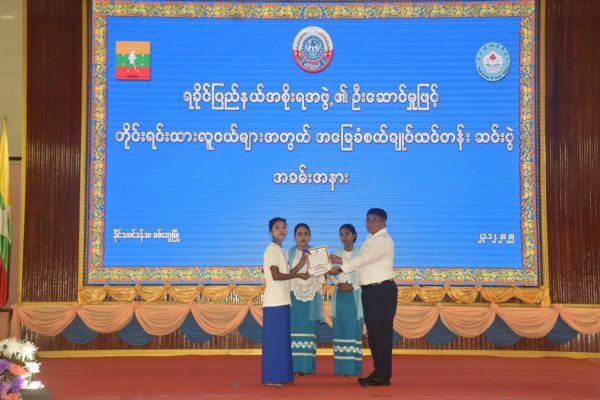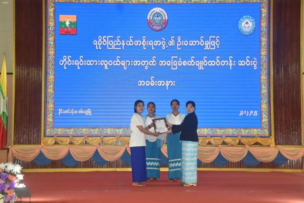 အခမ်းအနားတွင် ရခိုင်ပြည်နယ်အစိုးရအဖွဲ့၊ ပြည်နယ်ဝန်ကြီးချုပ်ဦးထိန်လင်းမှ အဖွင့်အမှာ စကားပြောကြားခဲ့ပါသည်။ ထို့နောက် သင်တန်းတွင် ထူးချွန်ဆုရရှိသူများကို ချီးမြှင့်ခြင်း၊ သင်တန်းတွင် သင်ကြား ပို့ချခဲ့သည့် သင်တန်းနည်းပြ ဆရာမများအား ဂုဏ်ပြုထောက်ပံ့ငွေနှင့် လက်မှတ်ပေးအပ်ခဲ့ ပါသည်။