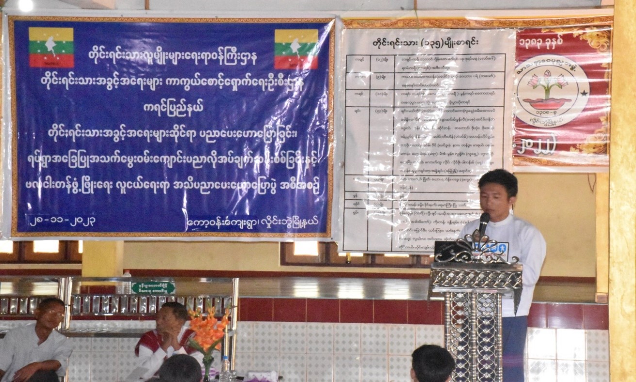 တိုင်းရင်းသားအခွင့်အရေးဆိုင်ရာအသိပညာပေးဟောပြောခြင်း၊ ရပ်ရွာအခြေပြုအသက်မွေးဝမ်းကျောင်းပညာလိုအပ်ချက်တို့ကိုစစ်တမ်းကောက်ယူခြင်းနှင့် ဗလငါးတန်ဖွံ့ဖြိုးစေရေး လူငယ်ရေးရာ အသိပညာပေးခြင်း အခမ်းအနား ကရင်ပြည်နယ်တွင် ကျင်းပပြုလုပ် ကရင်၊ နိုဝင်ဘာ ၂၈ ရက်