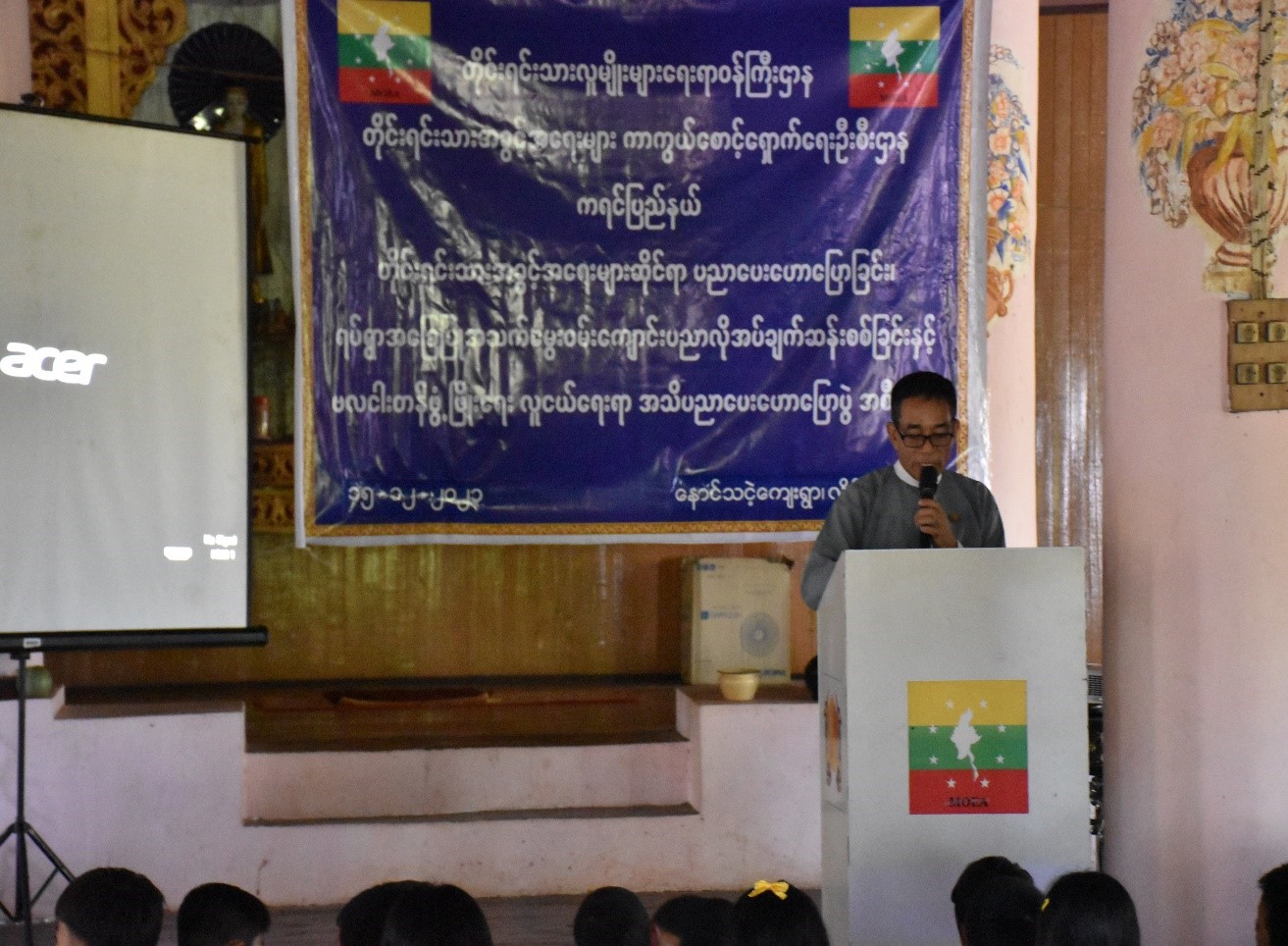ထို့နောက် အားကစားနှင့်ကာယပညာဦးစီးဌာနမှ ဒုတိယညွှန်ကြားရေးမှူး ဦးစတင်အောင်မြင့် က ဗလငါးတန်ဖွံ့ဖြိုးစေရေး အားကစားနှင့်လူငယ်၊ အားကစားနှင့် ကိုယ်ကာယကြံ့ခိုင်ရေးကို လည်းကောင်း၊ ခရိုင်ပတ်ဝန်းကျင်ထိန်းသိမ်းရေးဦးစီးဌာန၊ လက်ထောက်ညွှန်ကြားရေးမှူး ဦးကျော်ဆန်းက ပတ်ဝန်းကျင်စီမံခန့်ခွဲမှုနှင့် ရာသီဥတုပြောင်းလဲမှုဆိုင်ရာကိစ္စရပ်များ၊ ပတ်ဝန်း ကျင်နှင့် လူငယ်၊ ပလပ်စတစ်စွန့်ပစ်မှုဆိုင်ရာကိစ္စရပ်များကို တိုင်းရင်းသားပြည်သူများ အသိအမြင် များ တိုးပွားလာစေရန်လည်းကောင်း၊ လူမှုဝန်ထမ်းဦးစီးဌာနမှ ဦးစီးမှူး ဦးစိုင်းရန်နောင်က ကလေး သူငယ်အခွင့်အရေးများ၊ ကလေးသူငယ်အလုပ်သမားပပျောက်ရေး ဆိုင်ရာကိစ္စရပ်များကို လည်း ကောင်း၊ ပြန်ကြားရေးနှင့် ပြည်သူ့ဆက်ဆံရေးဦးစီးဌာနမှ ဦးစီးအရာရှိ ဦးစေသော်တာလင်းသန့် က ဗလငါးတန်ဖွံ့ဖြိုးစေရေး လူငယ်ရေးရာ စကားဝိုင်းများ၊ စာပေနှင့်လူငယ်ခေါင်းစဉ်ဖြင့် လည်းကောင်း၊ တိုင်းရင်းသားအခွင့်အရေးများကာကွယ်စောင့်ရှောက်ရေးဦးစီးဌာနမှ ဦးစီးအရာရှိ ဦးဝေယံထက်က တိုင်းရင်းသားလူမျိုးများ၏ အခွင့်အရေးကာကွယ်စောင့်ရှောက်သည့် ဥပဒေ၊ နည်းဥပဒေများ၊ ရှေ့လုပ်ငန်းစဉ်များ၊ မဟာဗျူဟာများကို ဒေသခံတိုင်းရင်းသားများအား လည်းကောင်း၊ တိုင်းရင်းသားစာပေနှင့် ယဉ်ကျေးမှုဦးစီးဌာနမှ ဦးစီးအရာရှိ ဒေါ်မြတ်သီရိအောင်က တိုင်းရင်းသားဘာသာသင်ဆရာ၊ ဆရာမများ ခန့်အပ်ထားရှိမှု အခြေအနေနှင့် ဦးစီးဌာန၏ ဆောင်ရွက်နေမှု အခြေအနေများအား ရှင်းလင်းပြောကြားခဲ့ပါသည်။