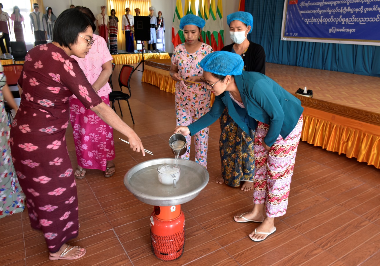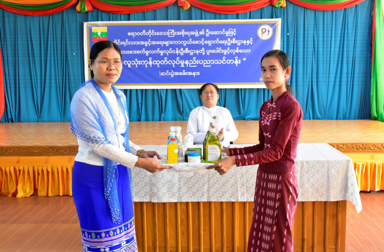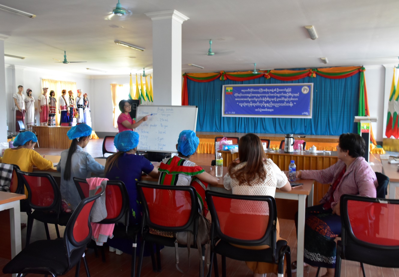 အဆိုပါသင်တန်းအား (၁၈-၁၂-၂၀၂၃)ရက်နေ့မှ (၂၂-၁၂-၂၀၂၃)ရက်နေ့အထိ ဖွင့်လှစ် သင်ကြားခဲ့ပြီး လူသုံးကုန်ပစ္စည်းအမျိုးအစား(၁၀)မျိုးဖြစ်သော အဝတ်လျှော်ဆပ်ပြာရည်၊ ပန်းကန်ဆေးဆပ်ပြာရည်၊ ဘက်စုံသုံးဆပ်ပြာရည်၊ ရေချိုးဆပ်ပြာရည်၊ လျှော်မွှေးရည်၊ သဘာဝခေါင်းလျှော်ရည်၊ မျက်နှာသစ်ဆပ်ပြာခဲ၊ လက်သန့်ဆေးရည်၊ ဆပ်ပြာခရင်(မ်)၊ Body Scrub ထုတ်လုပ်နည်းတို့ကို သင်ကြားခဲ့ကြောင်း သိရှိရပါသည်။