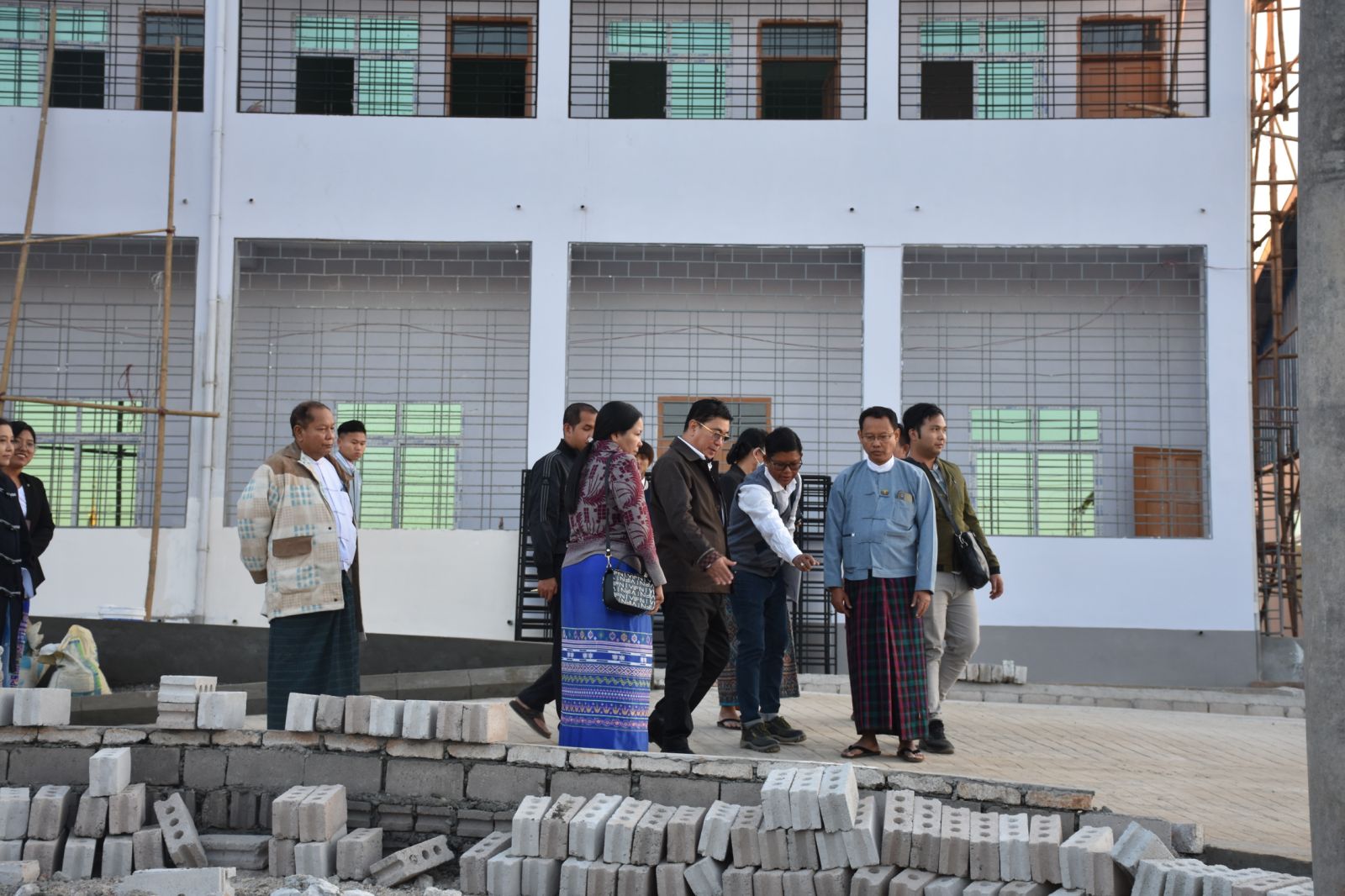 ပထမဦးစွာ ဒုတိယဝန်ကြီးနှင့်အဖွဲ့သည် မဲခေါင်-လန်းချန်အထူးရန်ပုံငွေနှင့် ပြည်ထောင်စုဘဏ္ဍာရန်ပုံများဖြင့် ဆောင်ရွက်လျက်ရှိသော တည်ဆောက်ရေးလုပ်ငန်း ဖြစ်သည့် အလုပ်ရုံဆောင်၊ ဝင်းခြံစည်းရိုး၊ ထမင်းစားဆောင်၊ ပင်မအဆောက်အဦထပ်တိုး လုပ်ငန်းများနှင့် ပတ်ဝန်းကျင်စိမ်းလန်းစိုးပြေရေးများကို လိုက်လံကြည့်ရှုစစ်ဆေးခဲ့ပြီး မြေညီထပ်ရှင်းလင်းဆောင်တွင် ရှမ်းပြည်နယ်အစိုးရအဖွဲ့ဝင် တိုင်းရင်းသားရေးရာဝန်ကြီး၊ အဆောက်အဦကို တာဝန်ယူတည်ဆောက်နေသည့် မိုးယံဝင့်ချီကုမ္ပဏီလီမိတက်မှ တာဝန် ရှိသူများနှင့် ဆောက်လုပ်ရေးဝန်ကြီးဌာန၊ အရည်အသွေးထိန်းချုပ်စိစစ်ရေးအဖွဲ့မှ တာဝန်ရှိသူများတို့အား စိစစ်တွေ့ရှိချက်များအပေါ် လိုအပ်သည်ကို ညှိနှိုင်းမှုများ ဆောင်ရွက် ပေးခဲ့ပြီး အဆောက်အဦကို ၇၇ နှစ်မြောက်ရှမ်းပြည်နယ်နေ့အမီ ဖွင့်လှစ်နိုင်ရေးနှင့် အရည်အသွေးစံချိန်စံညွှန်းနှင့်အညီဆောင်ရွက်ရန် ဆွေးနွေးပြောကြားခဲ့ပါသည်။