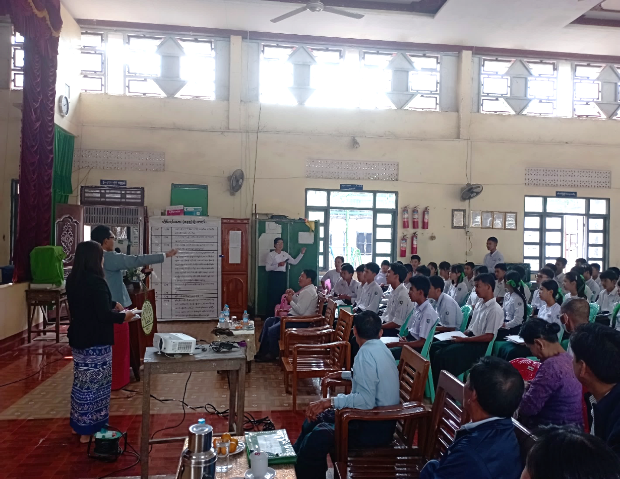 ထို့နောက် ပတ်ဝန်းကျင်ထိန်းသိမ်းရေးဦးစီးဌာန၊ လက်ထောက်ညွှန်ကြားရေးမှူး ဦးကျော်ဆန်းက ပတ်ဝန်းကျင်စီမံခန့်ခွဲမှုနှင့် ရာသီဥတုပြောင်းလဲမှုဆိုင်ရာ ကိစ္စရပ်များအား ပတ်ဝန်းကျင်နှင့် လူငယ်ခေါင်းစဉ်ဖြင့် လည်းကောင်း၊ လူမှုဝန်ထမ်းဦးစီးဌာနမှ ဦးစီးအရာရှိ ဒေါ်စောဥမ္မာက ကလေးအလုပ်သမား ပပျောက်ရေးဆိုင်ရာ ကိစ္စရပ်များနှင့် ကလေးသူငယ် အခွင့်အရေးဆိုင်ရာ ကိစ္စရပ်များအား လည်းကောင်း၊ မြို့နယ်စီမံအုပ်ချုပ်ရေးကောင်စီအဖွဲ့ဝင် (၂) ဦးဝင်းတင်က ကျောင်းသား၊ ကျောင်းသူများ၏ ပညာရေးဆိုင်ရာကိစ္စရပ်များနှင့် ဗလငါးတန် ဖွံ့ဖြိုးရေးဆိုင်ရာကိစ္စရပ်များ၊ ပညာရေးနှင့် လူငယ်ခေါင်းစဉ်စသည်ဖြင့် ကျောင်းသား၊ ကျောင်းသူ များနှင့် အပြန် အလှန်ဆွေးနွေးခဲ့ကြပြီး တိုင်းရင်းသားစာပေနှင့် ယဉ်ကျေးမှုဦးစီးဌာန၊ ကရင် ပြည်နယ်၊ ညွှန်ကြားရေးမှူးရုံးမှ ဦးစီးအရာရှိ ဒေါ်မြတ်သီရိအောင်က တိုင်းရင်းသားဘာသာသင် ဆရာ၊ ဆရာမ Teaching Assistant (TA)နှင့် Language Teacher (LT) များခန့်အပ်ထားမှု ကိစ္စများ၊ ဦးစီးဌာန၏ ဆောင်ရွက်နေမှု အခြေအနေများအား ရှင်းလင်းပြောကြားခဲ့ပါသည်။