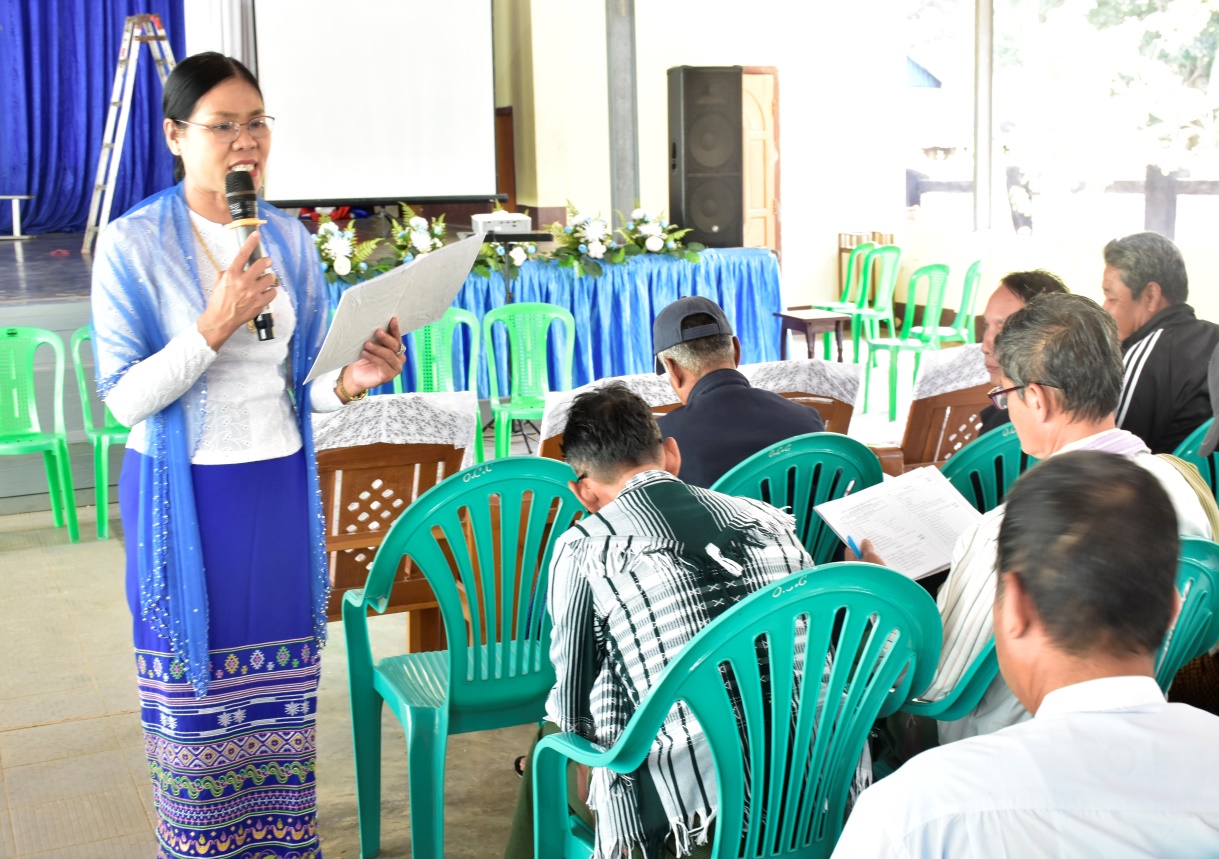 ထို့နောက် ရပ်ရွာအခြေပြု အသက်မွေးဝမ်းကျောင်းပညာလိုအပ်ချက်စစ်တမ်းကို ကောက်ယူခဲ့ရာ ဒေသခံတိုင်းရင်းသား (၇၁) ဦး ဖြေဆိုခဲ့ကြပြီး တက်ရောက်လာကြသူများအား တိုင်းရင်း သားလူမျိုးများ၏အခွင့်အရေးများကာကွယ်စောင့်ရှောက်သည့် ဥပဒေ၊ နည်းဥပဒေစာအုပ်များ၊ လက်ကမ်းစာစောင်များနှင့် အမှတ်တရလက် ဆောင်ပစ္စည်းများ ပေးအပ်ခဲ့ပြီးနောက် အခမ်းအနားကို ရုတ်သိမ်းခဲ့ပါသည်။ အခမ်းအနားသို့ မြို့နယ်ကရင်စာပေနှင့် ယဉ်ကျေးမှုကော်မတီဝင် များ၊ ဖိတ်ကြားထားသော ဧည့်သည်တော်များ တက်ရောက်ခဲ့ကြပါသည်။