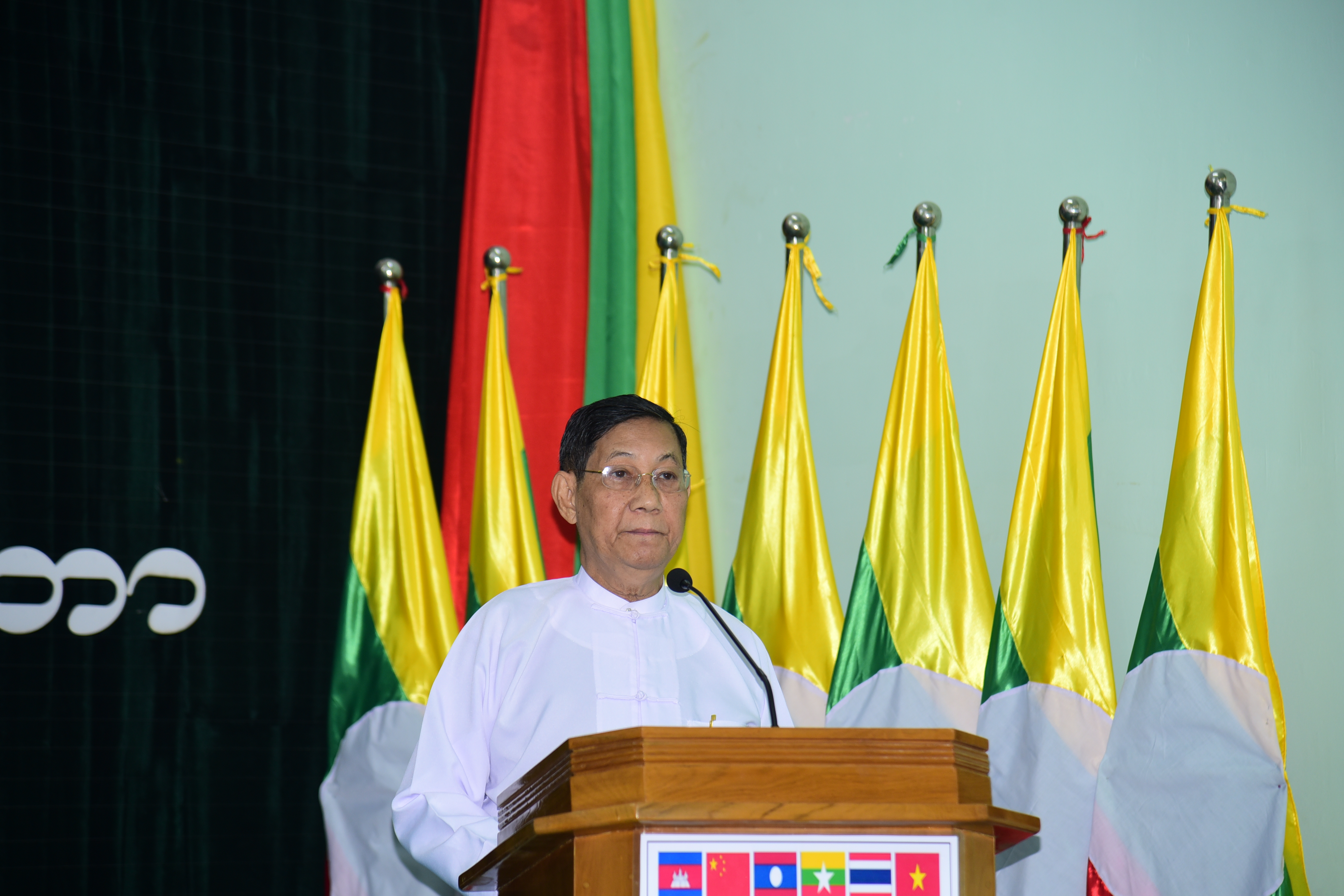 နိုင်ငံတော်အနေဖြင့် တိုင်းရင်းသားပြည်သူများအားလုံး၏ ဖွံ့ဖြိုးတိုးတက်ရေး၊ တိုင်းပြည်သာယာဝပြောရေး၊ စားရေရိက္ခာဖူလုံရေးနှင့် ဘက်စုံဖွံ့ဖြိုးတိုးတက်ရေးအတွက် ဦးတည်ဆောင်ရွက်လျက်ရှိပါကြောင်း၊ တိုင်းရင်းသားများ၏ စကား၊ စာပေ၊ အနုပညာနှင့် ယဉ်ကျေးမှု၊ ရိုးရာဓလေ့ထုံးတမ်း၊ အမျိုးသားရေးစရိုက်လက္ခဏာနှင့် သမိုင်းအမွေအနှစ်တို့ကို ထိန်းသိမ်းစောင့်ရှောက်ရန်၊ ဖွံ့ဖြိုးတိုးတက်စေရန်နှင့် မြှင့်တင်နိုင်ရန် ဆောင်ရွက်ပေးလျက် ရှိပါကြောင်း၊ တိုင်းရင်းသားများ၏ အသိပညာ၊ အတတ်ပညာများ၊ အသက်မွေးဝမ်းကျောင်း ပညာများ မြင့်မားတိုးတက်လာမှသာ နိုင်ငံတော်က ဦးတည်ဆောင်ရွက်လျက်ရှိသော MSME စက်မှုလုပ်ငန်းများ အားပေးဆောင်ရွက်ခြင်းကဏ္ဍကိုလည်း ပိုမိုမြှင့်တင်နိုင်မှာဖြစ်မည်ကို ပြောကြားလိုပါကြောင်း၊ ထို့အပြင် တိုင်းရင်းသားပြည်သူတစ်ရပ်လုံးနှင့် အကျုံးဝင်သော စိုက်ပျိုးရေးကိုအခြေခံသည့် ကုန်ထုတ်လုပ်ငန်းများကို မြှင့်တင်၍ နိုင်ငံ့စီးပွားမြင့်မားရေးနှင့် ပြည်သူတစ်ရပ်လုံး၏ လူမှုစီးပွားဘဝ မြင့်မားစေရေးတို့ကို လုပ်ငန်းစဉ်ချမှတ်၍ ဆောင်ရွက် လျက်ရှိကြောင်းကိုလည်း ပြောကြားလိုပါကြောင်း၊ နိဂုံးချုပ်အနေဖြင့် မဲခေါင်-လန်ချန်း ပူးပေါင်းဆောင်ရွက်မှု အထူးရန်ပုံငွေနှင့် နိုင်ငံတော်၏ဘဏ္ဍာရန်ပုံငွေဖြင့် တည်ဆောက် ပြီးစီးခဲ့သည့် တိုင်းရင်းသားရေးရာနှင့် သက်မွေးပညာသင်တန်းစင်တာတွင် ဆောင်ရွက်မည့် လုပ်ငန်းများ၏ ရည်ရွယ်ချက်ပါအတိုင်း အကောင်အထည်ဖော်ဆောင်ရွက်ရန်လိုအပ် ပါကြောင်း၊ တိုင်းရင်းသားလူမျိုးအချင်းချင်း စည်းလုံးညီညွတ်ရေး၊ ချစ်ကြည်ရင်းနှီးရေးတို့အပြင် လူမှုစီးပွားဘဝမြှင့်တင်ရေးအတွက် အထောက်အကူပြုသည့် အသက်မွေးဝမ်းကျောင်း ပညာ ရပ်များ၊ တိုင်းရင်းသားရိုးရာလက်မှုအတတ်ပညာများကို စနစ်တကျ မျှဝေသင်ယူ တတ်မြောက်အောင်ဆောင်ရွက်ကြရန် တိုက်တွန်းပြောကြားလိုပါကြောင်း၊ တိုင်းရင်းသားများ၏ ဖွံ့ဖြိုးတိုးတက်ရေးသည် နိုင်ငံတော်၏ ဖွံ့ဖြိုးတိုးတက်ရေးပင်ဖြစ်သည့်အတွက် သက်ဆိုင်ရာ တာဝန်ရှိသူများအားလုံးနှင့် တိုင်းရင်းသားပြည်သူများအားလုံးက ပူးပေါင်းဆောင်ရွက်ကြရန်လိုအပ်ပါကြောင်း ပြောကြားခဲ့ပါသည်။