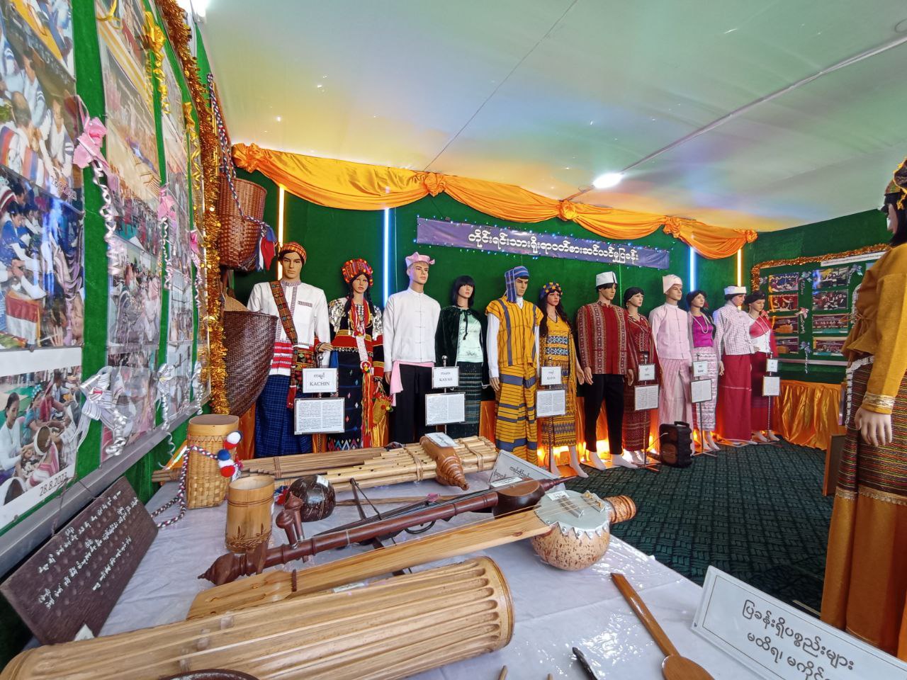 တိုင်းရင်းသားလူမျိုးများရေးရာဝန်ကြီးဌာနပြခန်းတွင် ကချင်၊ ကယား၊ ကရင်၊ ချင်း၊ ဗမာ၊ မွန်၊ ရခိုင်၊ ရှမ်း တိုင်းရင်းသားမျိုးနွယ်စုကြီး(၈)မျိုး၏ ရိုးရာဝတ်စား ဆင်ယင်ထုံးဖွဲ့မှုများ၊ ကရင်၊ ဗမာ၊ ချင်း၊ ရခိုင်တိုင်းရင်းသားတို့၏ရိုးရာအိမ်ပုံစံငယ်များ၊ တိုင်းရင်းသားများ၏ နေ့ထူးနေ့မြတ်အခမ်းအနား မှတ်တမ်းဓါတ်ပုံများနှင့် တိုင်းရင်းသားဘာသာစာပေသင်မွမ်းမံသင်တန်း ဖွင့်လှစ်သင်ကြားမှုမှတ်တမ်း ဓါတ်ပုံများ၊ ဝန်ကြီးဌာန၏ မျှော်မှန်းချက်(Vision) နှင့် ဦးစီးဌာန၏ဆောင်ပုဒ်များ၊ မြန်မာနိုင်ငံရှိ တိုင်းရင်းသားမျိုးနွယ်စု (၁၃၅) မျိုးစာရင်းများ၊ တိုင်းဒေသကြီး နှင့် ပြည်နယ်အတွင်း တိုင်းရင်းသား ဘာသာစာပေသင်ကြားခွင့်ရရှိသည့် စာပေ(၇၂)မျိုးစာရင်းများ၊ မြန်မာနိုင်ငံရှိ တိုင်းရင်းသားလူမျိုး များနေထိုင်ရာပြမြေပုံ၊ ကရင်ရိုးရာဖားစည်နှင့် အခြားရိုးရာတူရိယာအသုံးအဆောင်ပစ္စည်းများ၊ ရခိုင်ရိုးရာစည်တော်နှင့် အခြားရိုးရာတူရိယာအသုံးအဆောင်ပစ္စည်းများ၊ ချင်းတိုင်းရင်းသား ရိုးရာ တူရိယာအသုံးအဆောင်ပစ္စည်းများအား ခင်းကျင်းပြသဆောင်ရွက်ခဲ့ပါသည်။