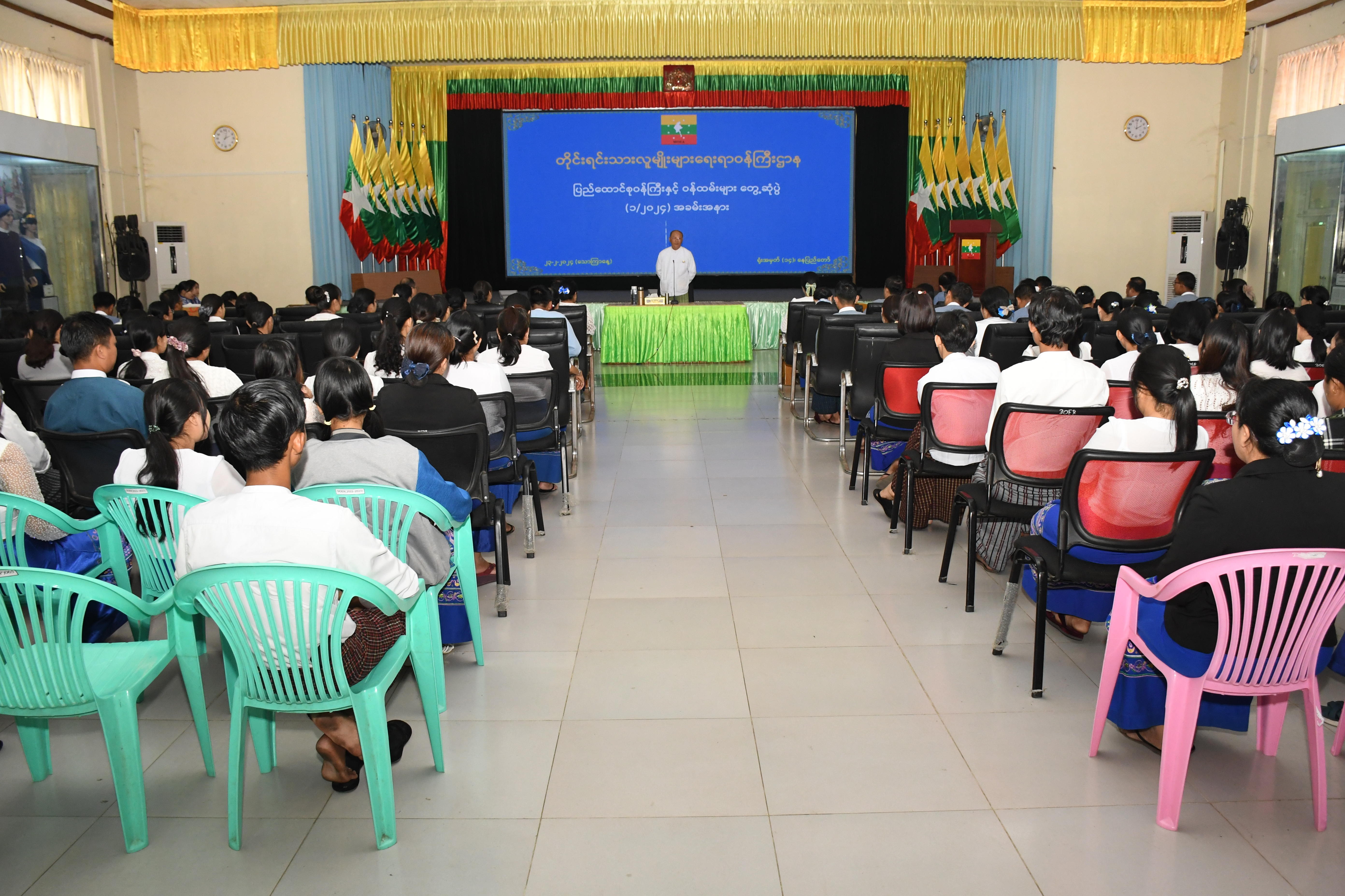 ထို့နောက် ဒုတိယဝန်ကြီး ဦးဇော်အေးမောင်က ဝန်ထမ်းများအနေဖြင့် လုပ်ငန်းများ ဆောင်ရွက်ရာတွင် ပိုမိုအောင်မြင်စေရန် စိတ်ဓာတ်ခွန်အား ပေးလိုပါကြောင်း၊ ယနေ့ကမ္ဘာပေါ် တွင် နိုင်ငံများ၏ အမျိုးသားအကျိုးစီးပွားကြောင့် ဖြစ်ပေါ်နေသော ကမ္ဘာ့နိုင်ငံရေး အခြေအနေများ နှင့် စီးပွားရေးအခြေအနေများကို ရှင်းလင်း ပြောကြားပြီး အရာရာအပေါ်တွင် အကောင်းမြင်သည့် စိတ်ထားရှိရန်လိုအပ်ပါကြောင်း၊ ဝန်ထမ်းများအားလုံး စည်းလုံးညီညွတ်ရမည်ဖြစ်ပြီး ပေးအပ် သည့် တာဝန်များကို ကျေပွန်စွာ ထမ်းဆောင်ရမည်ဖြစ်ပါကြောင်း၊ လုပ်ငန်းတာဝန်များ ထမ်းဆောင်ရာတွင် သဒ္ဓါ၊ သီလ၊ သတိ၊ သမာဓိ၊ ဝီရိယ၊ ပညာတို့ကို ကောင်းမွန်စွာ ဖြည့်ဆည်းကျင့်ကြံ ဆောင်ရွက်ကြရမည်ဖြစ်ပါကြောင်း၊ မိမိတို့ဌာနနှင့် နိုင်ငံတော်အပေါ် သစ္စာရှိပြီး နိုင်ငံ့ဝန်ထမ်း သစ္စာအဓိဋ္ဌာန် (၆) ချက်တို့ကို စောင့်ထိန်းလိုက်နာရန်နှင့် ဝန်ကြီးဌာန၏ မျှော်မှန်းချက်၊ ရည်မှန်းချက်၊ လုပ်ငန်းတာဝန်များကို စစ်မှန်သော ပြည်ထောင်စုစိတ်ဓာတ်အခြေခံလျက် နိုင်ငံ့အကျိုးကို ဝိုင်းဝန်းသယ်ပိုးကြပါရန် တိုက်တွန်းပြောကြားပါသည်။