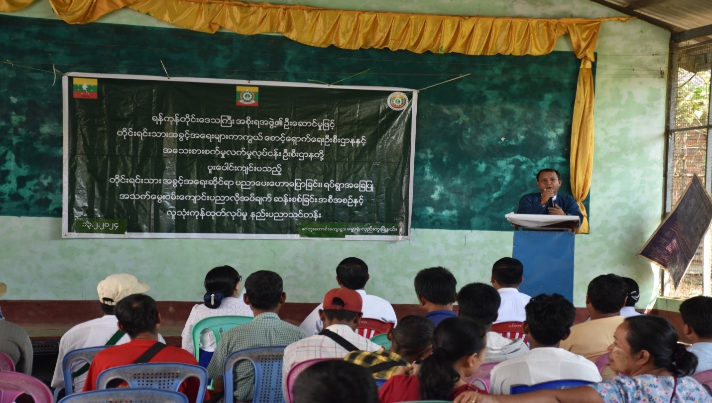တိုင်းရင်းသားအခွင့်အရေးဆိုင်ရာ အသိပညာပေးဟောပြောခြင်းနှင့် ရပ်ရွာအခြေပြု အသက်မွေးဝမ်းကျောင်းပညာ လိုအပ်ချက်တို့ကို ဆန်းစစ်စီမံခြင်းအစီအစဉ်နှင့် လူသုံးကုန် ထုတ်လုပ်မှုနည်းပညာသင်တန်းဖွင့်ပွဲအခမ်းအနားကို လှည်းကူးမြို့နယ်တွင် ကျင်းပ လှည်းကူး၊ ဖေဖော်ဝါရီလ ၁၃ ရက်