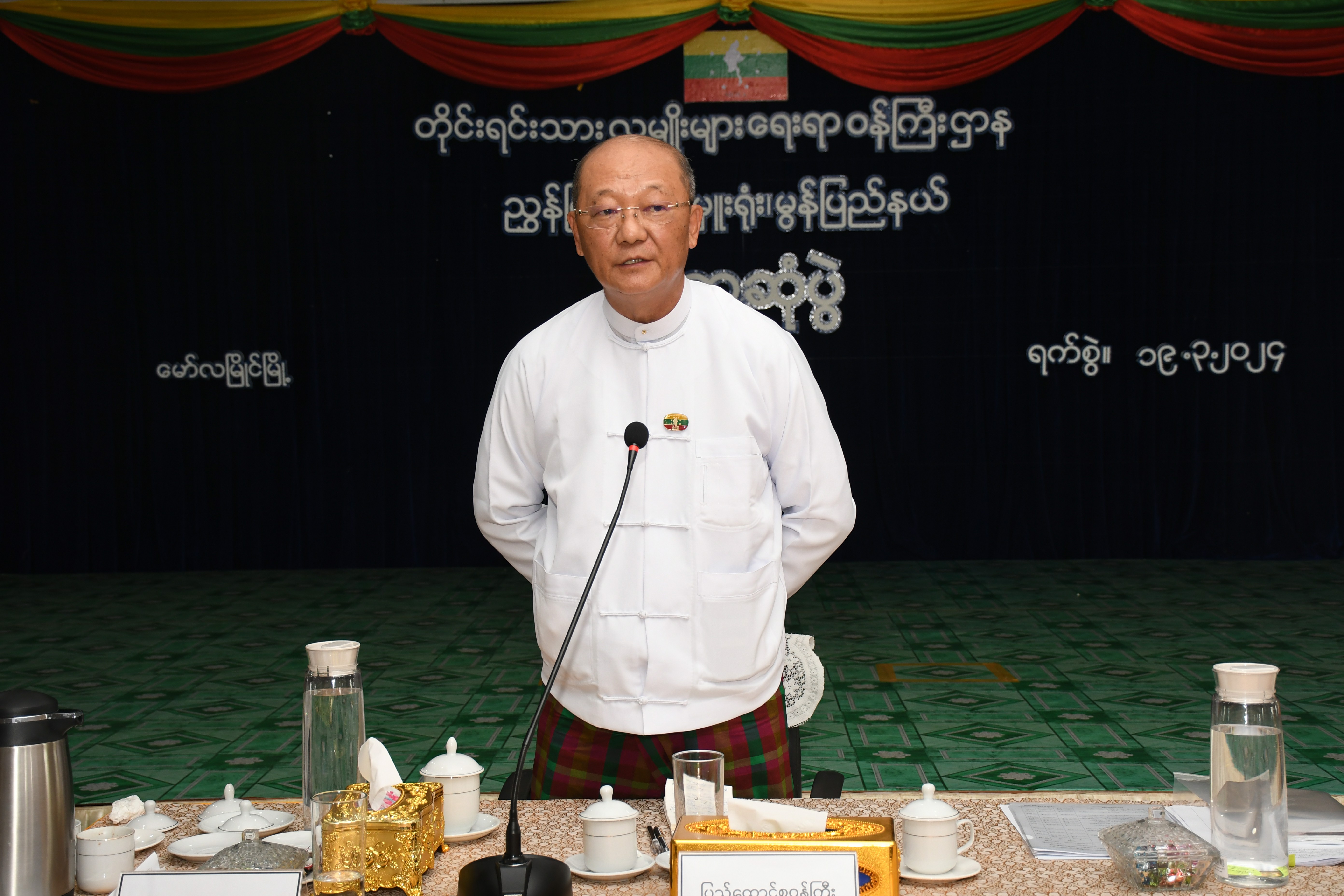ထို့နောက် မွန်ပြည်နယ်အစိုးရအဖွဲ့ဝင် တိုင်းရင်းသားရေးရာဝန်ကြီး ဦးအခင်မောင်ဦးက မွန်ပြည်နယ်အတွင်း တိုင်းရင်းသားရေးရာကိစ္စရပ်များနှင့် တိုဒေသအတွင်း ဖွံ့ဖြိုးရေး ဆိုင်ရာကိစ္စရပ်များ ဆောင်ရွက်နေမှုအခြေအနေများကို ရှင်းလင်းတင်ပြခဲ့ပါသည်။