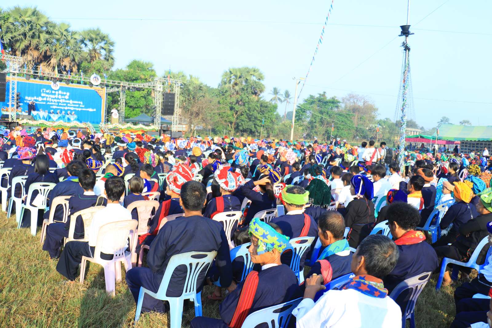 (၇၇)ကြိမ်မြောက် ပအိုဝ်းအမျိုးသားနေ့ အခမ်းအနားကို (၂၄.၃.၂၀၂၄)ရက်နေ့တွင် ကရင်ပြည်နယ် ဘားအံမြို့နယ်၊ ပအိုဝ်းကော့ကျိုက်စံပြကျေးရွာ၌ ကျင်းပပြုလုပ်ခဲ့ရာ ကရင်ပြည်နယ်ဝန်ကြီးချုပ်၊ ကရင်ပြည်နယ်အစိုးရအဖွဲ့ဝင်ဝန်ကြီးများ၊ တိုင်းရင်းသားစာပေနှင့် ယဉ်ကျေးမှုဦးစီးဌာန၊ ညွှန်ကြားရေးမှူးရုံး(ကရင်ပြည်နယ်)မှ တာဝန်ခံအရာရှိ၊ ကရင်ပြည်နယ် စာပေနှင့်ယဉ်ကျေးမှုအသင်းအဖွဲ့များမှ တာဝန်ရှိပုဂ္ဂိုလ်များ၊ ဌာနဆိုင်ရာများမှ တာဝန်ရှိပုဂ္ဂိုလ် များ၊ ဖိတ်ကြားထားသော ဧည့်သည်တော်များနှင့် ကရင်ပြည်နယ်အတွင်းရှိ ပအိုဝ်းတိုင်းရင်းသားများ တက်ရောက်ခဲ့ပါသည်။