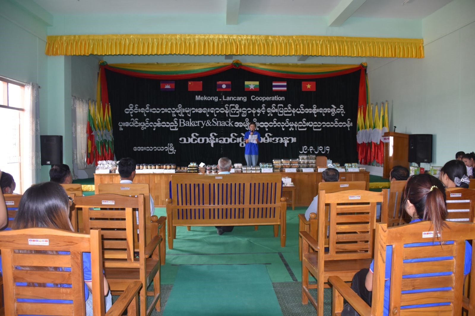 အခမ်းအနားတွင် ရှမ်းပြည်နယ်အစိုးရအဖွဲ့ဝင်၊ တိုင်းရင်းသားရေးရာဝန်ကြီး ဦးအောင်ကြည်ဝင်းက တိုင်းရင်းသားလူမျိုးရေးရာဝန်ကြီးဌာနသည် တိုင်းရင်းသားမျိုးနွယ်စုများ၏ လူမှုဘဝဖွံ့ဖြိုးတိုးတက်ရေးကို စဉ်ဆက်မပြတ်ဆောင်ရွက်ပေးရန် ရည်ရွယ်၍ ဤအဆောက်အဦ ကို ဆောက်လုပ်ခဲ့ပါကြောင်း၊ ဤသင်တန်းစင်တာတွင်ဖွင့်လှစ်မည့် သင်တန်းများကိုလည်း ပြည်ထောင်စုနှင့် ရှမ်းပြည်နယ်အစိုးရအဖွဲ့မှရရှိသည့် ရန်ပုံငွေများပေါ်မူတည်၍ ဖွင့်လှစ်ပေးနိုင်ရန် စီစဉ်ဆောင်ရွက်လျက်ရှိပါကြောင်း၊ ပထမအကြိမ်မော်တော်ဆိုင်ကယ်စက်ပြင်သင်တန်း ဖွင့်လှစ် ပေးခဲ့ပြီး ယခုဒုတိယအကြိမ်ထပ်မံဖွင့်လှစ်ပေးလျက်ရှိပါကြောင်း၊ အခြေခံကွန်ပျူတာသင်တန်း တစ်ကြိမ်လည်းဖွင့်လှစ်ပေးခဲ့ပြီးဖြစ်ပါကြောင်း၊ ယခု Bakery & Snack အမျိုးမျိုးထုတ်လုပ်မှု နည်းပညာသင်တန်းသည်လည်း သင်တန်းသား၊ သင်တန်းသူများအတွက် အကျိုးစီးပွားဖြစ်ထွန်း စေမည့် အသေးစား၊ အလတ်စားကုန်ထုပ်လုပ်မှုလုပ်ငန်း ဆောင်ရွက်နိုင်ရန်ရည်ရွယ်၍ ဖွင့်လှစ် ပေးခြင်းဖြစ်ပါကြောင်း၊ သင်တန်းကာလသည် ရက်သတ္တ(၁)ပါတ် ဖြစ်သော်လည်း မုန့်ပြုလုပ်နည်း (၂၁) မျိုးသင်ကြားပေးနိုင်သည့်အပြင် တက်ရောက်လာသည့်သင်တန်းသားသူများသည်လည်း ဉာဏ်ကွန့်ပြီးတီထွင်ကြံဆ ကြိုးစားသင်ယူကြသည်ကိုတွေ့ရပါကြောင်း၊ ရှမ်းပြည်နယ်နှင့် ကယားပြည်နယ်အသေးစားစက်မှုလက်မှုလုပ်ငန်းဦးစီးဌာနတို့မှ တတ်ကျွမ်းသည့် ပညာရှင်များ လာရောက်သင်ကြားပေးသည့်အတွက် ကျေးဇူးတင်ပါကြောင်း၊ တိုင်းရင်းသားများအတွက် အကျိုး ပြုမည့်အခြားသင်တန်းများကိုလည်း သက်ဆိုင်ရာဌာနများနှင့် ပူးပေါင်းဖွင့်လှစ်ဆောင်ရွက် သွား မည်ဖြစ်ပါကြောင်း၊ နောင်တွင်ရပ်ဝေးမှ သင်တန်းသားများပါ ပါဝင်တက်ရောက်နိုင်ရန် ထပ်မံ ကြိုးစားသွားမည်ဖြစ်ကြောင်းနှင့် သင်တန်းသား၊ သင်တန်းသူများက သင်တန်းမှ သင်ကြားပေး သည့်မုန့်အမျိုးအစားများအားလုံးကို စိတ်ပါဝင်စားစွာ လေ့လာသင်ယူနေသည်ကို တွေ့ရသည့် အတွက် များစွာ ကျေးဇူးတင်ပါကြောင်း အမှာစကားပြောကြားခဲ့ပါသည်။