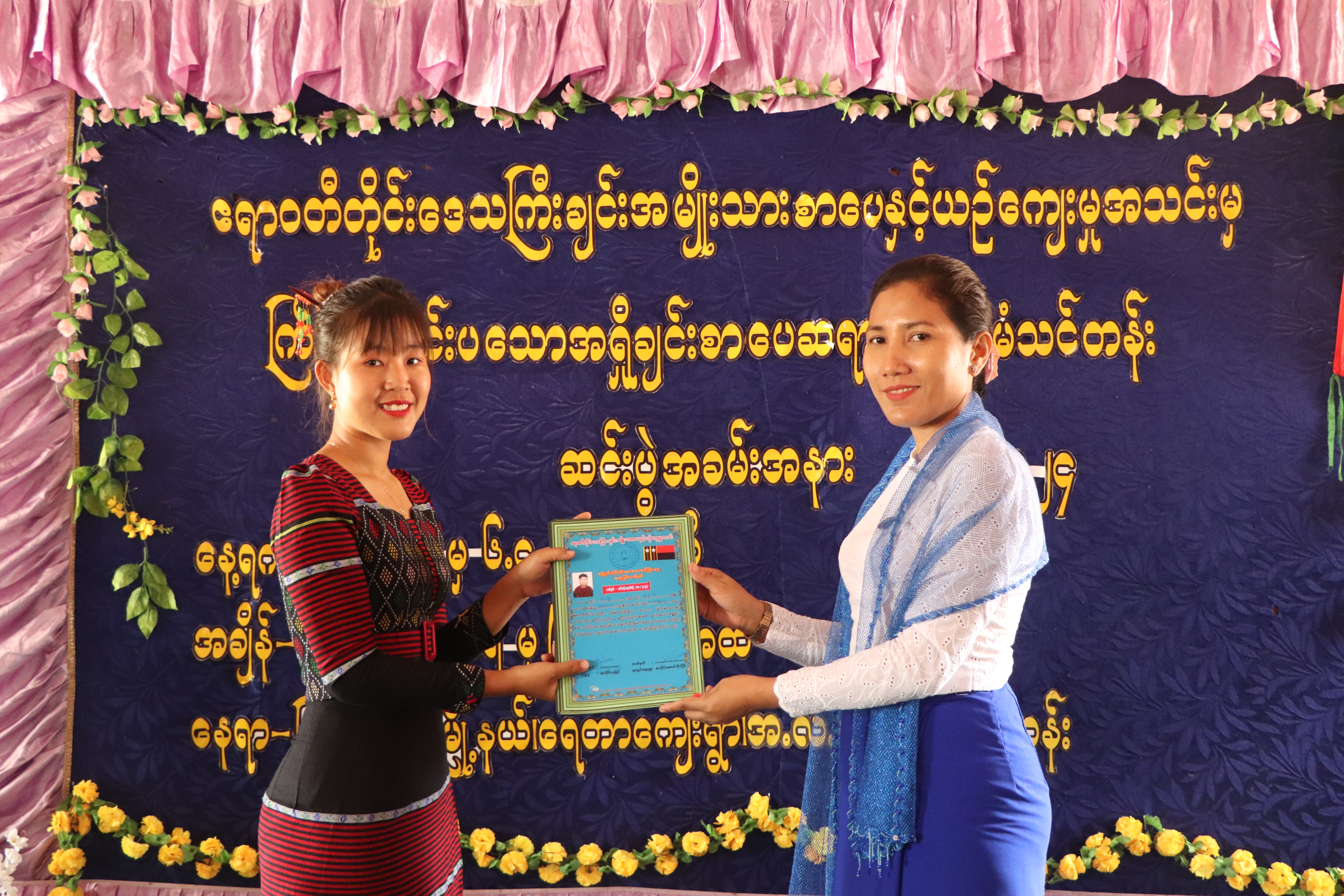ဧရာဝတီတိုင်းဒေသကြီး၊ တိုင်းရင်းသားစာပေနှင့်ယဉ်ကျေးမှုဦးစီးဌာန၊ ညွှန်ကြားရေးမှူးရုံး အနေဖြင့် ချင်းအမျိုးသားစာပေနှင့်ယဉ်ကျေးမှုအသင်းနှင့် ပူးပေါင်း၍ တိုင်းဒေသကြီးအစိုးရအဖွဲ့၏ ခွင့်ပြုရန်ပုံငွေဖြင့် နွေရာသီ အရှိုချင်းစာပေဆရာဖြစ်မွမ်းမံသင်တန်း အမှတ်စဉ် (၁/၂၀၂၄) သင်တန်း ဆင်းပွဲအခမ်းအနားကို ၂၀၂၄ ခုနှစ်၊ ဧပြီလ ၆ ရက်နေ့တွင် မြန်အောင်မြို့နယ်၊ ရေတာကျေးရွာ၊ အ.လ.က-ဘန့်ဘွေးကုန်းကျောင်း၌ ကျင်းပပြုလုပ်ခဲ့ရာ အခမ်းအနားသို့ တိုင်းရင်းသားစာပေနှင့်ယဉ်ကျေးမှုဦးစီး ဌာနမှ တာဝန်ခံအရာရှိနှင့်အတူ အမှုထမ်းများ၊ သက်ဆိုင်ရ ဌာနများမှ တာဝန်ရှိသူများ၊ ချင်းအမျိုးသား စာပေနှင့်ယဉ်ကျေးမှုအသင်းဝင်များ၊ ချင်းတိုင်းရင်းသားဘာသာစာပေသင် TA/LT ဆရာ၊ ဆရာမ များနှင့် ဖိတ်ကြားထားသောဧည့်သည်တော်များ တက်ရောက်ခဲ့ကြပါသည်။
