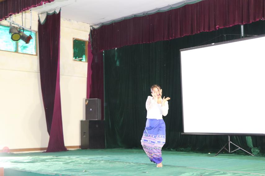၎င်းနောက် အခမ်းအနားတွင် တိုင်းရင်းသားစာပေနှင့်ယဉ်ကျေးမှုဦးစီးဌာန (ရုံးချုပ်)မှ အက နည်းပြများက ရုပ်သေး(မင်းသား၊ မင်းသမီး)အက၊ ဇော်အကနှင့် မှုံရွှေရည်အက စသည့် ရိုးရာအက (၃)ပုဒ်ဖြင့် ဖျော်ဖြေတင်ဆက်ခဲ့ကြပါသည်။