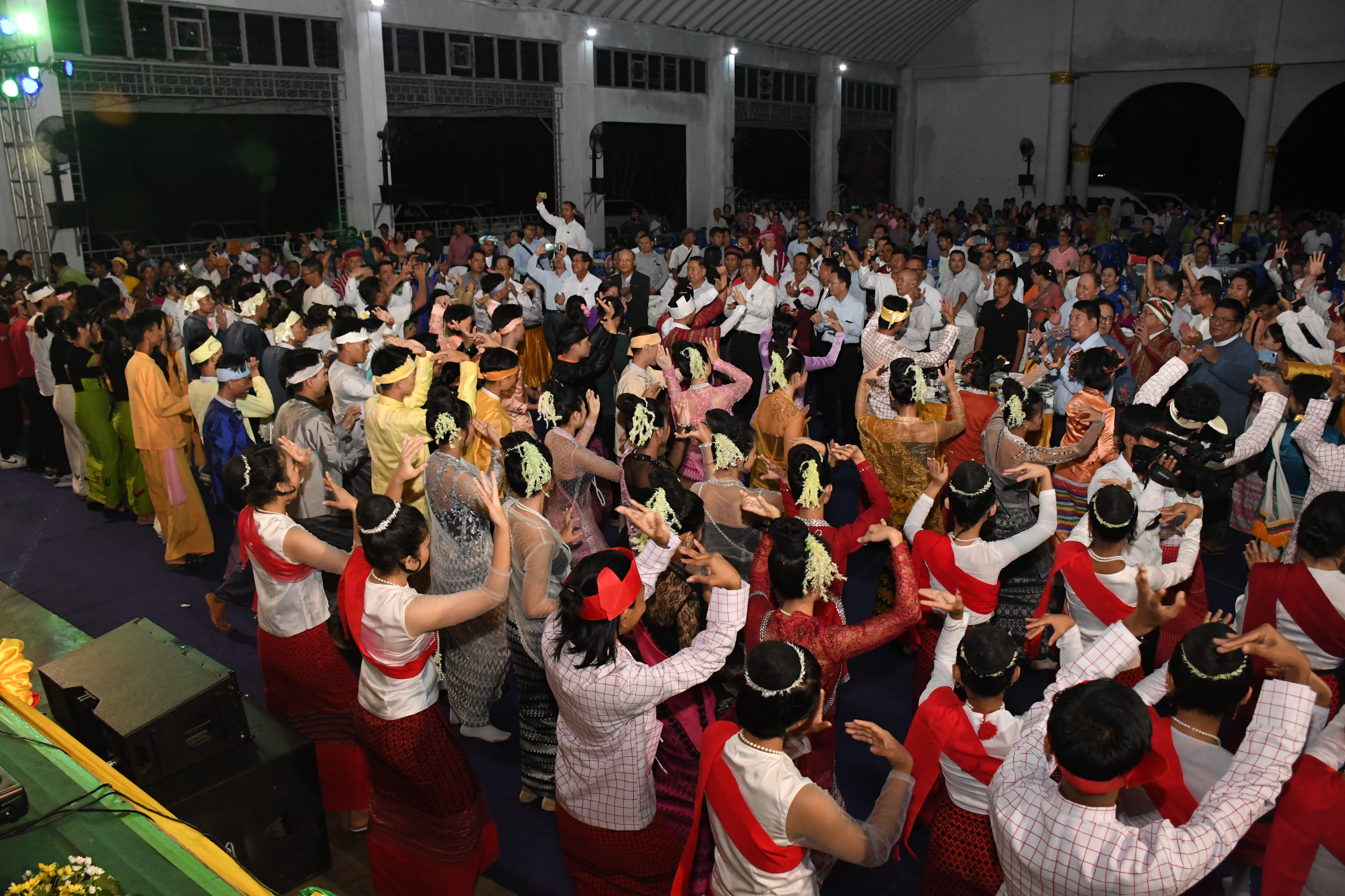 ၎င်းနောက် တိုင်းရင်းသားလူမျိုးများရေးရာဝန်ကြီးဌာန၊ ယဉ်ကျေးမှုအကအဖွဲ့များ၊ ရန်ကုန်တိုင်းဒေသကြီးနှင့် ပဲခူးတိုင်းဒေသကြီးအတွင်းရှိ ကချင်၊ ကယား၊ ကရင်၊ ချင်း၊ ဗမာ၊ မွန်၊ ရခိုင်၊ ရှမ်း တိုင်းရင်းသားရိုးရာယဉ်ကျေးမှုအကအဖွဲ့များ၊ တက္ကသိုလ်၊ ဒီဂရီကောလိပ် များမှ လူငယ်မောင်မယ်အကအဖွဲ့များက တိုင်းရင်းသားရိုးရာယဉ်ကျေးမှု အကများဖြင့် သီဆိုကပြဖျော်ဖြေကြပြီး တိုင်းရင်းသားလူငယ်မောင်မယ်များသည် တွေ့ဆုံပွဲသို့ တက်ရောက် လာကြသည့် ဧည့်သည်တော်ကြီးများနှင့်အတူတကွ “ပြည်ထောင်စုသွေး” သီချင်းဖြင့် စုပေါင်း ယိမ်းအကကို သီဆိုဖျော်ဖြေကြပါသည်။ ထို့နောက် ပြည်ထောင်စုဝန်ကြီး၊ ရန်ကုန်တိုင်း ဒေသကြီးအစိုးရအဖွဲ့ ဝန်ကြီးချုပ်၊ နိုင်ငံတော်စီမံအုပ်ချုပ်ရေးကောင်စီ ဗဟိုအကြံပေးအဖွဲ့ ခေါင်းဆောင်နှင့် အဖွဲ့ဝင်များတို့က တိုင်းရင်းသားရိုးရာယဉ်ကျေးမှုအကအဖွဲ့များအား ဂုဏ်ပြု ချီးမြင့်ငွေများ ပေးအပ်ခဲ့ကြကြောင်း သတင်းရရှိပါသည်။