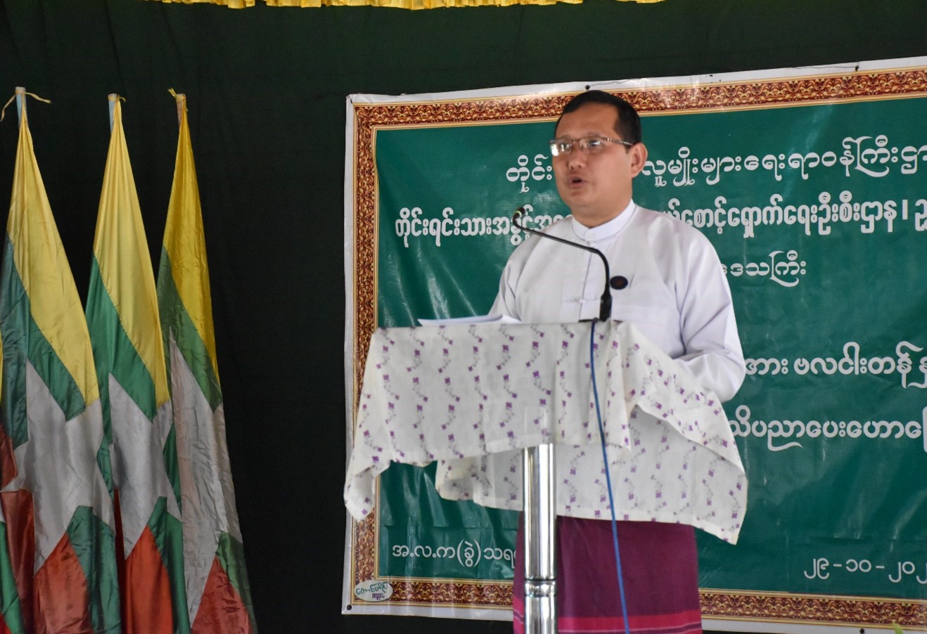 တိုင်းရင်းသားရေးရာဝန်ကြီး ဦးစောလင်းအောင်က ဟောပြောပို့ချပေးသော ဌာနဆိုင်ရာမှ တာဝန်ရှိသူများအား