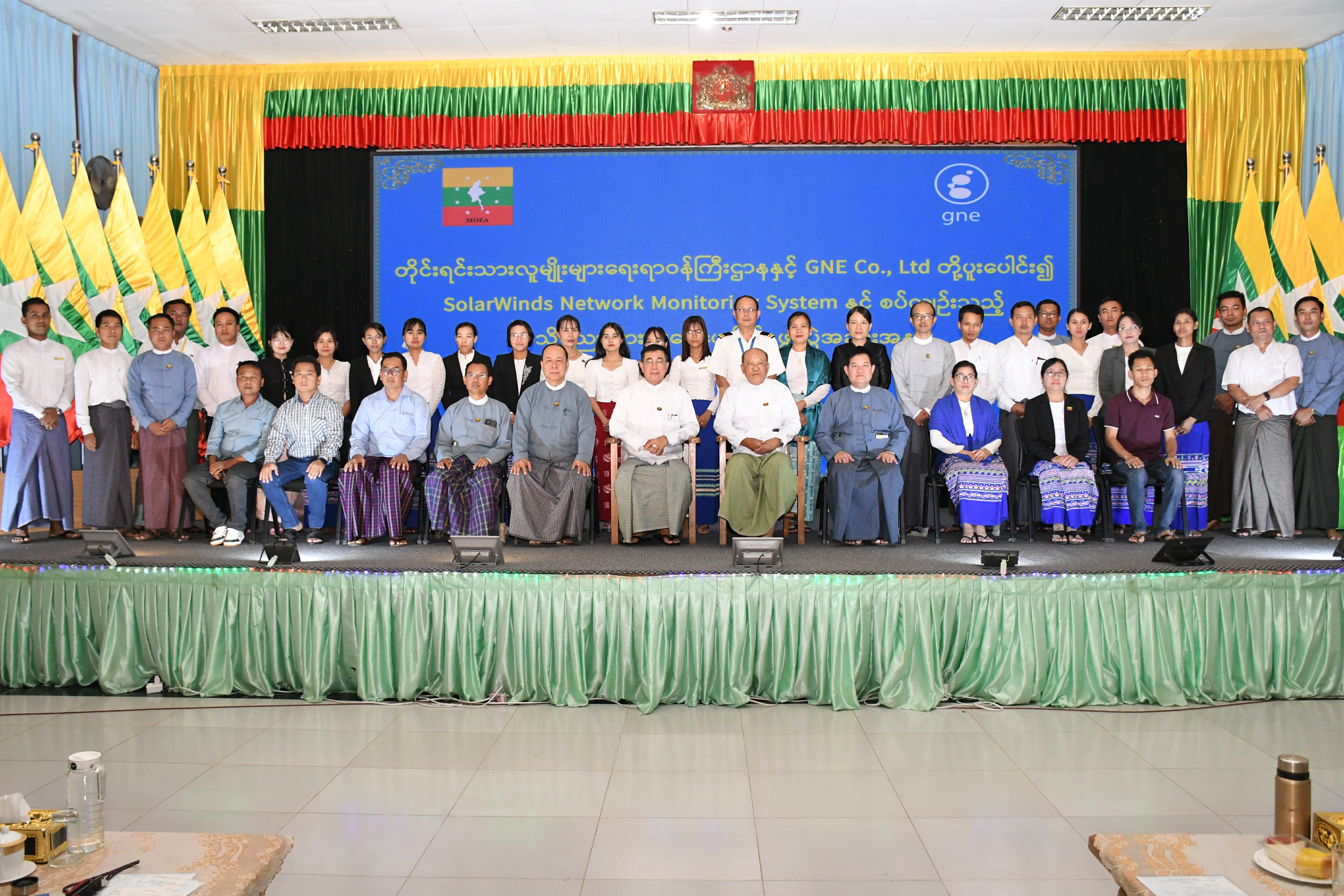 တိုင်းရင်းသားလူမျိုးများရေးရာဝန်ကြီးဌာနနှင့် GNE Co.Ltd တို့ ပူးပေါင်းပြုလုပ်သည့် SolarWinds Network Monitoring System နှင့်စပ်လျဉ်းသည့် အသိပညာများ မျှဝေပေးခြင်းဖွင့်ပွဲ အခမ်းအနားကို ယနေ့မွန်းလွဲပိုင်းတွင် တိုင်းရင်းသားလူမျိုးများရေးရာဝန်ကြီးဌာန၊ အစည်းအဝေး ခန်းမ၌ ကျင်းပပြုလုပ်ရာ ပြည်ထောင်စုဝန်ကြီး Jeng Phang နော်တောင်၊ ဒုတိယဝန်ကြီး ဦးဇော်အေးမောင်၊ အမြဲတမ်းအတွင်းဝန်၊ ညွှန်ကြားရေးမှူးချုပ်၊ ဒုတိယအမြဲတမ်းအတွင်းဝန်၊ ဒုတိယညွှန်ကြားရေးမှူးချုပ်၊ GNE Co.Ltd မှ တာဝန်ရှိသူများ၊ ဆက်စပ်ဝန်ကြီးဌာန(၈)ခုမှ တာဝန်ရှိပုဂ္ဂိုလ်များနှင့် အရာထမ်းများ တက်ရောက်ကြပါသည်။