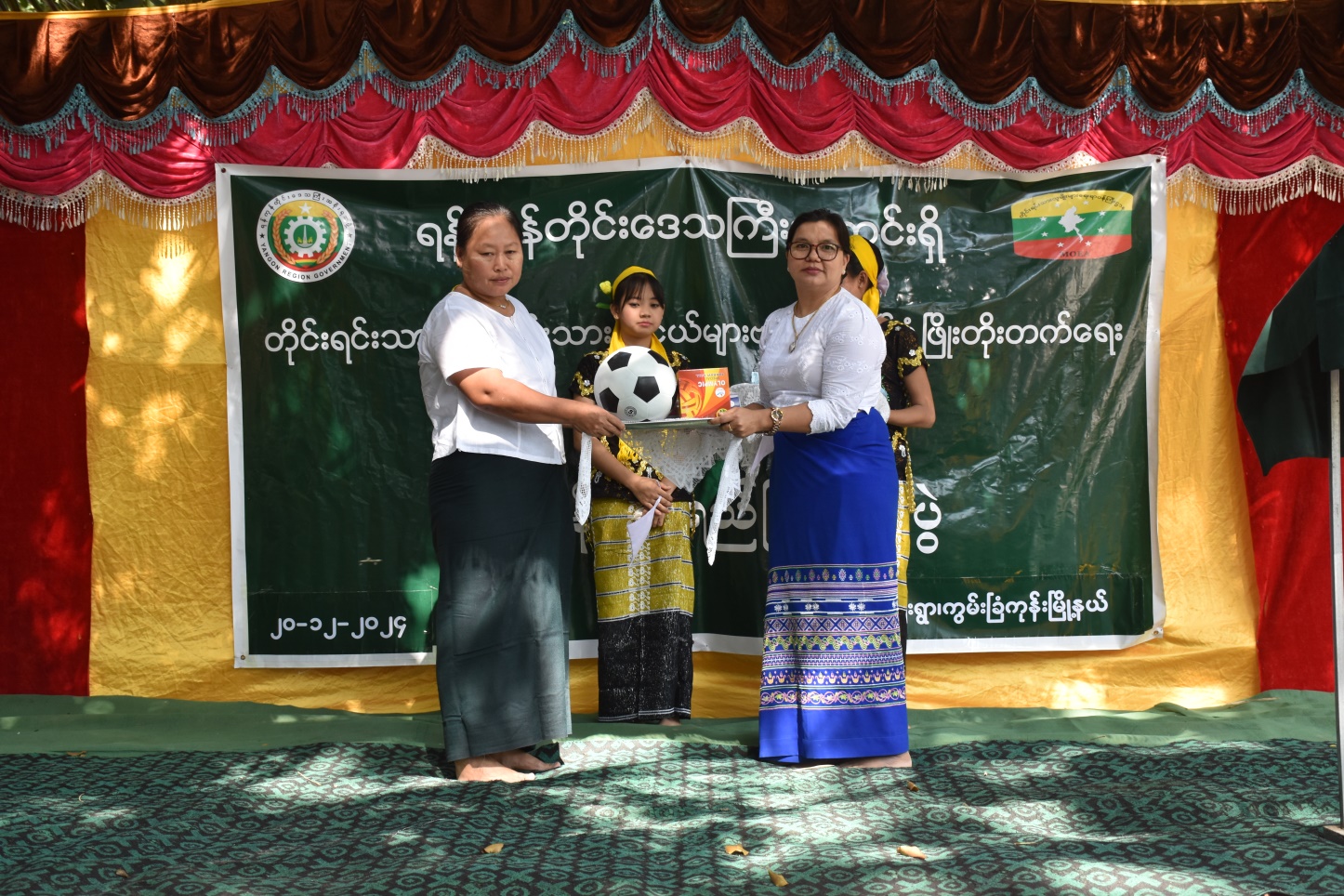 ရန်ကုန်တိုင်းဒေသကြီးအစိုးရအဖွဲ့ ဦးဆောင်မှုဖြင့် တိုင်းရင်းသားအခွင့်အရေးများ ကာကွယ်စောင့်ရှောက်ရေးဦးစီးဌာနမှ ကြီးမှူး၍ ရန်ကုန်တိုင်းဒေသကြီးအတွင်းရှိ တိုင်းရင်းသားကျောင်းသားလူငယ်များ ဗလငါးတန်ဖွံ့ဖြိုးတိုးတက်ရေးအတွက် ထူးချွန် စွမ်းရည် ပြပွဲ၊ ပြိုင်ပွဲ အခမ်းအနားကို (၂၀-၁၂-၂၀၂၄) ရက်နေ့၊ နံနက် (၇:၀၀) နာရီအချိန်တွင် ရန်ကုန်တိုင်းဒေသကြီး၊ ကွမ်းခြံကုန်းမြို့နယ်၊ ဆင်ဒိုးကျေးရွာ၊ မူလတန်းကျောင်း၌ ကျင်းပပြုလုပ်ခဲ့ပါသည်။