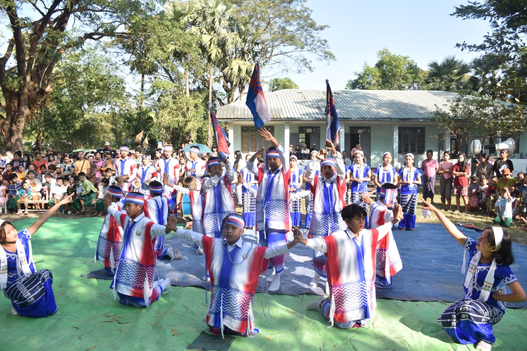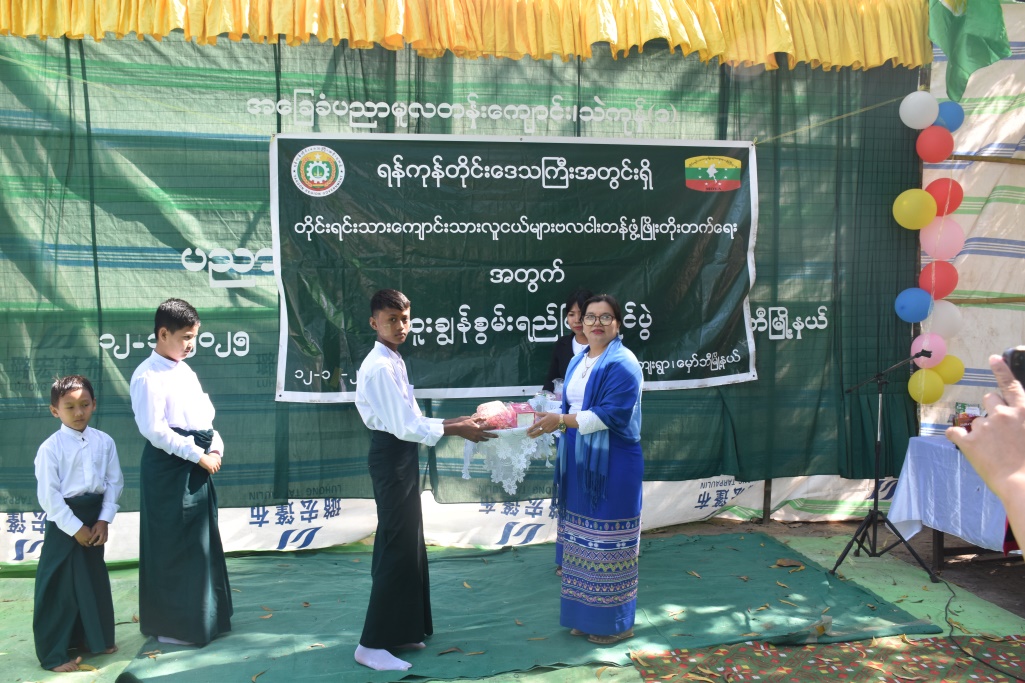 ထို့နောက် ဗလငါးတန်နှင့် ပြည့်စုံသော ပြပွဲပြိုင်ပွဲများဖြစ်သည့် အာလူးကောက်ပြိုင်ပွဲ၊ ဘောလုံးပြိုင်ပွဲ၊ ကဗျာရွတ်ပြိုင်ပွဲ၊ ပန်းချီပြိုင်ပွဲ၊ ဆေးရောင်ချယ်ပြိုင်ပွဲ၊ စက္ကူဖြင့် စုပေါင်းအရုပ် ခေါက်ပြိုင်ပွဲ၊ ဉာဏ်စမ်းမေးခွန်းများဖြေဆိုခြင်း စသည့်ပြိုင်ပွဲများကို ကျင်းပခဲ့ပြီး ဆုရရှိသည့် ကျောင်းသား/ ကျောင်းသူများအား ဆုများ ပေးအပ်ချီးမြှင့်ခဲ့ပါသည်။ ဆက်လက်၍ အားကစားပစ္စည်းများပေးအပ်ခဲ့ရာ ကျောင်းအုပ်ဆရာမကြီး ဒေါ်သန်းသန်းမြင့်က လက်ခံရယူခဲ့ပြီး ကျေးဇူးတင်စကား ပြောကြားခဲ့ပါသည်။ ယင်းနောက် ကျောင်းသား/ ကျောင်းသူလေးများက ဝါးညှပ်အက၊ ဒုံးယိမ်းအကများဖြင့် ကပြဖျော်ဖြေခဲ့ပြီး စုပေါင်းမှတ်တမ်းတင်ဓါတ်ပုံများ ရိုက်ကူးခြင်းတို့ကို ဆောင်ရွက်ခဲ့ကြောင်း သိရှိရပါသည်။
