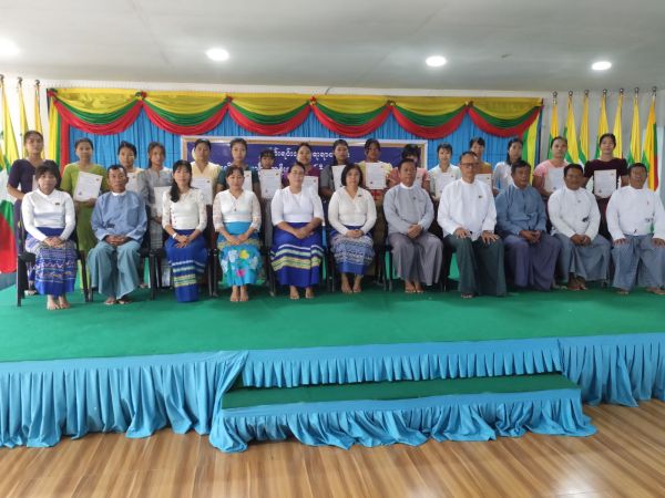 အခမ်းအနားတွင် တိုင်းရင်းသားအခွင့်အရေးများကာကွယ်စောင့်ရှောက်ရေးဦးစီးဌာန၊ ပဲခူးတိုင်းဒေသကြီး ညွှန်ကြားရေးမှူးရုံးမှ လက်ထောက်ညွှန်ကြားရေးမှူး ဒေါ်ဆုသီရိအေးက သင်တန်းဆင်းအမှာစကား ပြောကြားခဲ့ပြီး အလုပ်သမားညွှန်ကြားရေးဦးစီးဌာန၊ ကျွမ်းကျင်မှု လေ့ကျင့်ရေးသင်တန်း ကျောင်း(ပဲခူး)မှ ကျောင်းအုပ်ကြီး ဦးအောင်နိုင်စိုးက သင်တန်း ဖွင့်လှစ်ခြင်းနှင့်ပတ်သက်၍ ရှင်းလင်းပြောကြားခဲ့ပြီးနောက် သင်တန်းသား/သူများအား သင်တန်းဆင်းလက်မှတ်များ ပေးအပ်ခဲ့ပါသည်။