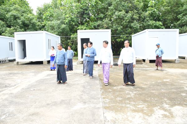 ယင်းနောက် ပြည်ထောင်စုဝန်ကြီး၊ ဒုတိယဝန်ကြီးနှင့် တာဝန်ရှိသူများသည် ဝန်ထမ်းမိသားစုများ ဘာရှာများတွင် အခြေတကျနေထိုင်နေမှုအခြေအနေ၊ Modular House များ ဆောက်လုပ် ပြီးစီးမှုအခြေအနေ၊ လျှပ်စစ်မီးသွယ်တန်းပြီးစီးမှုနှင့် သုံးရေသွယ်တန်းထားရှိမှု အခြေအနေများကို ကြည့်ရှုစစ်ဆေး၍ ဝန်ထမ်းမိသားစုများ အမြန်ဆုံးနေထိုင်နိုင်ရေး စီစဉ်ဆောင်ရွက်ရန် မှာကြားခဲ့ပြီး လိုအပ်သည်များကို ပေါင်းစပ်ညှိနှိုင်းဖြည့်ဆည်း ဆောင်ရွက်ပေးခဲ့ပါသည်။