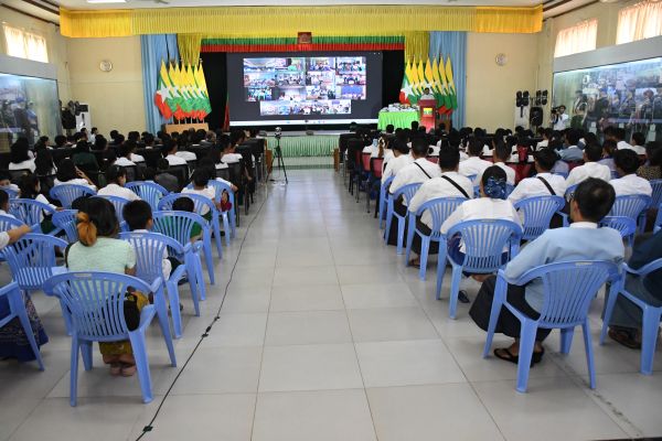 ဆက်လက်၍ ပြည်ထောင်စုဝန်ကြီးက တက္ကသိုလ်တက်ရောက်နေသူများနှင့် အခြေခံပညာ အထက်တန်းအဆင့် တက်ရောက်နေသော ကျောင်းသား၊ ကျောင်းသူများအား ပညာသင် ထောက်ပံ့ငွေနှင့် စာရေးကိရိယာပစ္စည်းများ ပေးအပ်ပါသည်။