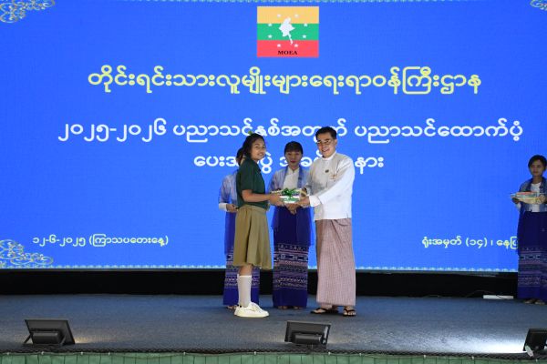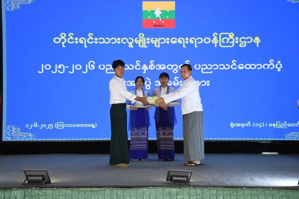 တိုင်းရင်းသားလူမျိုးများရေးရာဝန်ကြီးဌာန ၂၀၂၅-၂၀၂၆ ပညာသင်နှစ်အတွက် ပညာသင်ထောက်ပံ့ကြေးနှင့် စာရေးကိရိယာများ ပေးအပ်ခြင်း အခမ်းအနားကျင်းပ နေပြည်တော် ဇွန် ၁၂