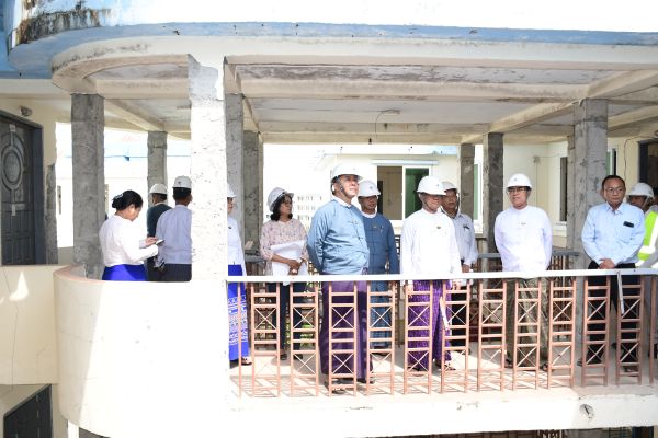 ဦးစွာ Noble Swamm ကုမ္ပဏီမှ တာဝန်ရှိသူများက တိုက် ၂၂၁၆ ပြန်လည် ပြုပြင်ခြင်းလုပ်ငန်းများကို နေပြည်တော်ကောင်စီ၏ ကြီးကြပ်မှုဖြင့် တာဝန်ယူ ဆောင်ရွက် လျက်ရှိပြီး အဆောက်အဦကို ငလျင်ဒဏ်ခံနိုင်မှု ရစ်ချ်တာစကေး ၈ အဆင့်အထိ ခံနိုင်ရည်ရှိရန် Strengthening design ဖြင့် Retrofitting ပြုလုပ်လျက်ရှိကြောင်းနှင့် အဆောက်အဦ ပြန်လည်ပြုပြင်ဆောင်ရွက်နေမှု အခြေအနေများအား ရှင်းလင်းတင်ပြကြ ပါသည်။ ထို့နောက် ပြည်ထောင်စုဝန်ကြီးနှင့်အဖွဲ့သည် အဆိုပါ အဆောက်အဦ ပြင်ဆင် ဆောင်ရွက်လျက်ရှိသည့် ဆောက်လုပ်ရေးလုပ်ငန်းများအား ကြည့်ရှု့စစ်ဆေးပြီး ပြည်ထောင်စု ဝန်ကြီးက လုပ်ငန်းများ သတ်မှတ်စံချိန်စံညွှန်းနှင့်အညီ ဆောလျင်စွာပြီးစီးရေး၊ ဝန်ထမ်းများ ပြန်လည်နေထိုင်နိုင်ရေးနှင့် စပ်လျဉ်း၍ နိုင်ငံတော်သမ္မတကြီး၏ လမ်းညွှန်ချက်ဖြစ်သည့်အတွက် စေတနာထား ဆောင်ရွက်ရေး လိုအပ်သည်များကို လမ်းညွှန်မှာကြားခဲ့ပါသည်။