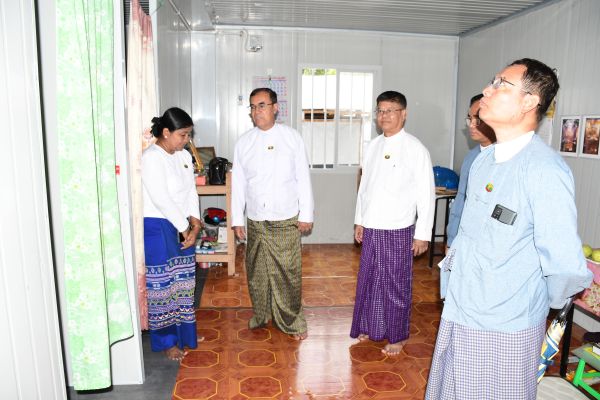 ဆက်လက်၍ ပြည်ထောင်စုဝန်ကြီးနှင့်အဖွဲ့သည် တိုင်းရင်းသားလူမျိုးများရေးရာ ဝန်ကြီးဌာန၊ ရုံးမြေဧရိယာအတွင်း၌ ဆောက်လုပ်ထားသော ငလျင်ဒဏ်သင့် ဝန်ထမ်းများ ယာယီနေထိုင်ရာ Container House များတွင် ဝန်ထမ်းများမိသားစုအလိုက် နေအိမ်နေထိုင်မှု အခြေအနေများ ကြည့်ရှုစစ်ဆေးပြီး ဝန်ထမ်းမိသားစုများအနေဖြင့် သန့်ရှင်းသပ်ရပ်စွာ နေထိုင်ကြစေရေး မှာကြားပြီး အားပေးစကား ပြောကြားကာ လိုအပ်သည်များကို ဖြည့်ဆည်း ဆောင်ရွက် ပေးခဲ့ကြောင်း သိရှိရပါသည်။
