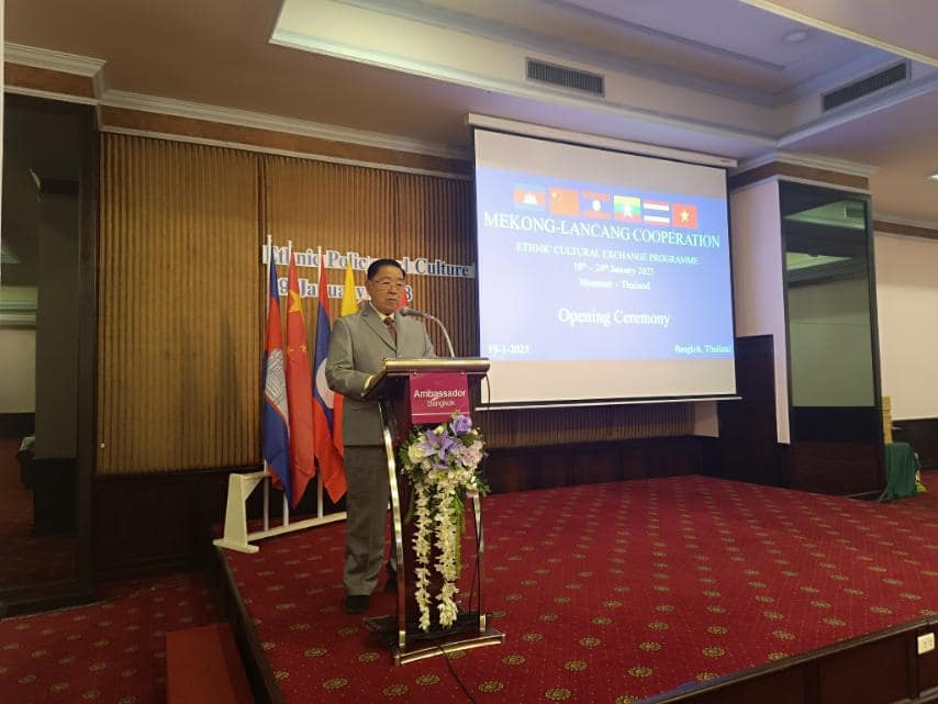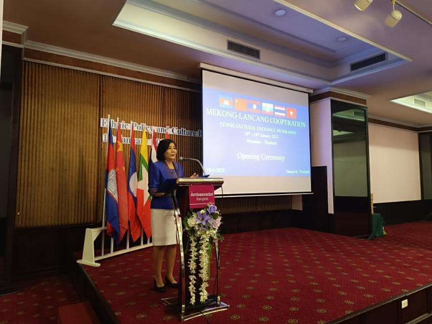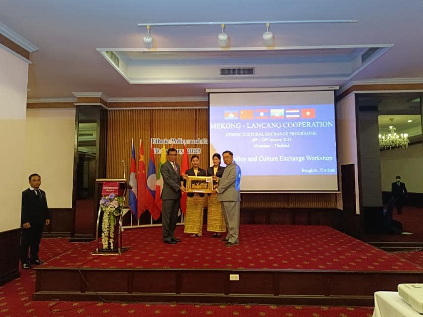 မဲခေါင်-လန်ချန်း ပူးပေါင်းဆောင်ရွက်မှုအထူးရန်ပုံငွေ(၂၀၂၀)ဖြင့် တိုင်းရင်းသားရေးရာ ယဉ်ကျေးမှုဖလှယ်ရေးအစီအစဉ်အရ တိုင်းရင်းသားရေးရာ မူဝါဒနှင့် ယဉ်ကျေးမှုဖလှယ်ရေး ဆွေးနွေးပွဲ ဖွင့်ပွဲအခမ်းအနားကို ယနေ့နံနက်ပိုင်း၌ ထိုင်းနိုင်ငံ၊ ဘန်ကောက်မြို့၊ Ambassador Hotel တွင် ကျင်းပပြုလုပ်ရာ တိုင်းရင်းသားလူမျိုးများရေးရာဝန်ကြီးဌာန၊ ပြည်ထောင်စု ဝန်ကြီး ဦးစောထွန်းအောင်မြင့်၊ ကရင်ပြည်နယ်အစိုးရအဖွဲ့ဝင် တိုင်းရင်းသားရေးရာဝန်ကြီး ဦးစန်းကို၊ တနင်္သာရီတိုင်းဒေသကြီး အစိုးရအဖွဲ့ဝင် တိုင်းရင်းသားရေးရာဝန်ကြီး ဦးစောမာတင်လူသာ၊ ဝန်ကြီးဌာနမှကိုယ်စားလှယ်များနှင့် ထိုင်းနိုင်ငံ၊ လူမှုဘဝ လုံခြုံရေးနှင့် ဖွံ့ဖြိုးတိုးတက်ရေးဝန်ကြီးဌာန၊ နိုင်ငံခြားရေးဝန်ကြီးဌာန၊ တရားရေးဝန်ကြီးဌာန၊ ပြည်ထဲရေး ဝန်ကြီးဌာန၊ မဲခေါင်-လန်ချန်းဒေသတွင်း နိုင်ငံများ၏ သံရုံးများမှတာဝန်ရှိသူများ၊ ထိုင်းနိုင်ငံ ဆိုင်ရာ မြန်မာနိုင်ငံသံရုံးမှ သံအမတ်ကြီးဦးချစ်ဆွေ၊ သံရုံးတာဝန်ခံများနှင့် တာဝန်ရှိသူများ တက်ရောက်ခဲ့ကြပါသည်။
