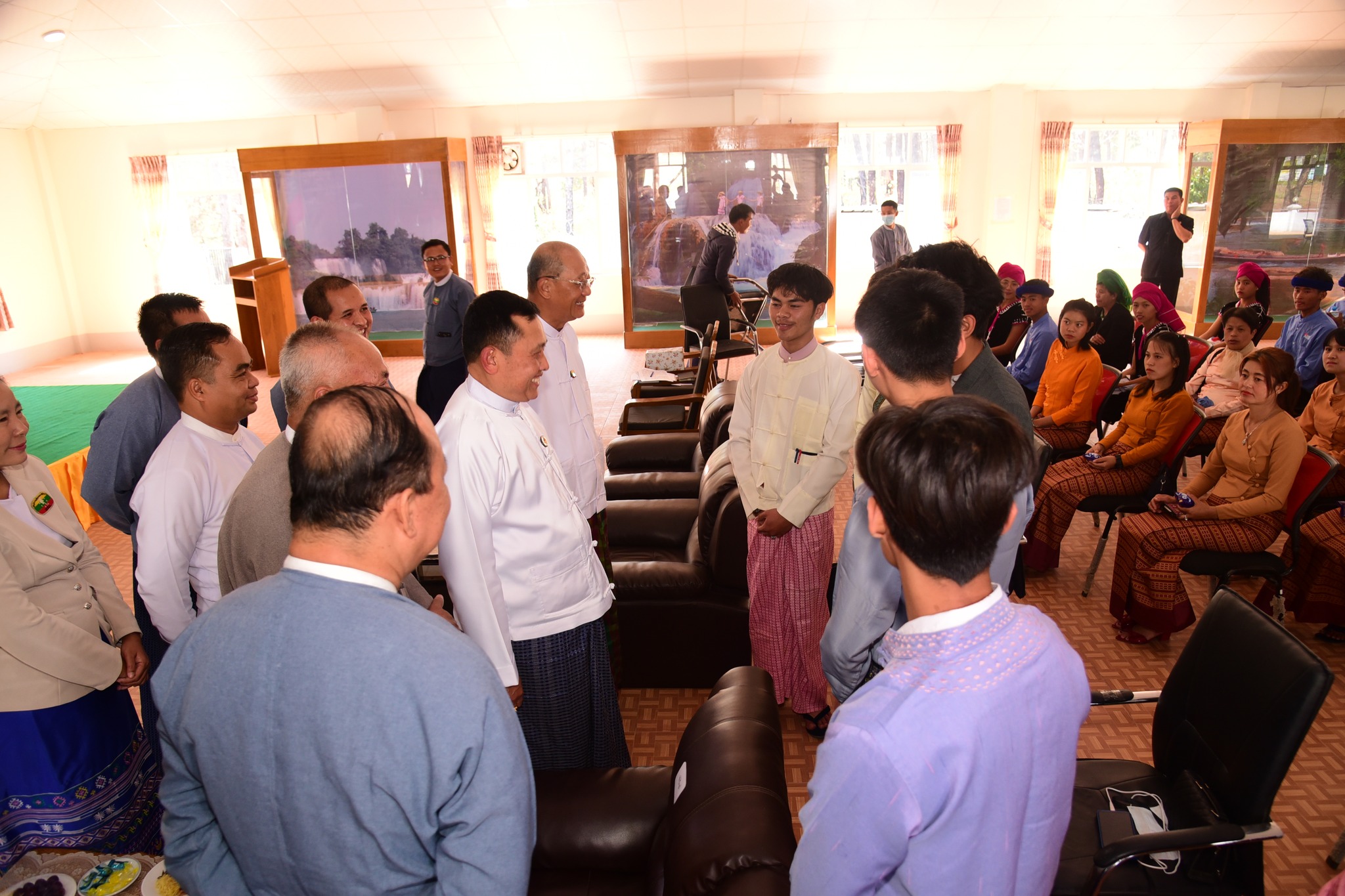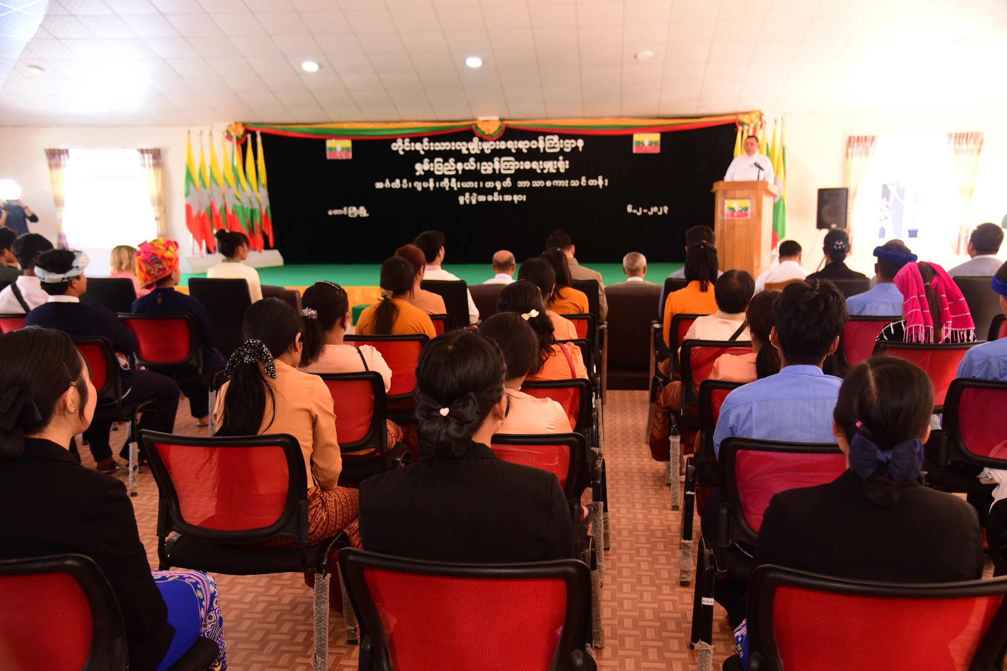 (၇၆) နှစ်မြောက် ရှမ်းပြည်နယ်နေ့ကို ကြိုဆိုဂုဏ်ပြုသောအားဖြင့် အင်္ဂလိပ်၊ ဂျပန်၊ ကိုးရီးယား၊ တရုတ် ဘာသာစကားသင်တန်းဖွင့်ပွဲအခမ်းအနားကို ဖေဖော်ဝါရီလ (၆) ရက်နေ့ နေ့လယ်ပိုင်းတွင် ရှမ်းပြည်နယ်၊ တောင်ကြီးမြို့နယ်ရှိ တိုင်းရင်းသားလူမျိုးများရေးရာဝန်ကြီးဌာန၊ ရှမ်းပြည်နယ် ညွှန်ကြားရေးမှူးရုံး၊ အစည်းအဝေးခန်းမ၌ ကျင်းပပြုလုပ်ရာ တိုင်းရင်းသားလူမျိုးများရေးရာဝန်ကြီးဌာန ပြည်ထောင်စုဝန်ကြီး Jeng Phang နော်တောင်၊ ရှမ်းပြည်နယ်အစိုးရအဖွဲ့ ဝန်ကြီးချုပ် ဦးအောင်ဇော်အေး၊ ပြည်နယ်အစိုးရအဖွဲ့ဝင် တိုင်းရင်းသားရေးရာဝန်ကြီး၊ ညွှန်ကြားရေးမှူးချုပ်၊ ဒုတိယညွှန်ကြားရေးမှူးချုပ်များ၊ ဝန်ထမ်းများ၊ သင်တန်းဆရာများနှင့် သင်တန်းသား/သူများ တက်ရောက်ကြပါသည်။