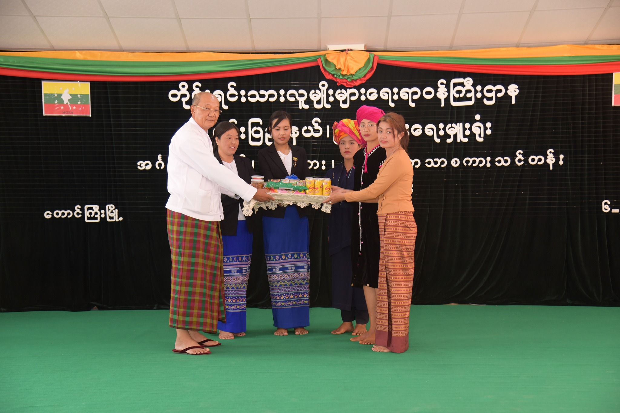 ပထမဦးစွာ တိုင်းရင်းသားလူမျိုးများရေးရာဝန်ကြီးဌာန ပြည်ထောင်စုဝန်ကြီး Jeng Phang နော်တောင်က အဖွင့်အမှာစကားပြောကြားရာတွင် နိုင်ငံတော်စီမံအုပ်ချုပ်ရေးကောင်စီ အနေဖြင့် ရှေ့လုပ်ငန်းစဉ် (၅)ရပ်၊ ဦးတည်ချက် (၁၂) ရပ်ချမှတ်ပြီး နိုင်ငံတော်၏ နိုင်ငံရေး၊ စီးပွားရေး၊ လူမှုရေးများသာမက တန်ဖိုးမြှင့်လူ့စွမ်းအားအရင်းအမြစ်ပေါ်ထွန်းလာရန်အတွက် ပညာရေးကဏ္ဍမြှင့်တင်ရေးကိုပါ အလေးထားဆောင်ရွက်လျက်ရှိရာ မိမိတို့ဝန်ကြီးဌာန အနေဖြင့် တိုင်းဒေသကြီး/ပြည်နယ်များတွင် တိုင်းရင်းသားလူမျိုးများ၏လူ့စွမ်းအား အရင်းအမြစ်တိုးတက်ရေးနှင့် လူမှုစီးပွားဘဝတိုးတက်မြင့်မားစေရန်အတွက် သက်ဆိုင်ရာ တိုင်းဒေသကြီး/ပြည်နယ်အစိုးရအဖွဲ့၏ ပံ့ပိုးထောက်ပံ့မှုရန်ပုံငွေဖြင့် သင်တန်းများ ဖွင့်လှစ် ပေးလျက်ရှိပါကြောင်း၊ ကချင်ပြည်နယ်တွင် အခြေခံစက်ချုပ်သင်တန်း၊ မန္တလေးတိုင်း ဒေသကြီးတွင် ကျောက်မျက်သင်တန်း၊ တနင်္သာရီတိုင်းဒေသကြီးတွင် တိုင်းရင်းသား ရိုးရာအစားအစာချက်ပြုတ်သင်တန်း၊ ရခိုင်ပြည်နယ်တွင် အိမ်တွင်းမှုသင်တန်း၊ အခြေခံနှင့် အဆင့်မြင့်စက်ချုပ်သင်တန်း၊ ရှမ်းပြည်နယ်တွင် ဝါးလက်မှုအခြေခံသင်တန်းနှင့် အခြေခံ စက်ချုပ်သင်တန်း၊ ရန်ကုန်တိုင်းဒေသကြီးတွင် ရေခဲမုန့်သင်တန်း၊ အဖျော်ယမကာ သင်တန်းနှင့် ကွန်ပျူတာသင်တန်းများကို တိုင်းဒေသကြီး/ပြည်နယ်အစိုးရအဖွဲ့များနှင့် ပေါင်းစပ်ညှိနှိုင်းပြီး ပူးပေါင်းဖွင့်လှစ်ပေးနိုင်ခဲ့ပါကြောင်းမြန်မာနိုင်ငံ၏ ရုံးသုံးဘာသာစကားသည် မြန်မာစာဖြစ်သည့်အတွက် ပြောဆိုသုံးနှုန်း ရေးသားရာတွင် သဒ္ဒါအထားအသိုမှန်ကန်စွာနှင့် ကျွမ်းကျင်ပိုင်နိုင်စွာ တတ်မြောက်ရန် လိုအပ်သလို အခြားကမ္ဘာ့သုံးဘာသာစကားများဖြစ်သည့် အင်္ဂလိပ်၊ ဂျပန်၊ ကိုးရီးယား၊ တရုတ်စသည့် ဘာသာစကားများကိုပါ တတ်ကျွမ်းနားလည်ပါက အလုပ်အကိုင် အခွင့်အလမ်းများပိုမိုရရှိစေမည်ဖြစ်ပြီး နိုင်ငံတကာပေါင်းသင်းဆက်ဆံရေးနှင့် ကမ္ဘာ့လူမှု နယ်ပယ်တွင် အထောက်အကူဖြစ်စေမည်ဖြစ်ပါကြောင်း၊ ပြည်နယ်အစိုးရအဖွဲ့ရန်ပုံငွေဖြင့် ယခုဖွင့်လှစ်မည့်သင်တန်းမှာ သင်တန်းသား/သူများအနေဖြင့် သင်တန်း၏ စည်းမျဉ်း၊ စည်းကမ်းများကိုလိုက်နာပြီး သင်တန်းမှပို့ချသည့် သင်ခန်းစာများကို အပတ်တကုတ် သေချာကြိုးစားလေ့လာသင်ယူကြရန်နှင့် စဉ်ဆက်မပြတ်သင်ယူမှသာ မိမိတို့၏ စွမ်းဆောင်ရည်မြင့်မားမည်ဖြစ်သည့်အတွက် စဉ်ဆက်မပြတ်လေ့လာ သင်ယူကြရန် မှာကြားလိုပါကြောင်း၊ ရှမ်းပြည်နယ်၊ တောင်ကြီးမြို့နယ်၊ အေးသာယာမြို့တွင် မဲခေါင်-လန်ချန်းပူးပေါင်းဆောင်ရွက်မှု အထူးရန်ပုံငွေအထောက်အပံ့ဖြင့် ရှမ်းပြည်နယ် တိုင်းရင်းသားရေးရာနှင့် သက်မွေးပညာသင်တ