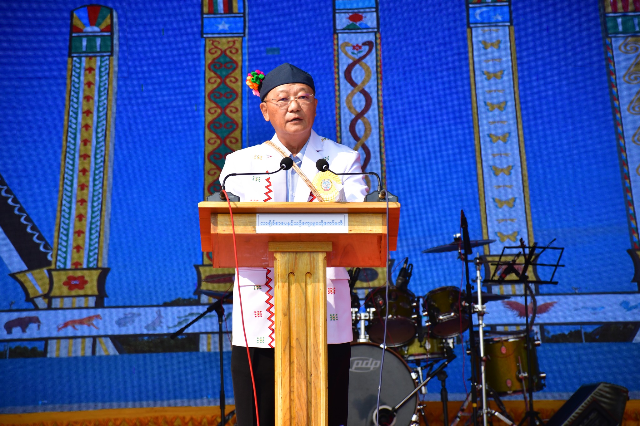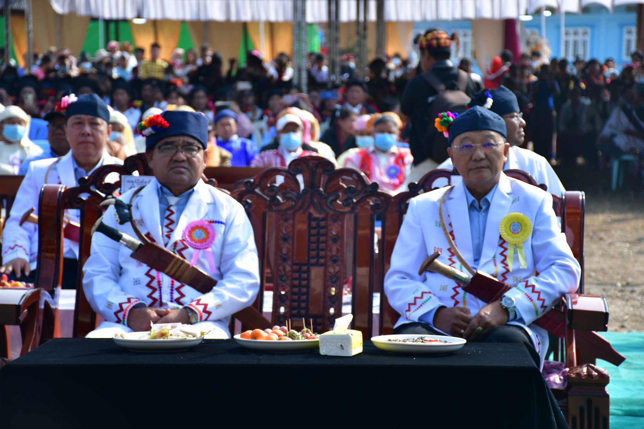နိုင်ငံတော်စီမံအုပ်ချုပ်ရေးကောင်စီအဖွဲ့ဝင် ဒေါ်ဒွဲဘူနှင့် ပြည်ထောင်စုဝန်ကြီး Jeng Phang နော်တောင် လာချိဒ် တိုင်းရင်းသားရိုးရာ မုဒ်ဦး၊ ရိုးရာအိမ်တော်၊ မနောကွင်းဖွင့်ပွဲနှင့် ကျုံးဇွမ်မနောပွဲတော် အခမ်းအနားသို့ တက်ရောက် ဝိုင်းမော် မတ် (၃)