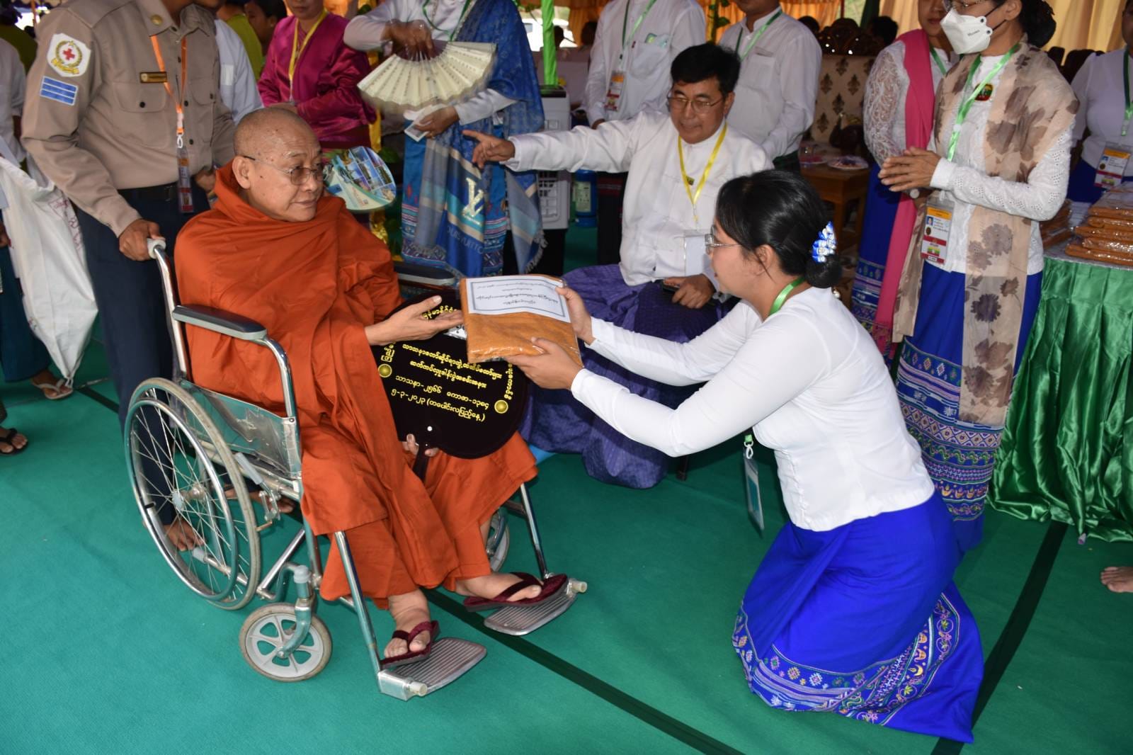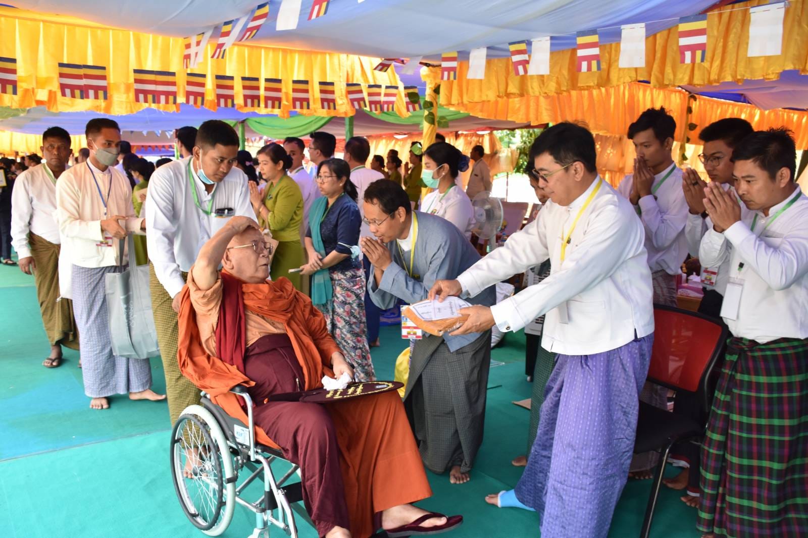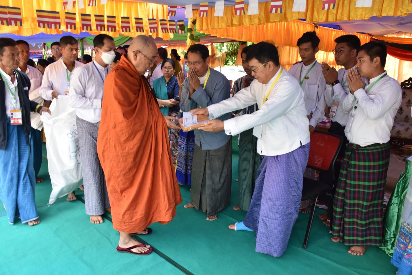 ၂၀၂၃ ခုနှစ် သာသနာတော်ဆိုင်ရာဘွဲ့တံဆိပ်တော်ဆက်ကပ်ပူဇော်ခံတော်မူကြသည့်ဆရာတော်များနှင့်သီလရှင်များအား ဆွမ်းဆန်စိမ်းလောင်းလှူပွဲတွင် တိုင်းရင်းသားလူမျိုးများရေးရာဝန်ကြီးဌာန ဒုတိယဝန်ကြီး ဦးဇော်အေးမောင် ပါဝင်ဆက်ကပ်လောင်းလှူ နေပြည်တော်၊ မတ် ၅