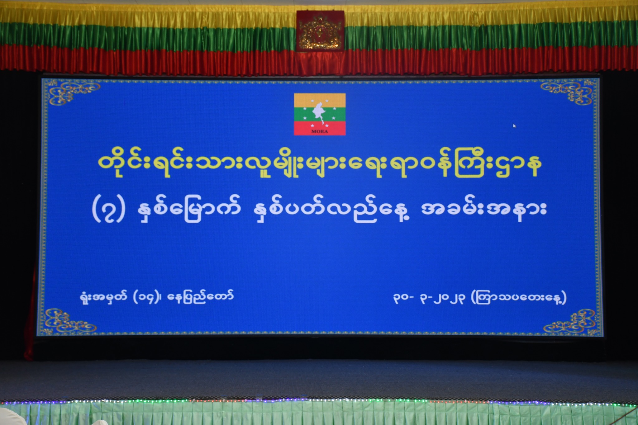 ရှေးဦးစွာ ပြည်ထောင်စုဝန်ကြီးက အဖွင့်အမှာစကားပြောကြားရာတွင် တိုင်းရင်းသားလူမျိုးများရေးရာဝန်ကြီးဌာနကို ၂၀၁၆ ခုနှစ်၊ မတ်လ (၃၀) ရက်နေ့တွင် စတင်ဖွဲ့စည်းခဲ့သည့်အတွက် ယနေ့သည် ဝန်ကြီးဌာန၏ သက်တမ်း (၇)နှစ် ပြည့်မြောက်သည့်နေ့ဖြစ်ပါကြောင်း၊ တိုင်းရင်းသားလူမျိုးများ၏ အခွင့်အရေးကာကွယ်စောင့်ရှောက်သည့် ဥပဒေအရ တိုင်းရင်းသား ရေးရာကိစ္စရပ်များကို ဆောင်ရွက်နိုင်စေရန် မိမိတို့ တိုင်းရင်းသားလူမျိုးများရေးရာဝန်ကြီးဌာနကို ဖွဲ့စည်းခဲ့ခြင်းဖြစ်ပါကြောင်း၊ တိုင်းရင်းသားလူမျိုးများရေးရာဝန်ကြီးဌာနအနေဖြင့် (၇)နှစ်တာကာလအတွင်း ဆောင်ရွက်ခဲ့သည့်လုပ်ငန်းများကို အနည်းငယ် ပြောကြားလိုပါကြောင်း၊ တိုင်းရင်းသားစာပေသင်ကြားရေးနှင့်စပ်လျဉ်း၍ ၂၀၁၇-၂၀၁၈ ပညာသင်နှစ်မှ ယနေ့အထိ တိုင်းရင်းသားဘာသာစာပေသင်ကြားရေး အထောက်အကူပြု ဆရာ၊ ဆရာမများ (Teaching Assistant -TA) ၁၄၈၉၃ ဦးနှင့် တိုင်းရင်းသား စာပေသင် ဆရာ၊ ဆရာမ (Language Teacher-LT) ၂၀၀ ဦး၊ စုစုပေါင်း ၁၅၀၉၃ ဦးတို့အား ပညာရေးဝန်ကြီးဌာနနှင့် ပူးပေါင်း၍ ခန့်ထားပေးနိုင်ခဲ့သည့်အပြင် ဘာသာစကား (၇၂) မျိုးအထိ အောင်မြင်စွာ သင်ကြားပေးနိုင်ခဲ့ပြီး ဖြစ်ပါကြောင်း၊ ကျန်းမာရေးဆိုင်ရာ အသိပညာပေးမှုပိုစတာများ၊ ကျန်းမာရေးဆိုင်ရာစံပြုအချက်အလက်များကို တိုင်းရင်းသားဘာသာဖြင့် ဘာသာပြန်ဆိုခြင်း၊ ကိုဗစ်- ၁၉ နှင့်ပတ်သက်၍ ကျန်းမာရေးဝန်ကြီးဌာနမှ ထုတ်ပြန်ထားသည့် အသိပညာပေးအချက်အလက်များကို တိုင်းရင်းသားဘာသာဖြင့် ဘာသာပြန်ဆိုခြင်း၊ တိုင်းရင်းသားလူမျိုးများ၏ အခွင့်အရေးကာကွယ်စောင့်ရှောက်သည့်ဥပဒေ၊ နည်းဥပဒေများကို တိုင်းရင်းသားလူမျိုးများ သိရှိနားလည်စေရန် တိုင်းရင်းသားဘာသာများဖြင့် ဘာသာပြန်ဆိုခြင်းများ ဆောင်ရွက်ခဲ့ကြသည်ကိုတွေ့ရှိရပါကြောင်း၊ ပျောက်ကွယ်လုနီးပါး ဖြစ်နေသော တိုင်းရင်းသားများ၏ ရိုးရာဓလေ့ထုံးစံ၊ ယဉ်ကျေးမှု၊ လူနေမှုဘဝပုံစံ၊ ကိုးကွယ် ယုံကြည်မှုနှင့် ပွဲတော်များကို Documentary ရုပ်/ သံ မှတ်တမ်းတင်ခြင်း၊ တိုင်းရင်းသားရိုးရာ အစားအစာဟင်းလျာ(၈)မျိုး ချက်ပြုတ်နည်းအစီအစဉ်များ ရိုက်ကူးခြင်း၊ တိုင်းရင်းသားများ၏ စကား၊ စာပေ တိမ်ကောပပျောက်မှုမရှိစေရေးနှင့် အစဉ်တည်တံ့ခိုင်မြဲစေရေးအတွက် တိုင်းရင်းသားများ ရိုးရာယဉ်ကျေးမှု၊ ပုံပြ/ ပုံပြင် စာအုပ်များ၊ စကားထာ စကားပုံ၊ စကားဝှက်၊ စကားလိမ်၊ ဆိုရိုးစာအုပ်များ၊ တိုင်းရင်းသား လူမျိုးများ၏ ဆောင်ရန်၊ ရှောင်ရန်ရိုးရာဓလေ့များနှင့် အတိတ် နိမိတ်စာအုပ်များထုတ်ဝေခြင်း စသည်များကို ဆောင်ရွက်နိုင်ခဲ့ကြပါကြောင်း၊ တိုင်းရင်းသား စည်းလုံးညီညွတ်ရေး၊ ဖွံ့ဖြိုးတိုးတက်ရေးနှင့် ငြိမ်းချမ်းရေးဆိုင်ရာ အသိပညာများကို တိုင်းရင်