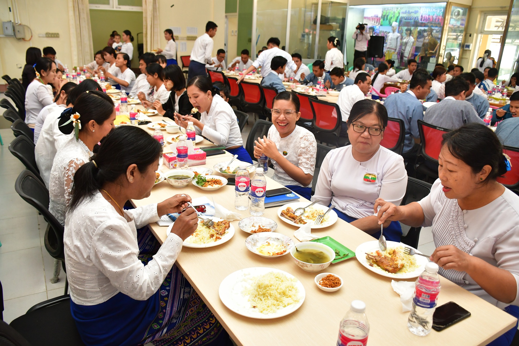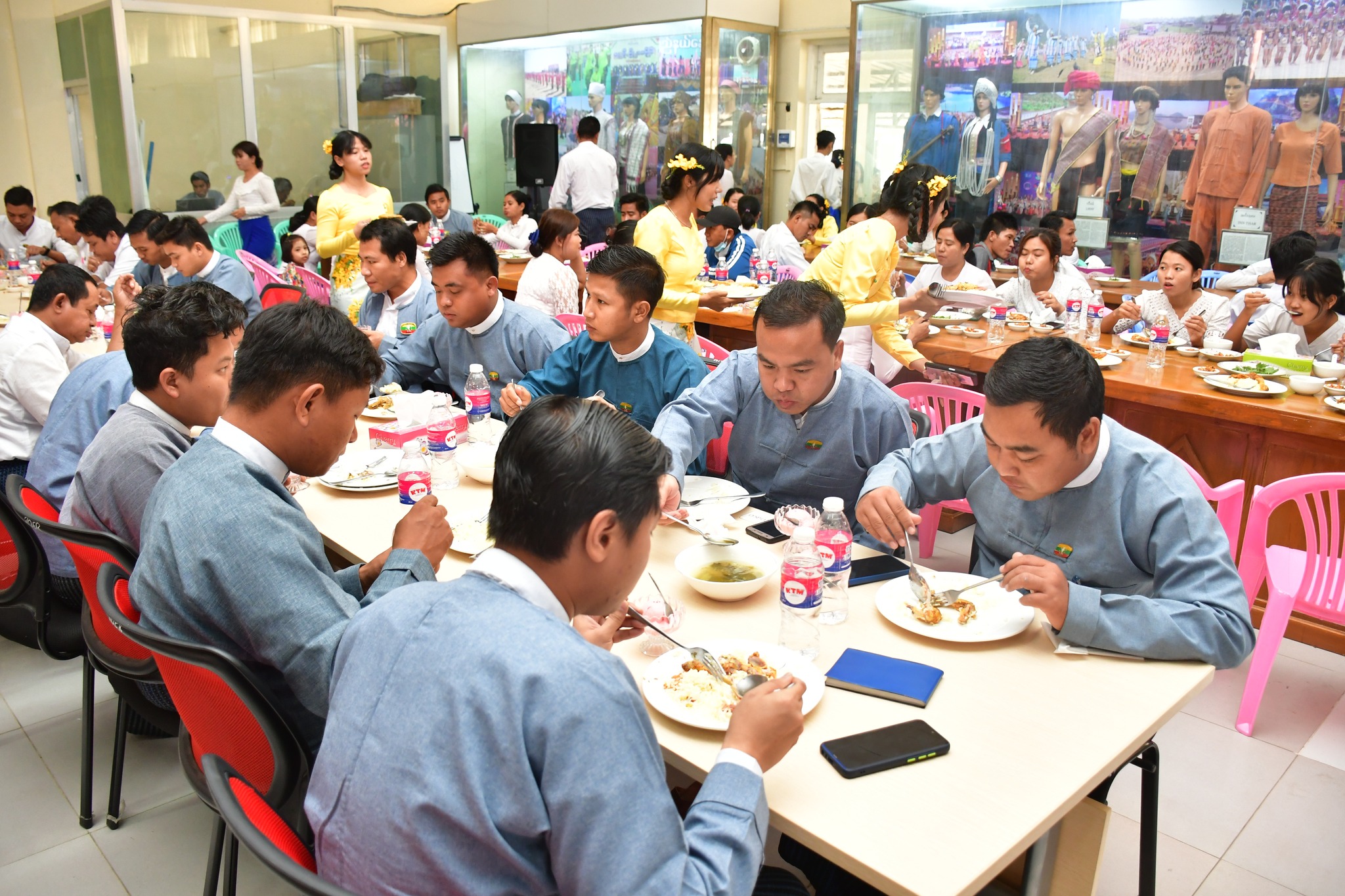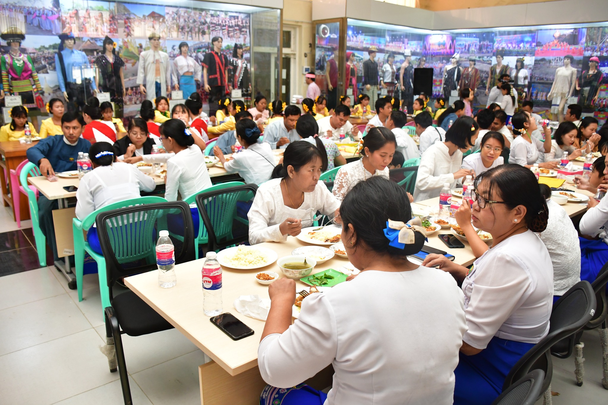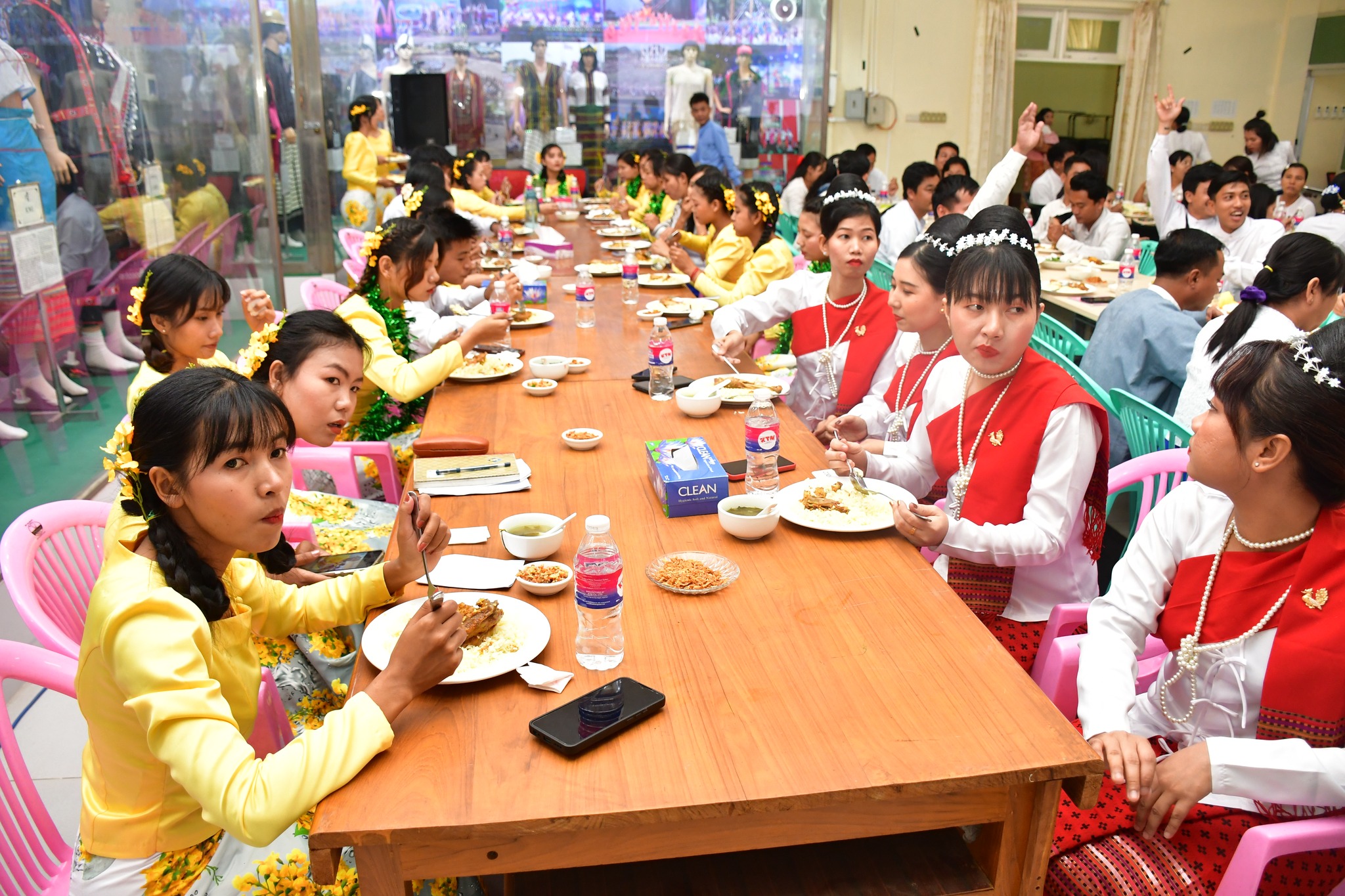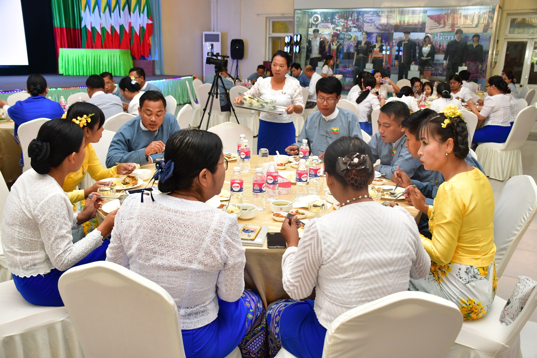 ဆက်လက်၍ ဝန်ကြီးဌာနရှိ ဝန်ထမ်းများက တိုင်းရင်းသားရိုးရာအဆို၊ အကများ၊ ခါသင်္ကြန်ယိမ်းအကများဖြင့် ဧည့်ခံဖျော်ဖြေကြပြီး အခမ်းအနားသို့တက်ရောက်လာကြသည့် ပြည်ထောင်စုဝန်ကြီး၊ ဒုတိယဝန်ကြီး၊ အမြဲတမ်းအတွင်းဝန်၊ ညွှန်ကြားရေးမှူးချုပ်များ၊ ဒုတိယညွှန်ကြားရေးမှူးချုပ်များနှင့် အရာထမ်း အမှုထမ်းများအာလုံး နေ့လယ်စာကို လက်ရည် တပြင်တည်း အတူတကွသုံးဆောင်ခဲ့ကြကြောင်း သိရှိရပါသည်။