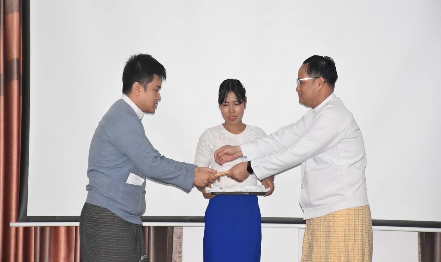 ထို့နောက် တိုင်းရင်းသားရေးရာဝန်ကြီး ဦးစောဂျက်ကော့ထူးက သင်တန်းနည်းပြ ဦးထွန်းတိမ်လွှာစိုးအား နည်းပြဂုဏ်ပြုငွေကို လည်းကောင်း၊ သင်တန်းသူ/ သင်တန်းသားများ ကိုယ်စား သင်တန်းသူတစ်ဦးအား သင်တန်းဆင်း လက်မှတ်များအား လည်းကောင်း ပေးအပ်ခဲ့ပါသည်။