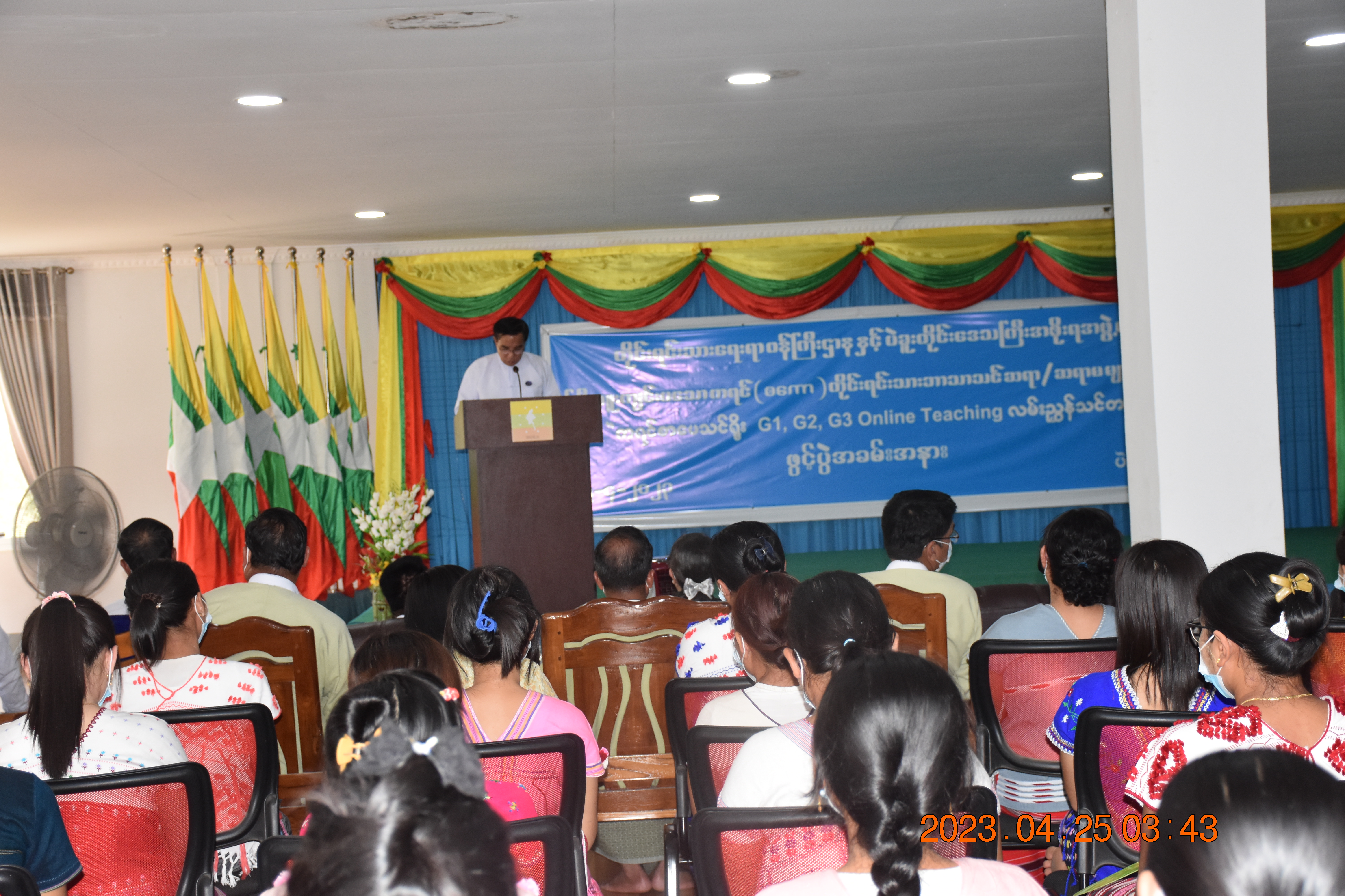တိုင်းရင်းသားလူမျိုးများရေးရာဝန်ကြီးဌာနနှင့် ပဲခူးတိုင်းဒေသကြီးအစိုးရအဖွဲ့တို့မှ ကြီးမှူးကျင်းပသည့် ကရင်(စကော)တိုင်းရင်းသားဘာသာ စာပေသင် TA ဆရာ/ဆရာမများ အတွက် ကရင်စာပေသင်ရိုး G1,G2,G3 Online Teaching လမ်းညွှန်သင်တန်း (၂၀၂၃-၂၀၂၄) ဖွင့်ပွဲအခမ်းအနားကို ကျင်းပ ပြုလုပ် ပဲခူး၊ ၂၅-၄-၂-၂၃